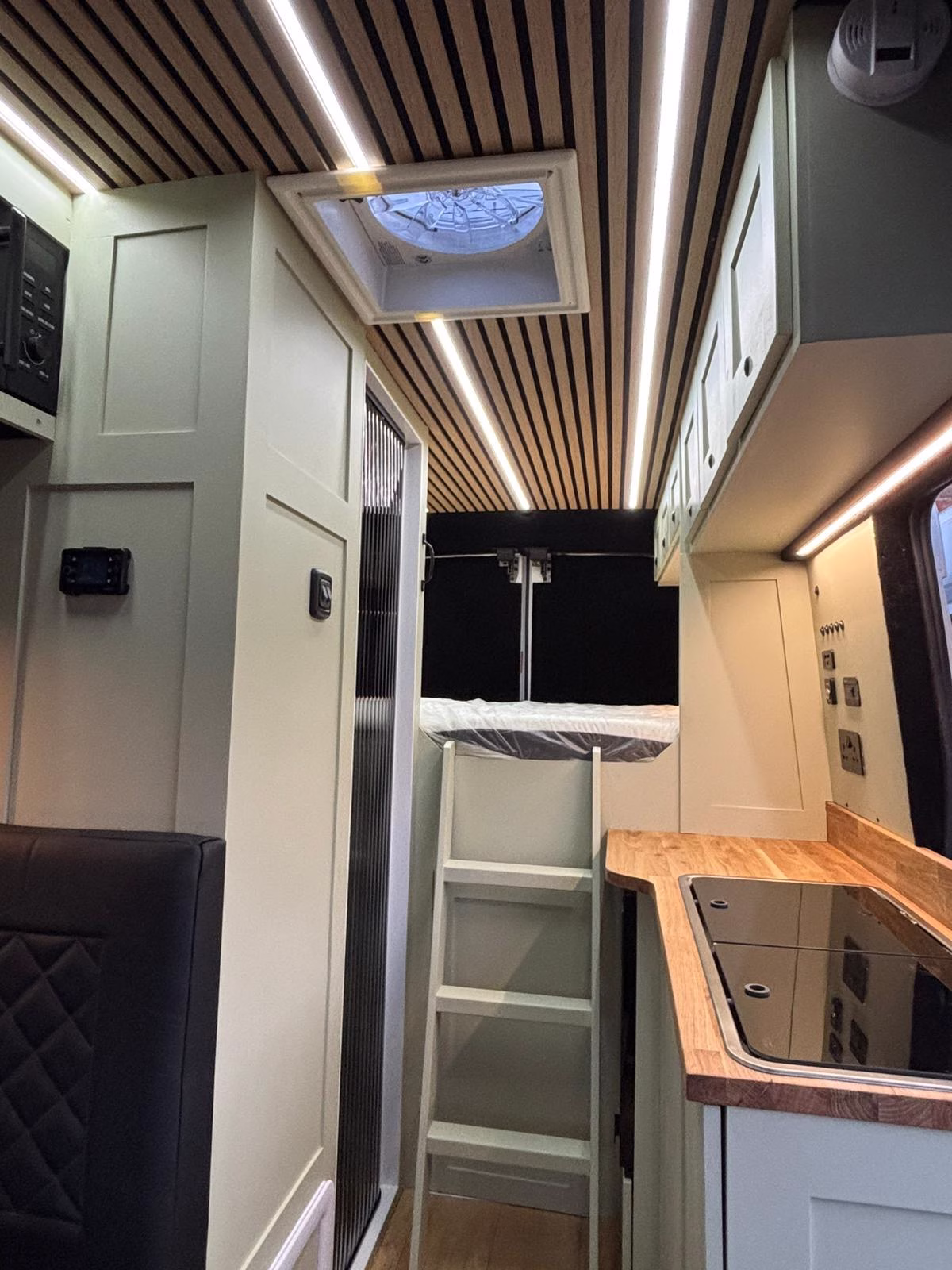 This professionally crafted campervan is built for full-time van life or weekend adventures. The high-top design offers excellent headroom and space, while the custom conversion includes: