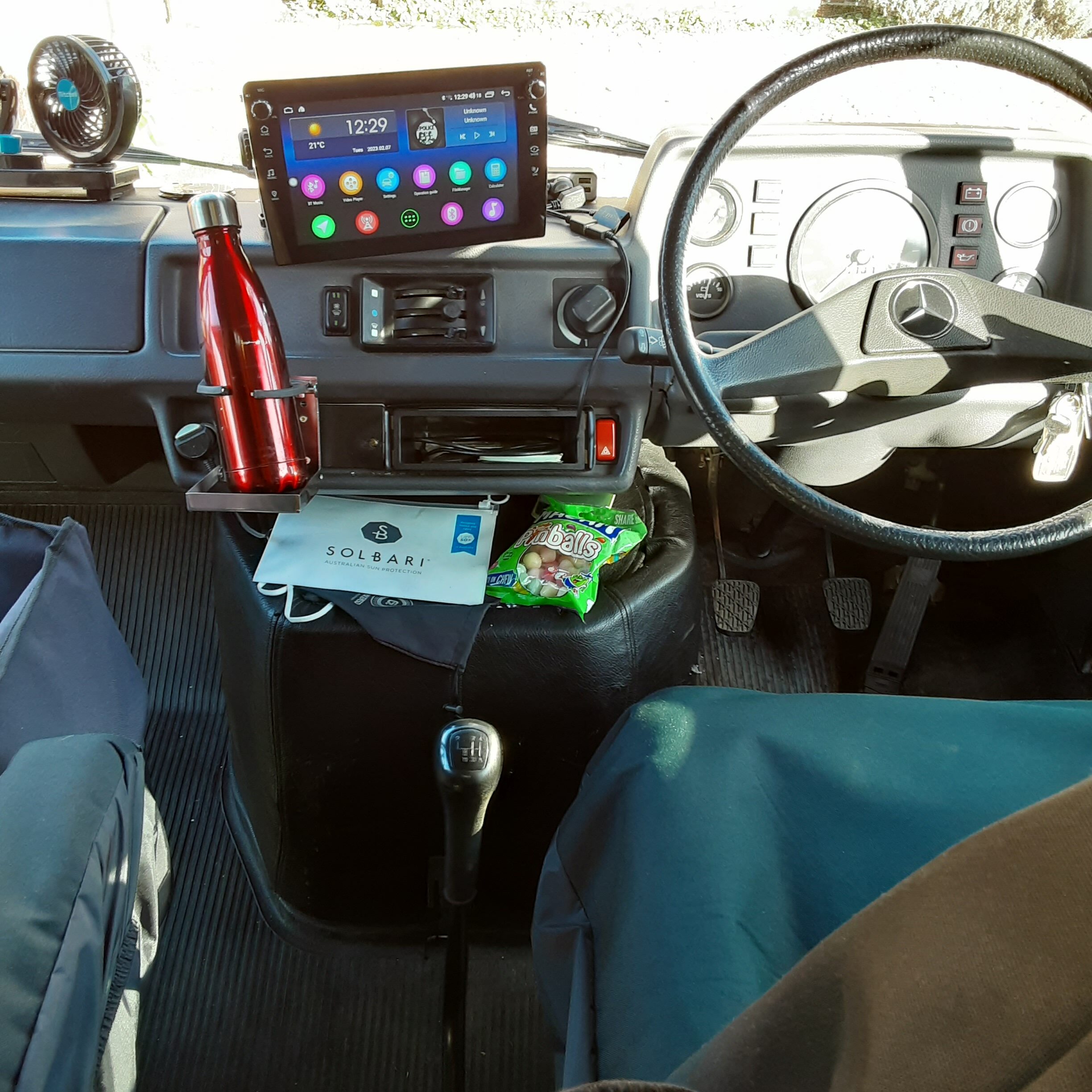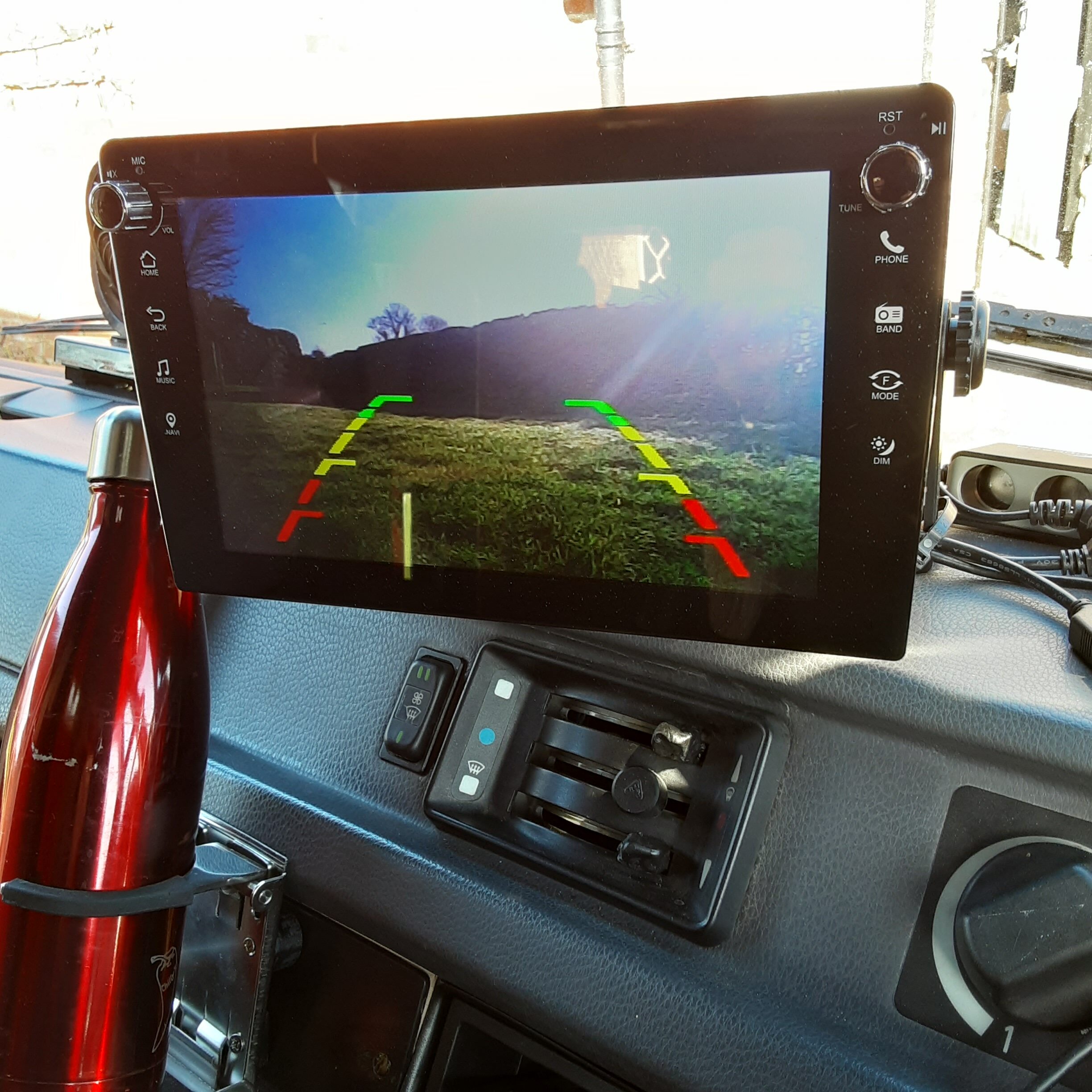 Joying Android head in cab for navigation, phone, entertainment, reversing camera.
