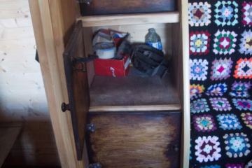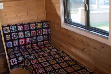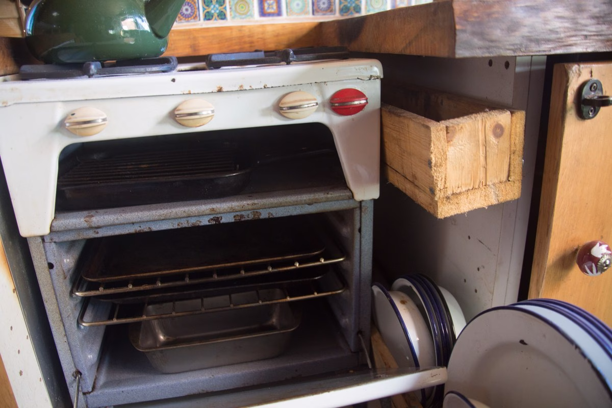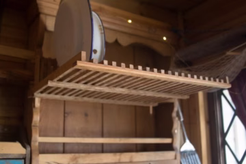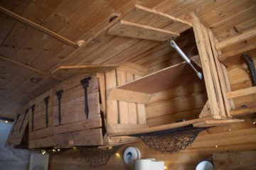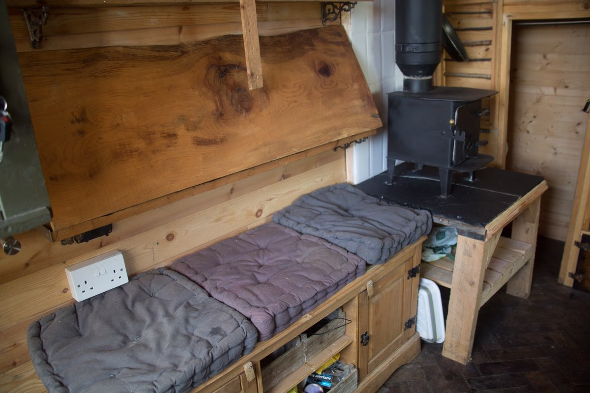 There is also a compost toilet which has a separator for solid/ liquids which means it’s much easier to get rid of your toilet waste and a lot less smelly. One of the windows is situated right by the toilet which helps with ventilation.