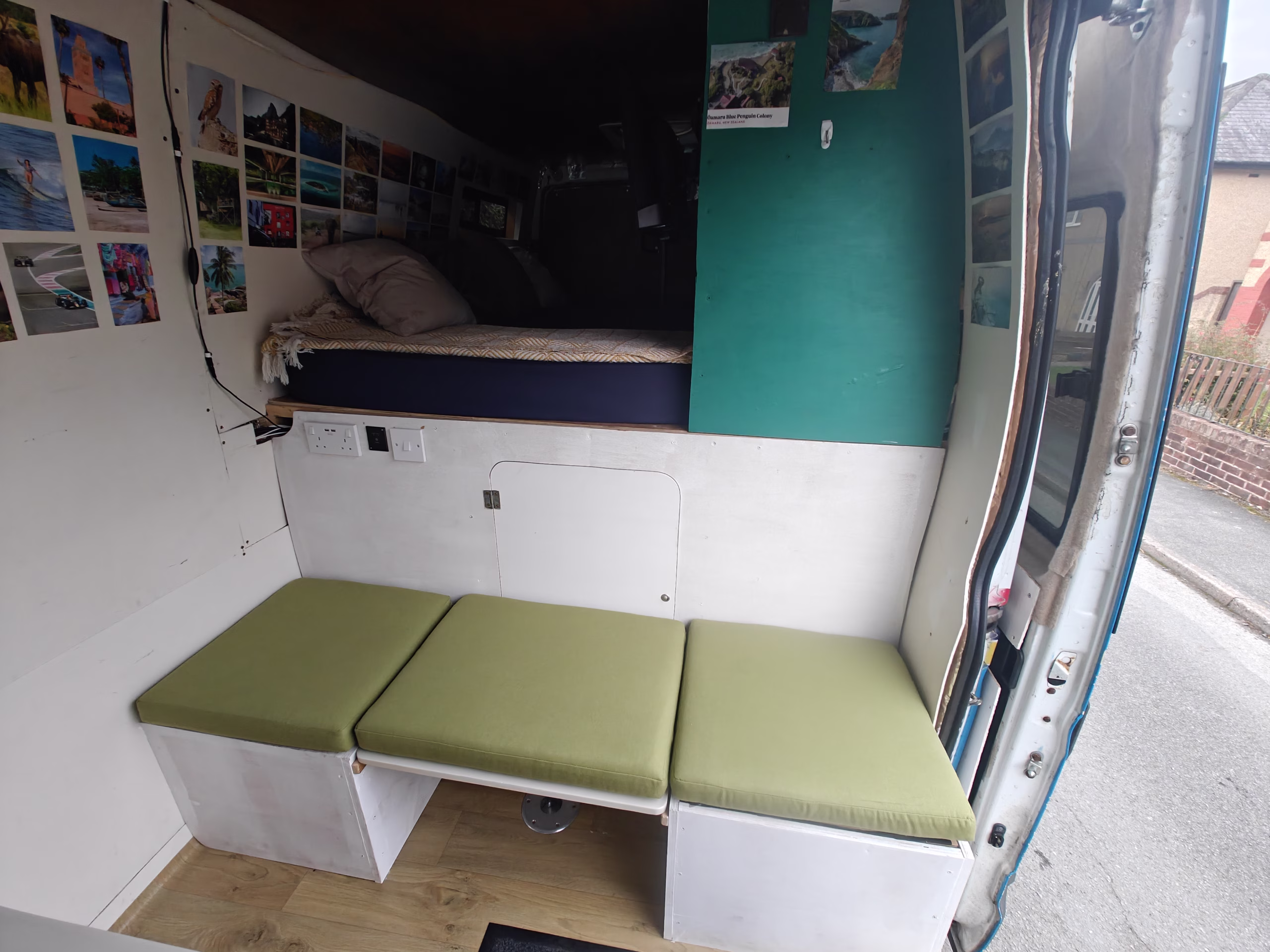 Great van has been super reliable and will be sad to see it go. Has had sink and gas cook top put in a year ago as well as custom made couch upholstery. Great for parking up anywhere off grid and doing a road trip through Europe.