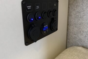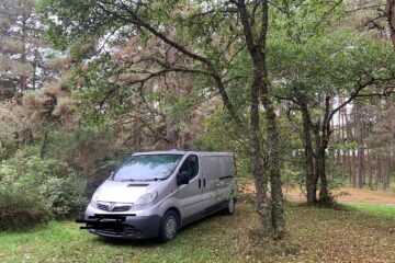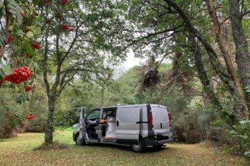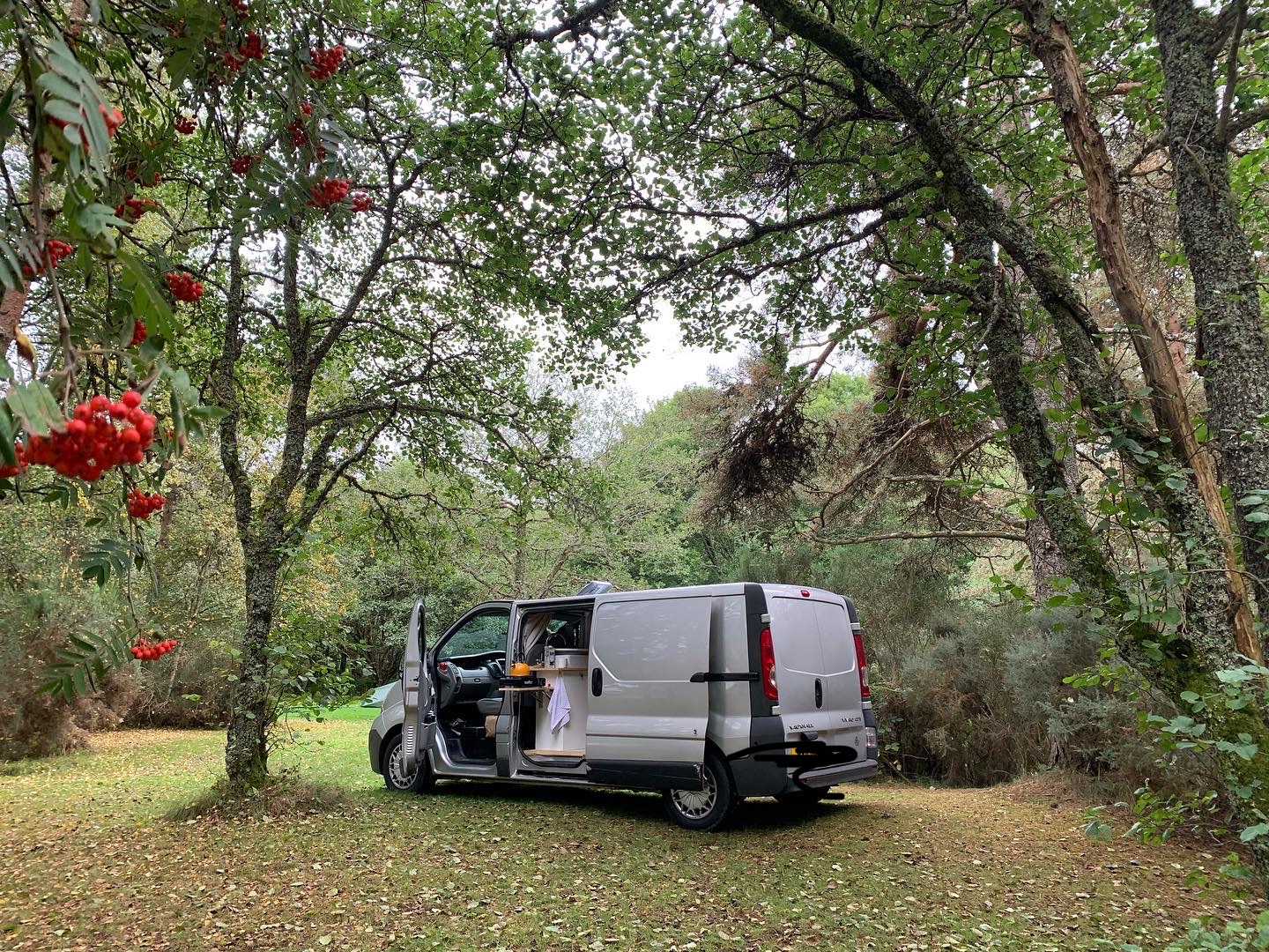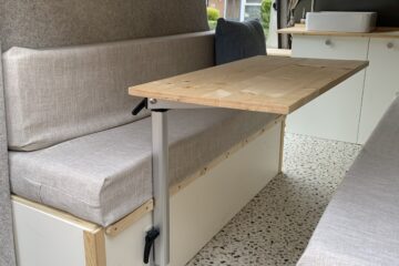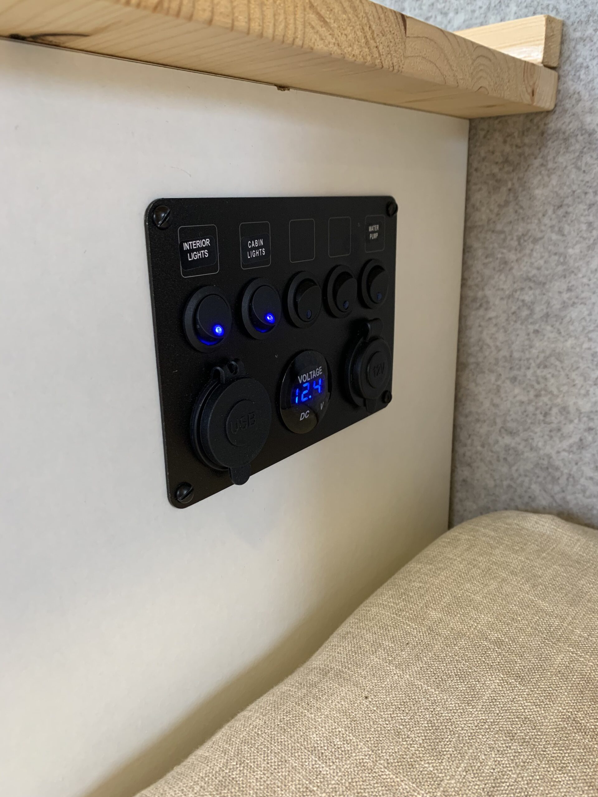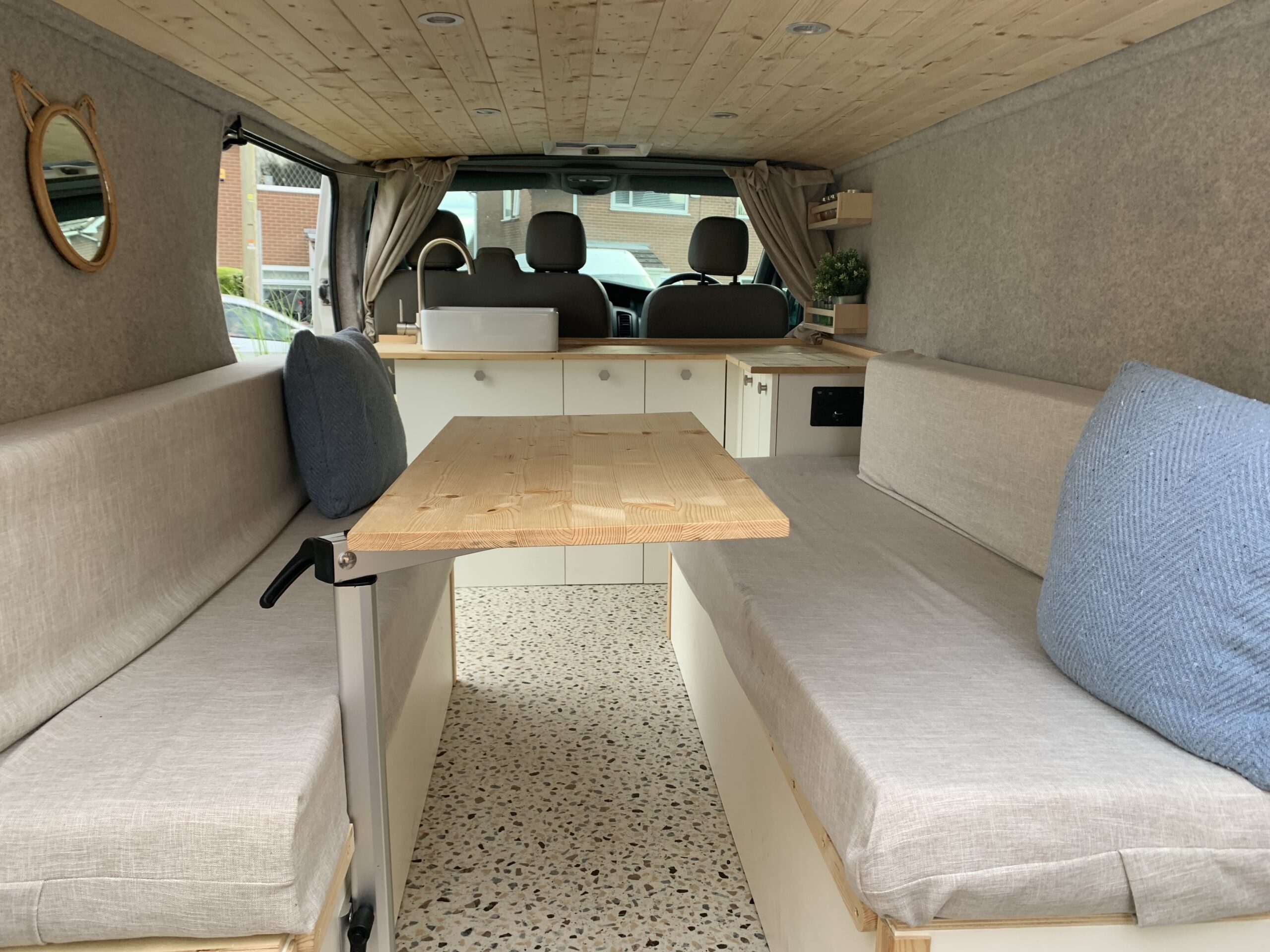 The van has a split charge relay and brand new leisure battery so is self charging whist you drive. There are 2 usb charging points, 4 spot lights and the water pump that run from that and 2 available switches should you want to wire in anything else. There is also a swivel table which can be removed to make up the bed. We have loved using this van. It has all you need for a couple of days off grid and is super comfortable and as we haven’t added windows it doesn’t look like a camper so you can stealth camp with no one knowing you are in there.