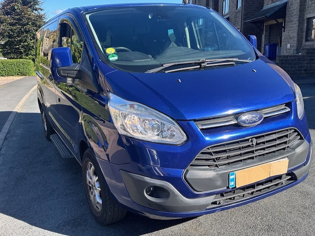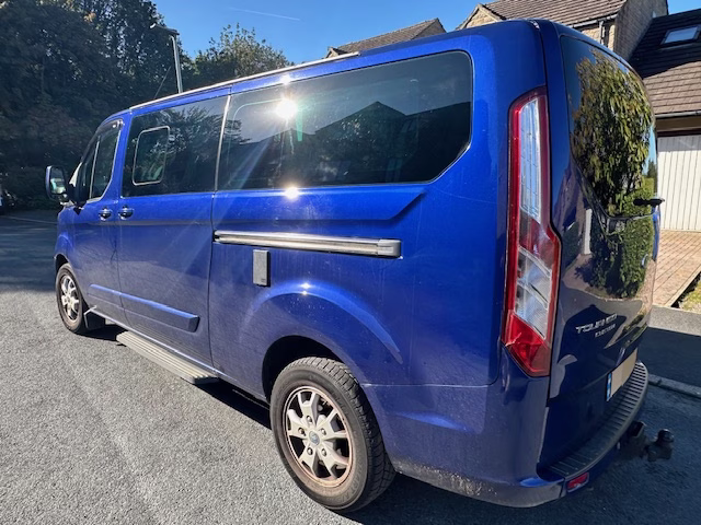 A 2014 Ford Tourneo Custom (MPV version of Transit Custom van) 300 Titanium in Deep Impact Blue colour with twin sliding doors with opening windows, Mot’d till 30th Jan 2026 and some service history. Mileage will increase as the vehicle is bring used daily for commuting.