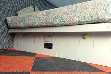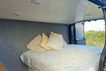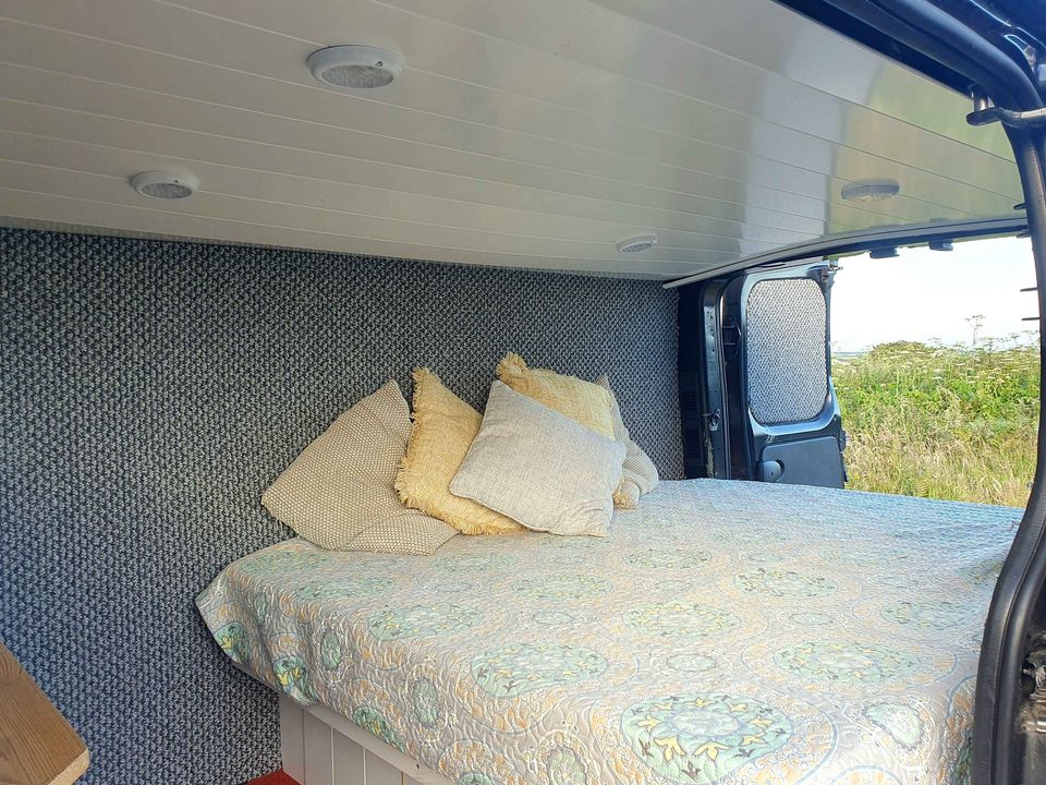 Camper conversion done by last owners – fully insulated and carpeted inside & full size very comfy double bed/daybed. Spacious bed (152cm width x 187cm length) with ultra comfortable memory foam mattress!