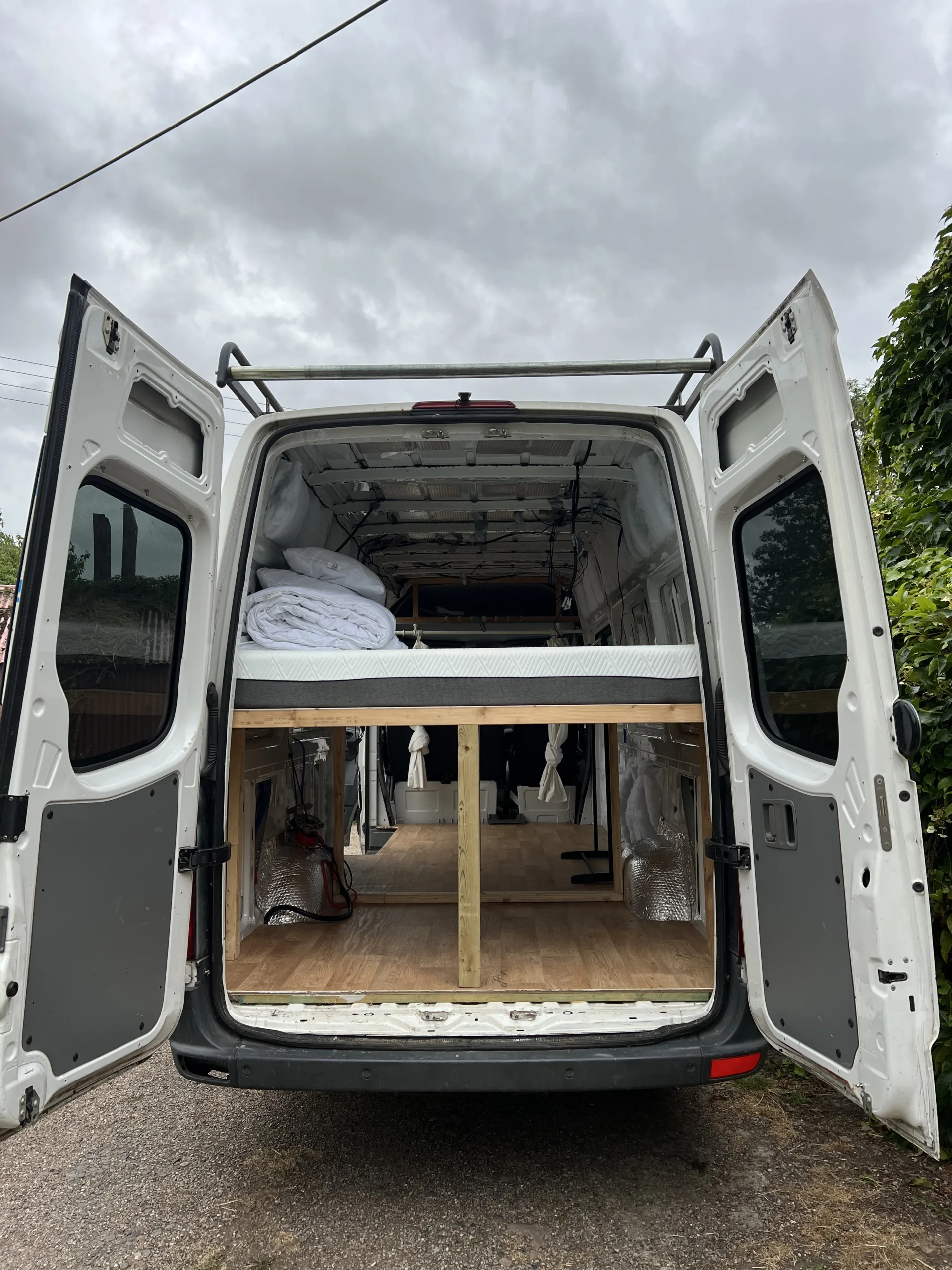 This is a 2015 VW Crafter CR35 Bluemotion TDI (LWB) that’s been partially converted with care and professionalism. A rock-solid, well-maintained van with a head start on the camper conversion – perfect for someone who wants some of the structure and prep done, with freedom to finish it your own way.