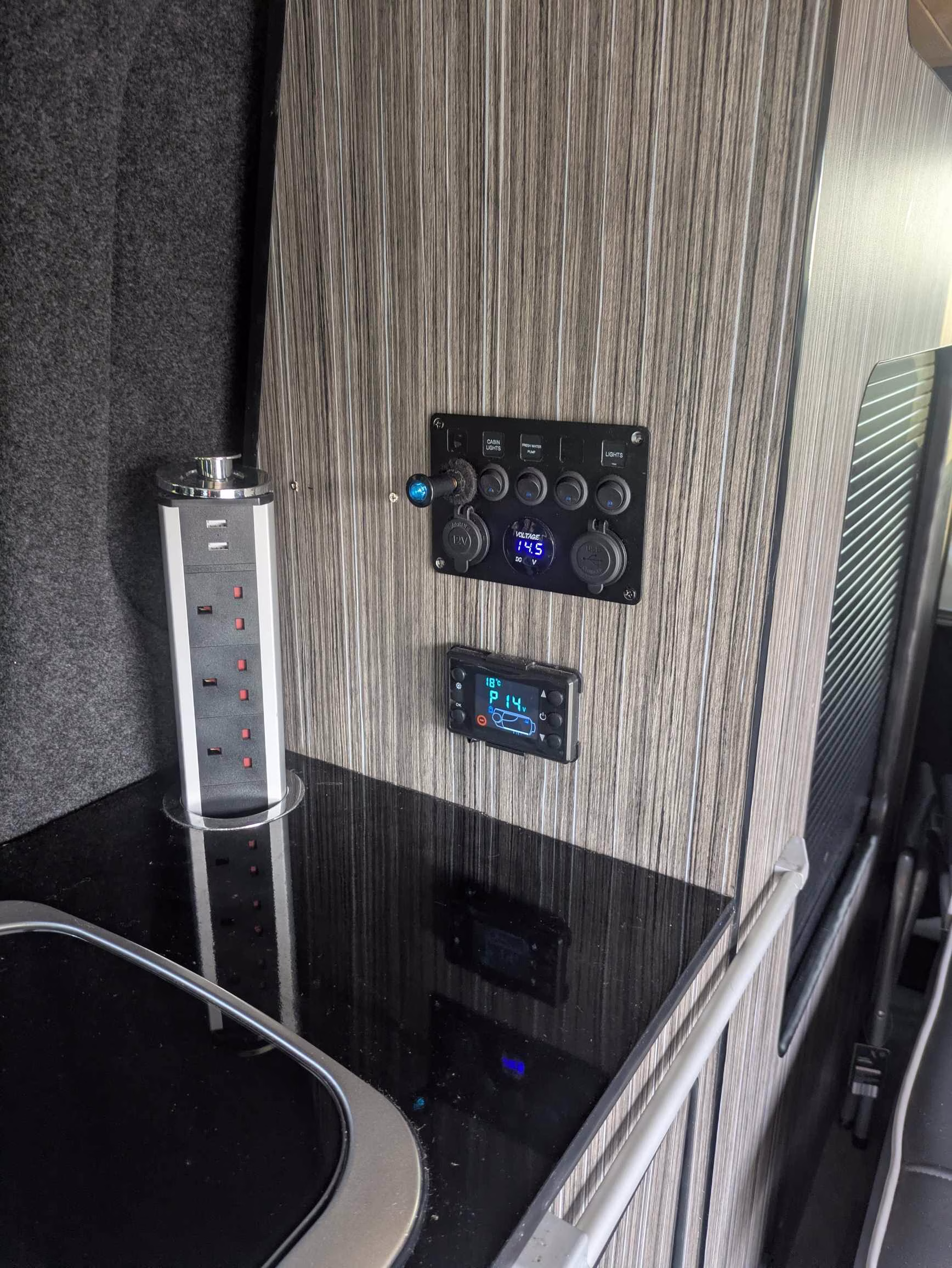 Electrics: Victron smart solar MPPT 100|20, 2 x 175 watt victron energy mono panels (350 watts total), Sterling power DC-DC, Halfords advanced Mains Charger, 220ah Agm leisure batteries, diesel heater, alpicool 12 volt fridge & freezer compartment. Multiple USB ports and 12 volt socket, also has hook up which supplies Pop-up USB/Power hub with 240V internal sockets.