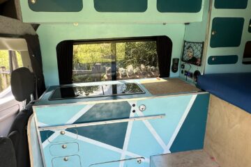 Cookware and utensils come with the van.