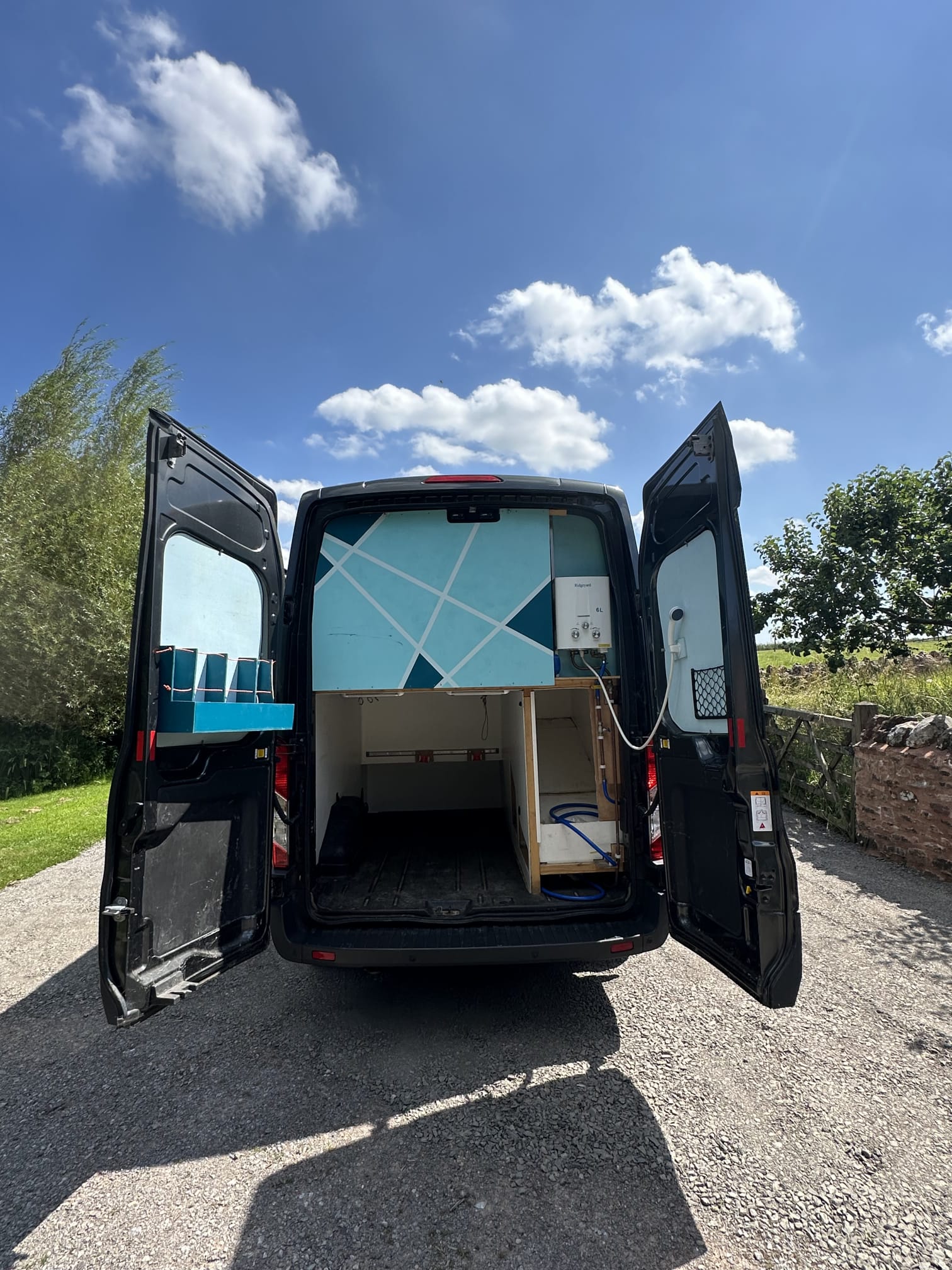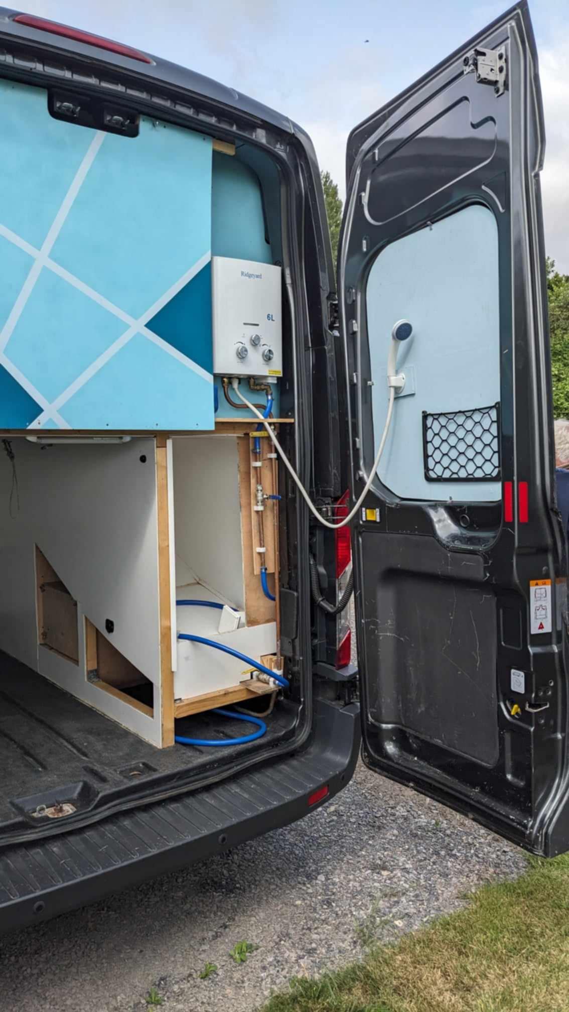 Cold bike wash at back of van.