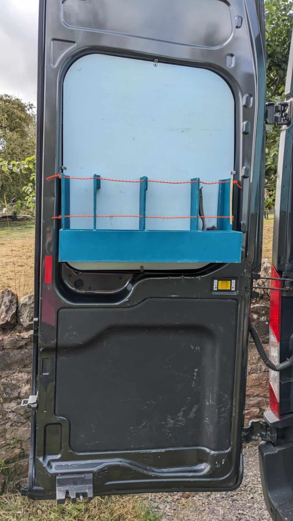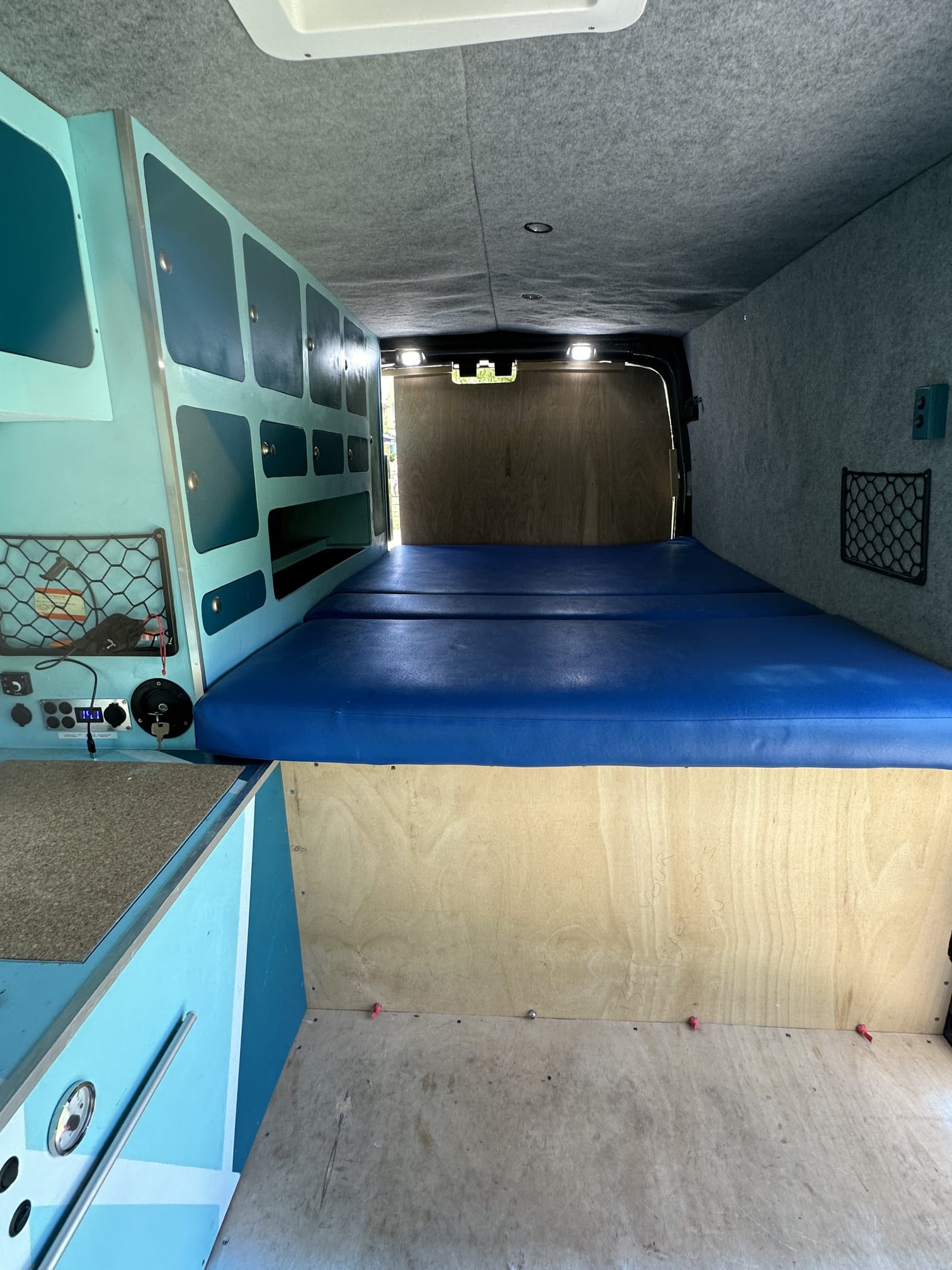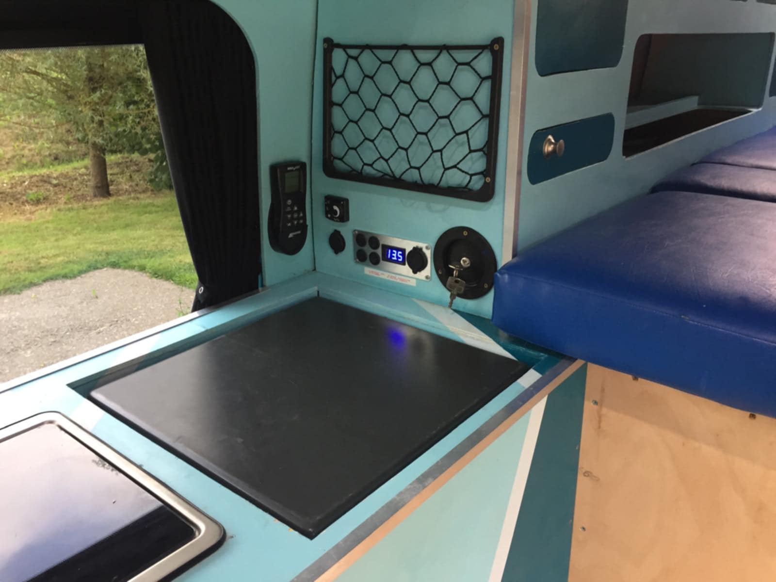 The mains charging socket was going to be installed in the rear drivers side door. Cables and parts are in the van, just not installed.