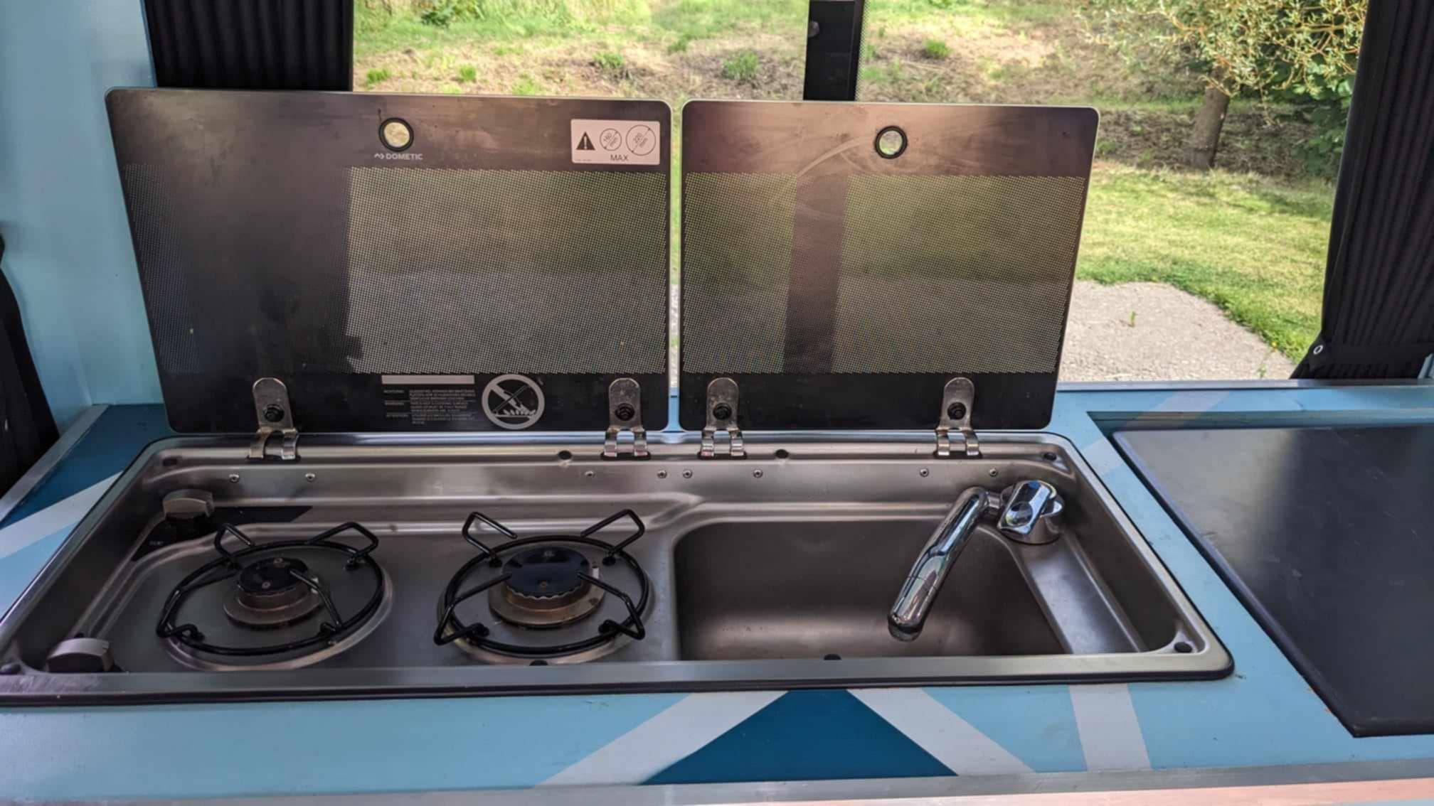 2 ring gas hob & sink.