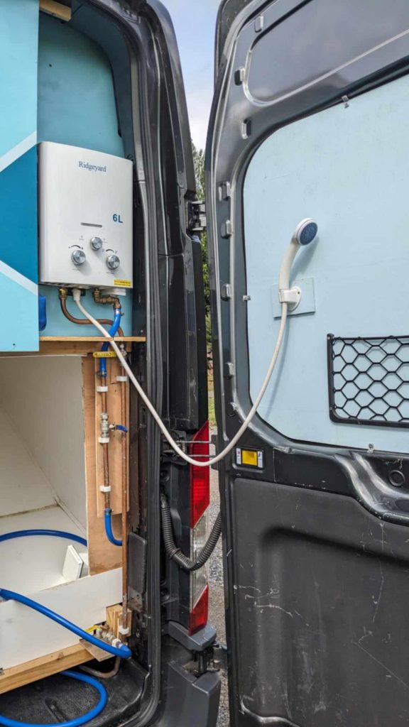 Hot shower at back of van.