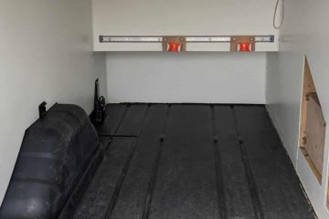 Insulated floor, bed, bench, walls and roof. Insulated window covers are in the van.