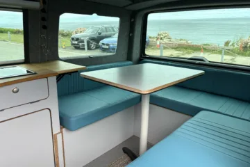Converted by Base Campers in Cornwall yo U shaped seating arrangement. Including 2nd battery, Skyline roof, full kitchen with fridge hob and basin. Cassette toilet on sliding mechanism.