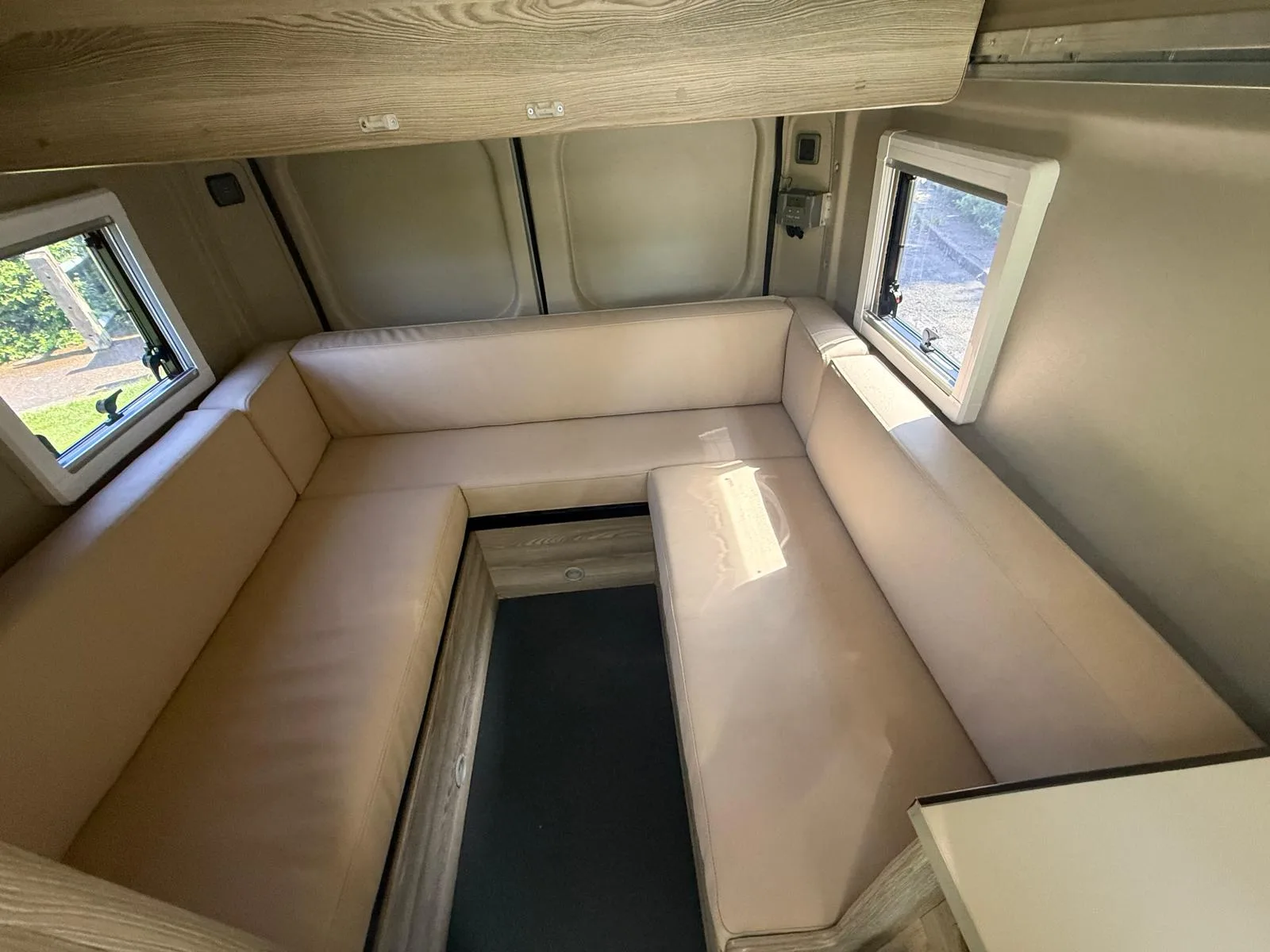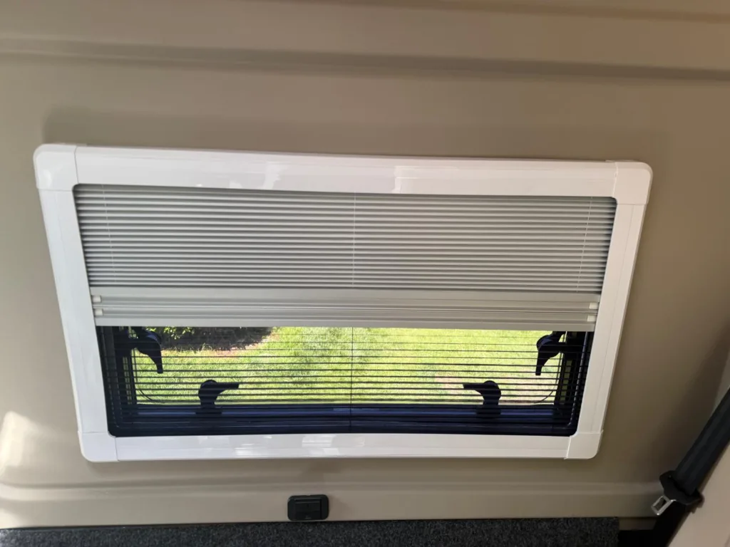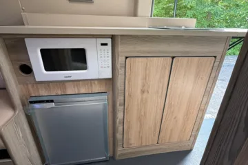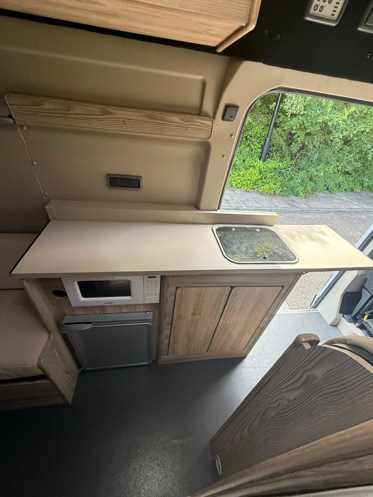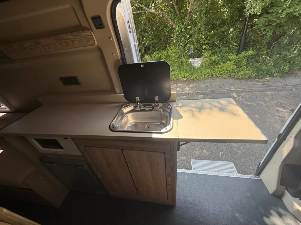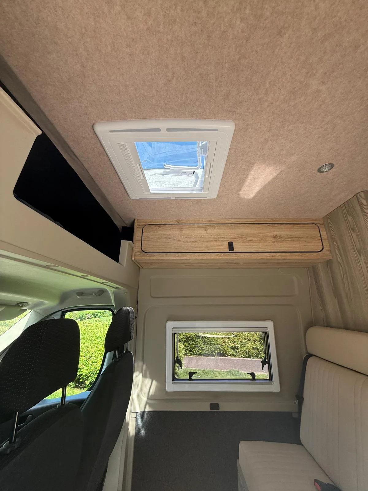 Reverse camera to the rear U shape seating to rear which converts to double bed it has the tinted caravan type windows which all open out over which are double glazed and have child locks on much better than the glass windows! It has a truma d4 boiler which works on diesel on its own or a mix of diesel and 230v or 230v on its own when on a site ,Sargent 12v electrics with charger for when on hook up which will charge leisure batteries! It has 2 agm leisure batteryβs wired in parallel and a 200w solar panel with mttp charge controller! It has a max air fan in the middle of van and a 400x400sky light to front of vehicle! It has a toilet pod with a cassette toilet and sink in and extendable tap if someone wants a shower or use as a wash dry room and rinse things off! Roldoure sliding cassette door , No gas but built in microwave and just use electric appliances when on site or has space if someone wants to add gas! Or an inverter so they donβt need hook up! It has the drip rail light above sliding door which prevents water dripping in to van and is a bright light on the outside, has 12v and 230v sockets it has on board waste and fresh water tanks fitted to underneath of vehicle which makes life more easy instead of jumping extra water barrels about all material is faux leather cram used which is incredibly durable and has the med density foam which is perfect , the sides of u shape lift up also and have storage underneath them and to the front of vehicle above cab there is plenty storage up there to with it being the high top ! It has built in blinds internally and I have the exterior front cab blind as it helps massively and prevents condensation any more info get in touch please ask incase I have missed something!