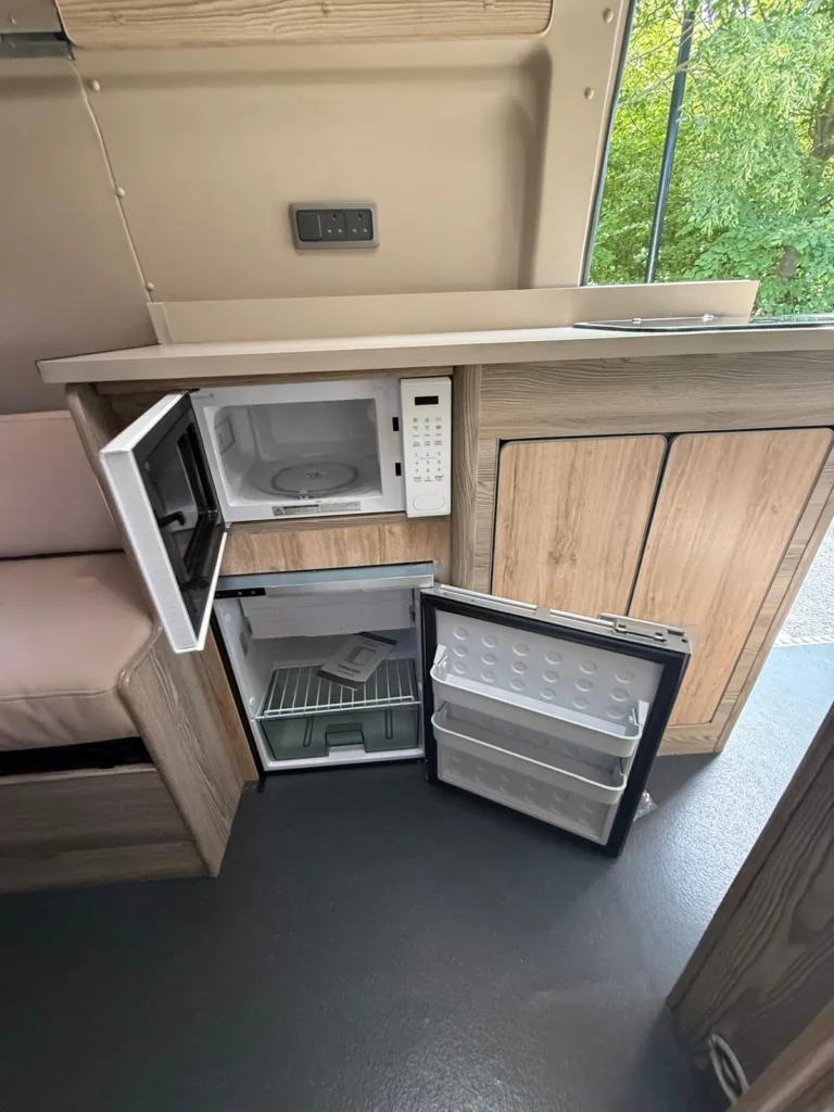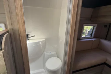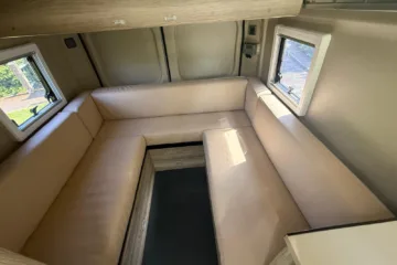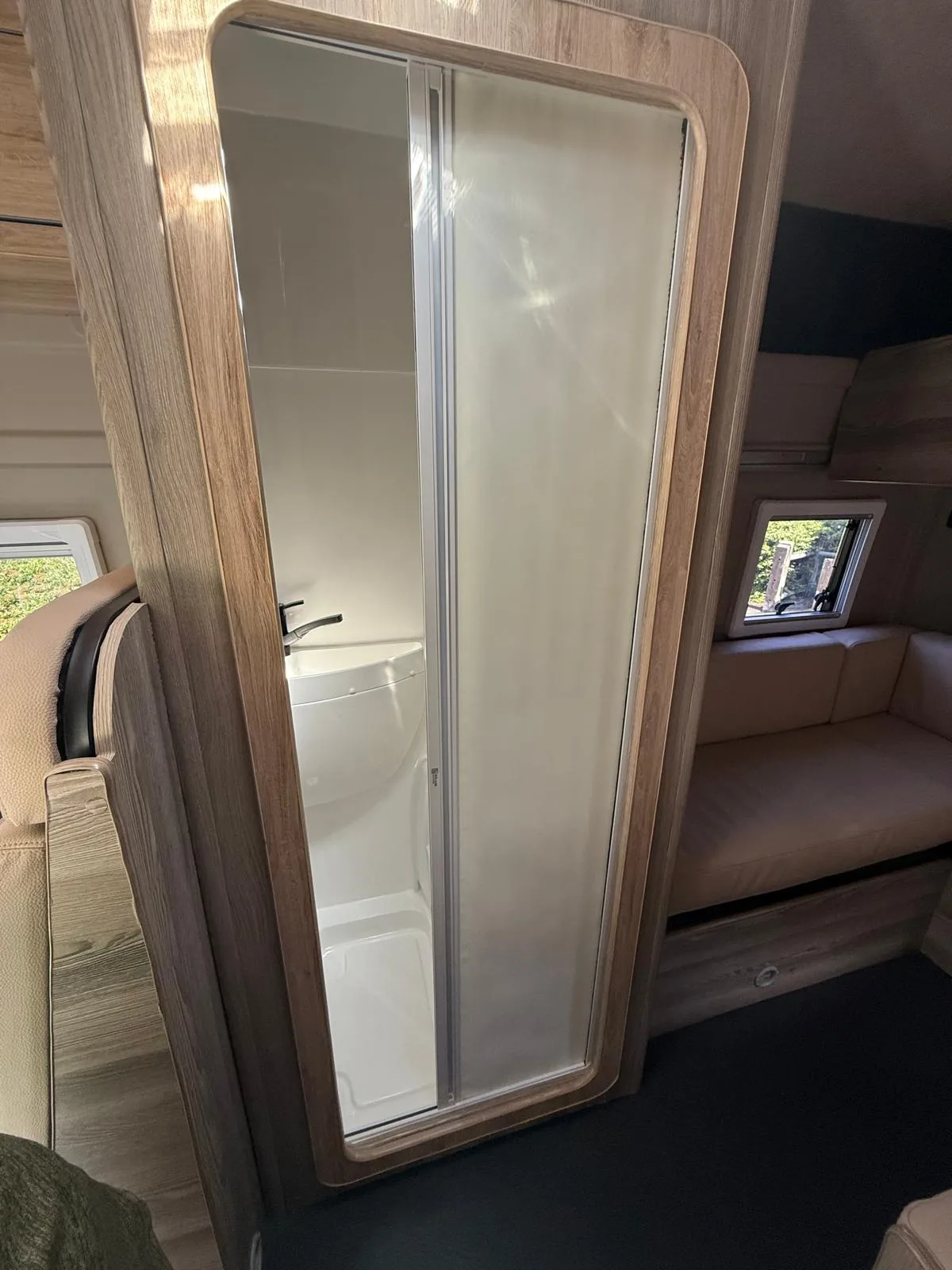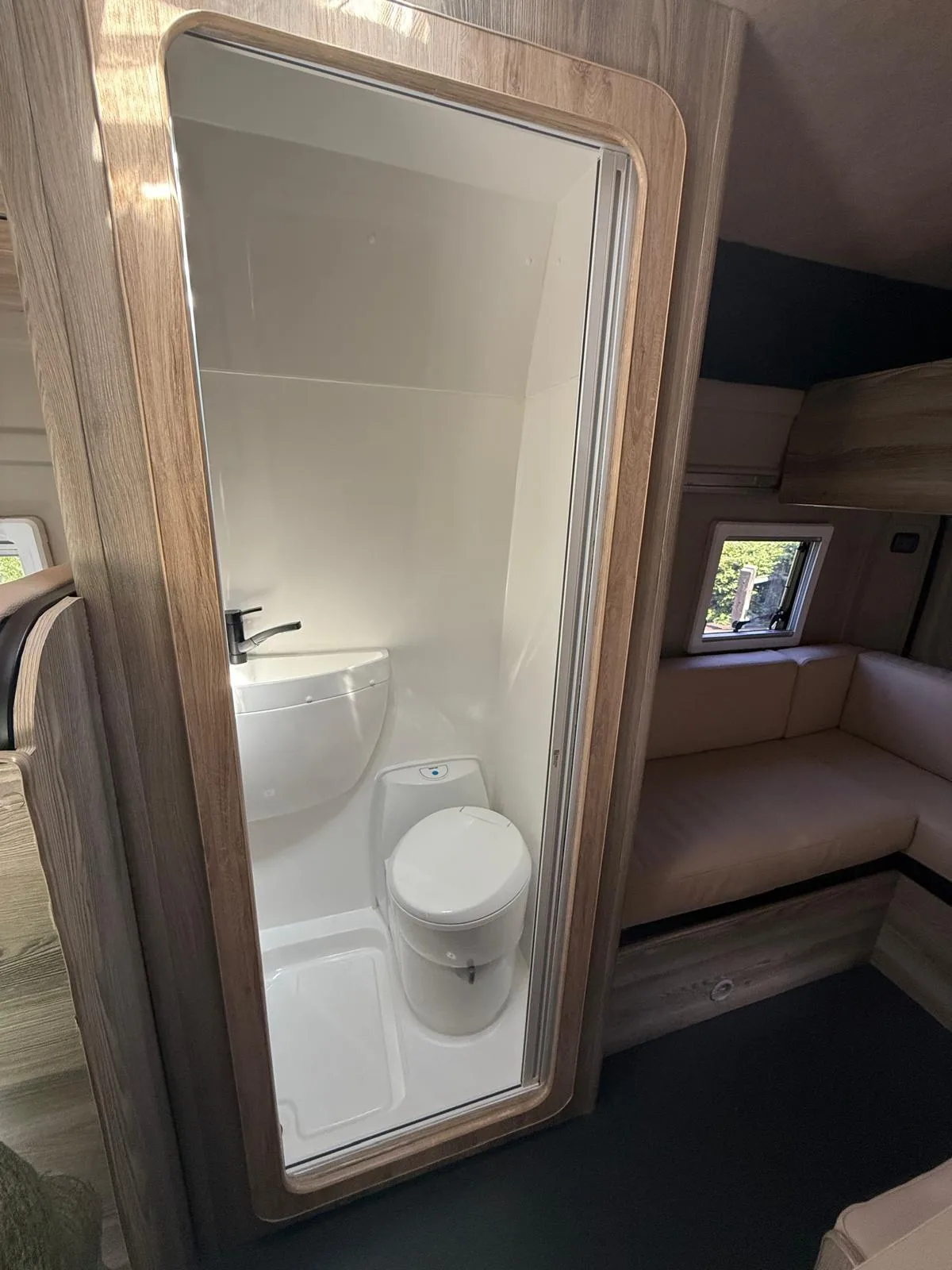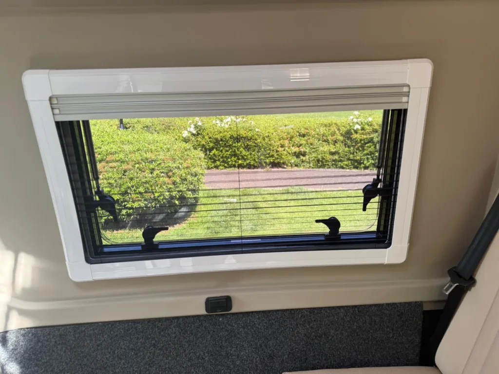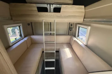 Reverse camera to the rear U shape seating to rear which converts to double bed it has the tinted caravan type windows which all open out over which are double glazed and have child locks on much better than the glass windows! It has a truma d4 boiler which works on diesel on its own or a mix of diesel and 230v or 230v on its own when on a site ,Sargent 12v electrics with charger for when on hook up which will charge leisure batteries! It has 2 agm leisure batteryβs wired in parallel and a 200w solar panel with mttp charge controller! It has a max air fan in the middle of van and a 400x400sky light to front of vehicle! It has a toilet pod with a cassette toilet and sink in and extendable tap if someone wants a shower or use as a wash dry room and rinse things off! Roldoure sliding cassette door , No gas but built in microwave and just use electric appliances when on site or has space if someone wants to add gas! Or an inverter so they donβt need hook up! It has the drip rail light above sliding door which prevents water dripping in to van and is a bright light on the outside, has 12v and 230v sockets it has on board waste and fresh water tanks fitted to underneath of vehicle which makes life more easy instead of jumping extra water barrels about all material is faux leather cram used which is incredibly durable and has the med density foam which is perfect , the sides of u shape lift up also and have storage underneath them and to the front of vehicle above cab there is plenty storage up there to with it being the high top ! It has built in blinds internally and I have the exterior front cab blind as it helps massively and prevents condensation any more info get in touch please ask incase I have missed something!