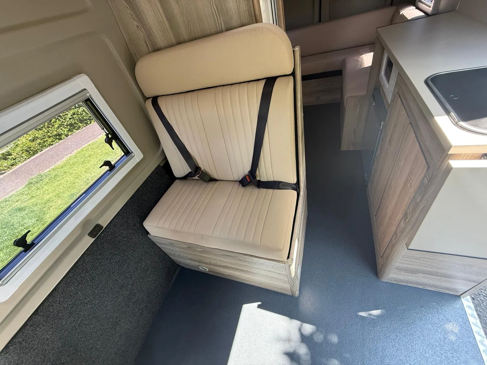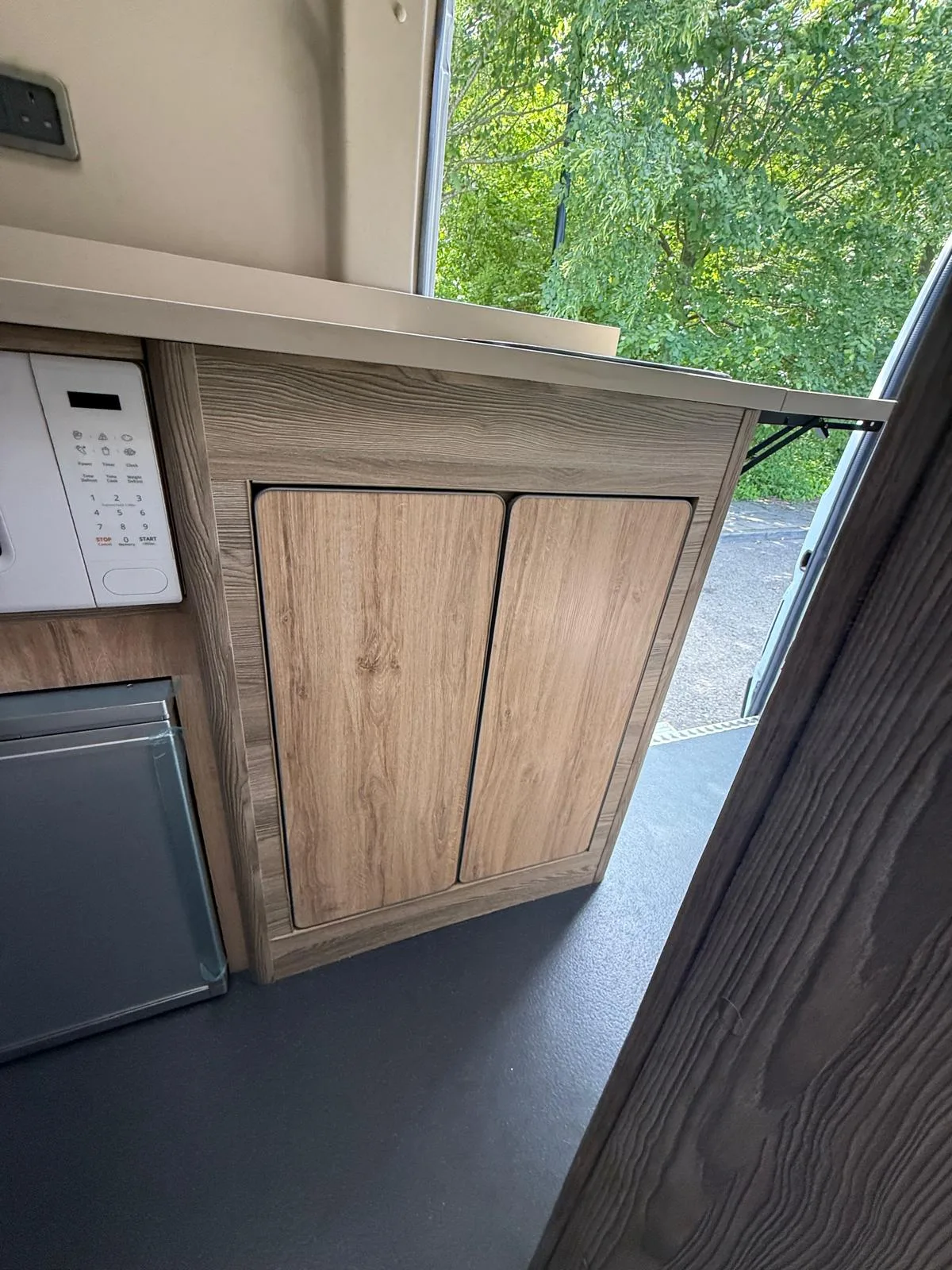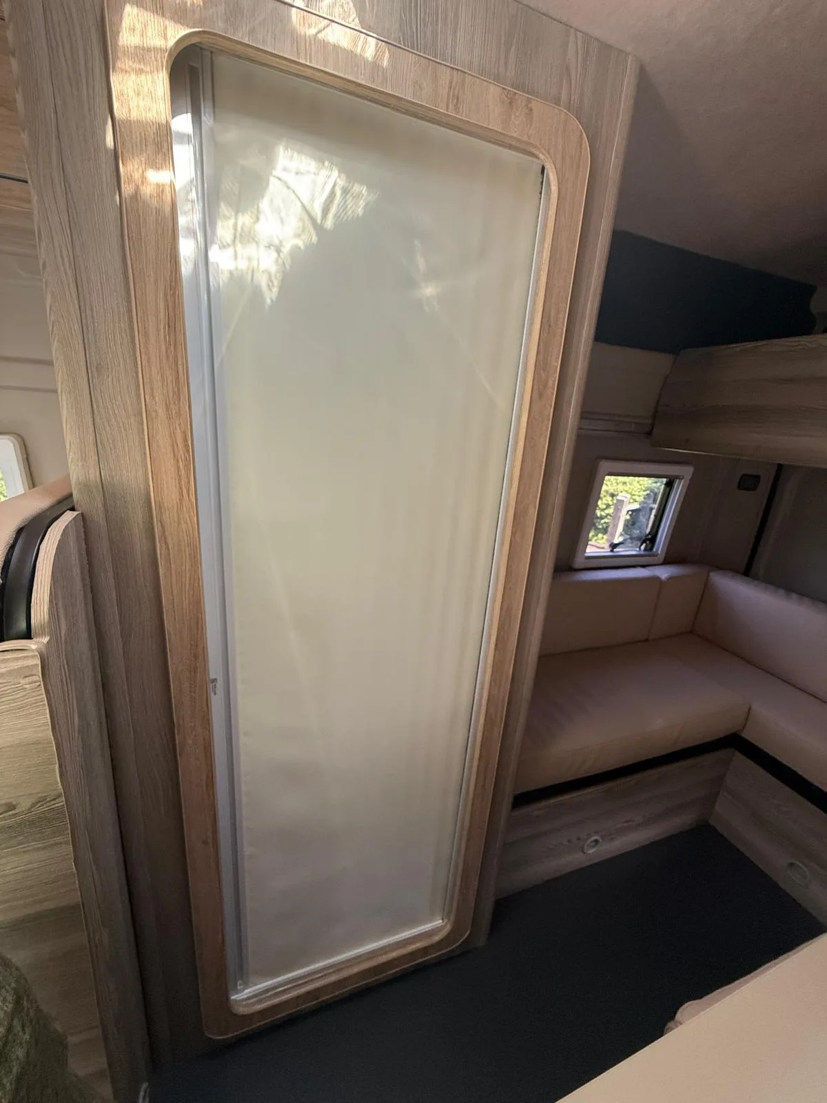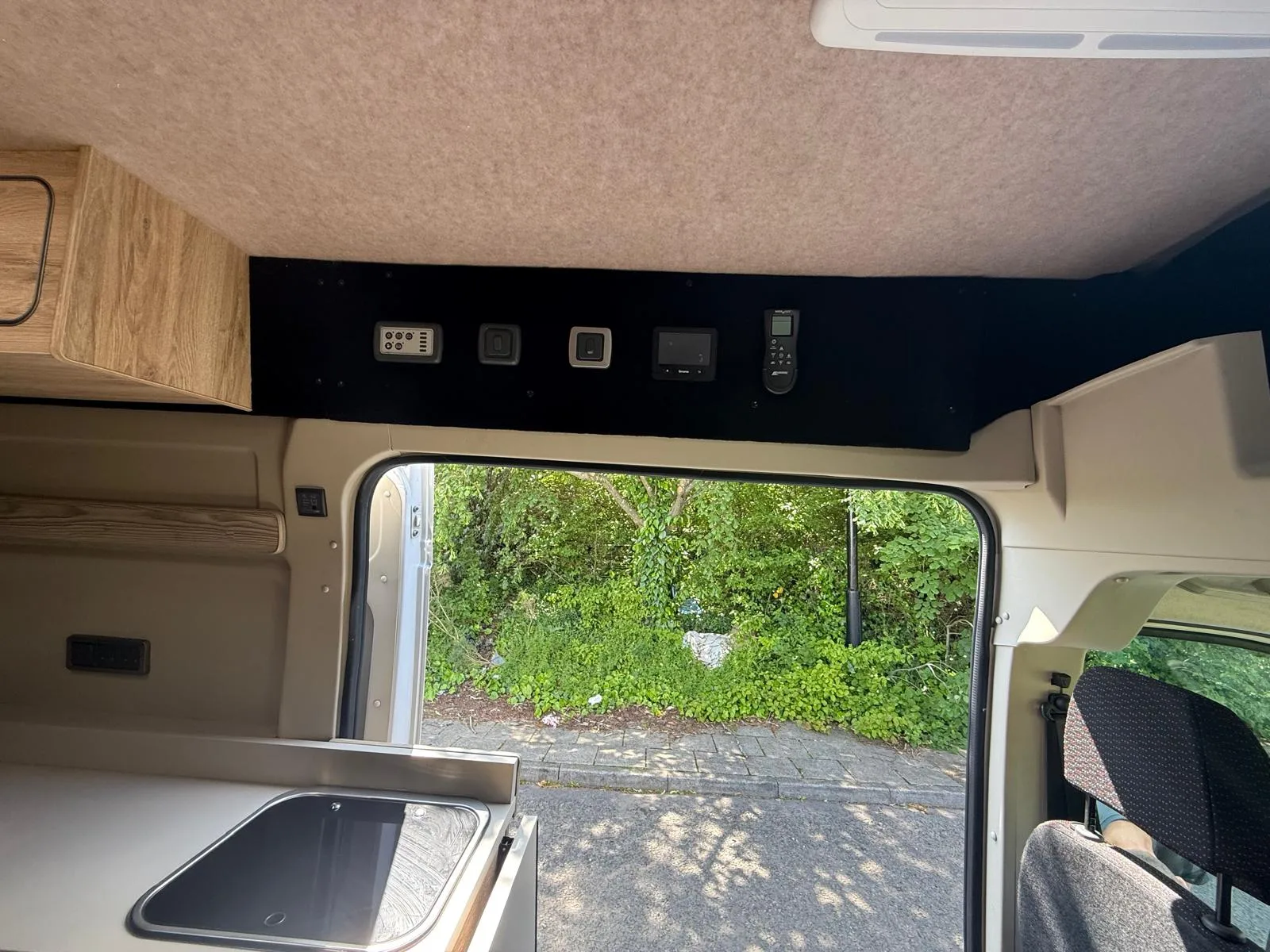 Reverse camera to the rear U shape seating to rear which converts to double bed it has the tinted caravan type windows which all open out over which are double glazed and have child locks on much better than the glass windows! It has a truma d4 boiler which works on diesel on its own or a mix of diesel and 230v or 230v on its own when on a site ,Sargent 12v electrics with charger for when on hook up which will charge leisure batteries! It has 2 agm leisure batteryβs wired in parallel and a 200w solar panel with mttp charge controller! It has a max air fan in the middle of van and a 400x400sky light to front of vehicle! It has a toilet pod with a cassette toilet and sink in and extendable tap if someone wants a shower or use as a wash dry room and rinse things off! Roldoure sliding cassette door , No gas but built in microwave and just use electric appliances when on site or has space if someone wants to add gas! Or an inverter so they donβt need hook up! It has the drip rail light above sliding door which prevents water dripping in to van and is a bright light on the outside, has 12v and 230v sockets it has on board waste and fresh water tanks fitted to underneath of vehicle which makes life more easy instead of jumping extra water barrels about all material is faux leather cram used which is incredibly durable and has the med density foam which is perfect , the sides of u shape lift up also and have storage underneath them and to the front of vehicle above cab there is plenty storage up there to with it being the high top ! It has built in blinds internally and I have the exterior front cab blind as it helps massively and prevents condensation any more info get in touch please ask incase I have missed something!