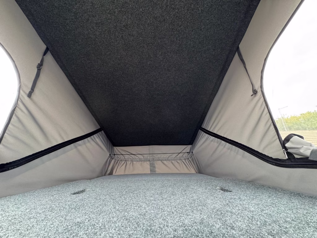 As above, this van is already a high top, so standing is no problem, it features full OEM style campervan panels from Solway and LED roof lighting. There’s a fixed rear full width double (4’6) bed with garage under for storage, pop top optional for additional sleeping of two, swivel front captain seats & a rear 2 seat bench (which converts to dining) and lots of storage. It’s fully insulated with closed-cell foam, and topped with dodo mat thermo fleece