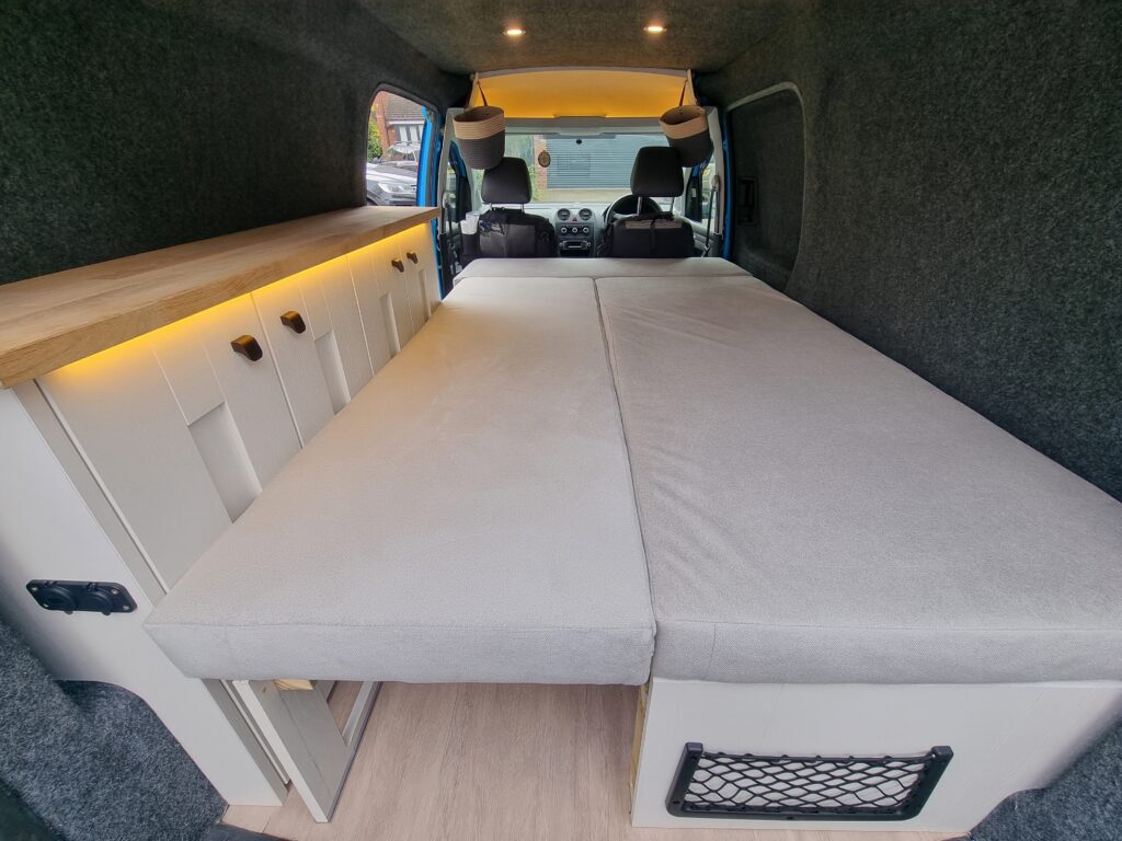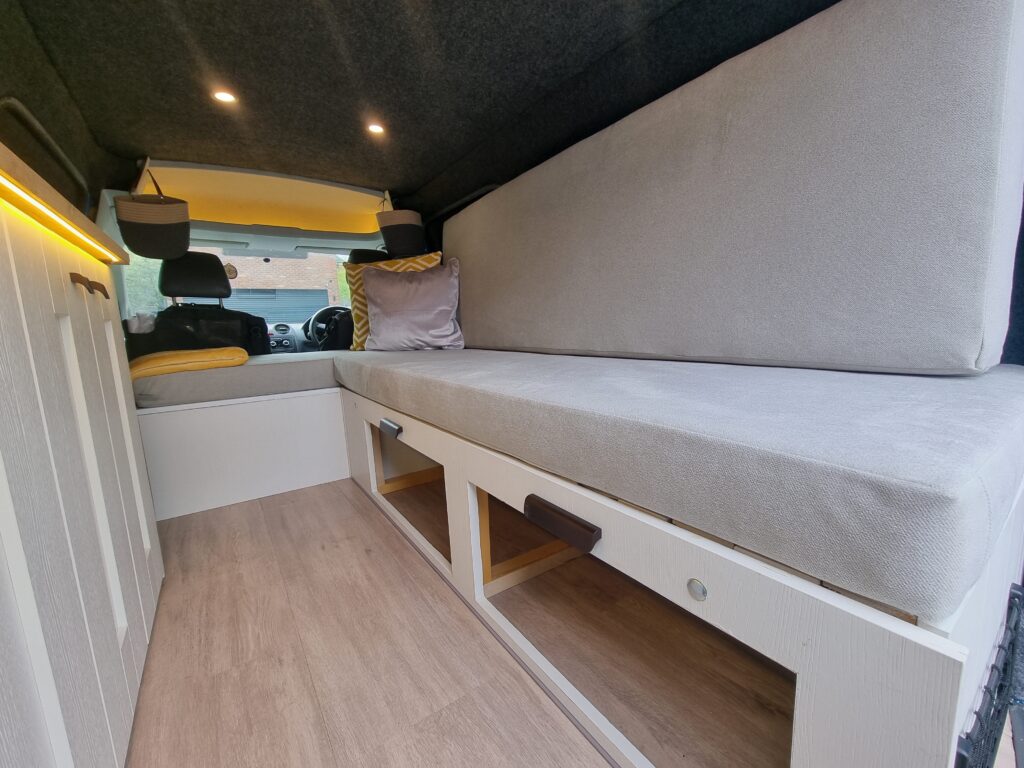 An ex Joiners van which I completely stripped back to basics, I’m a joiner by trade so had the necessary experience with the internal fittings. Please see below a full list of jobs undertaken to get the van to its current specification.