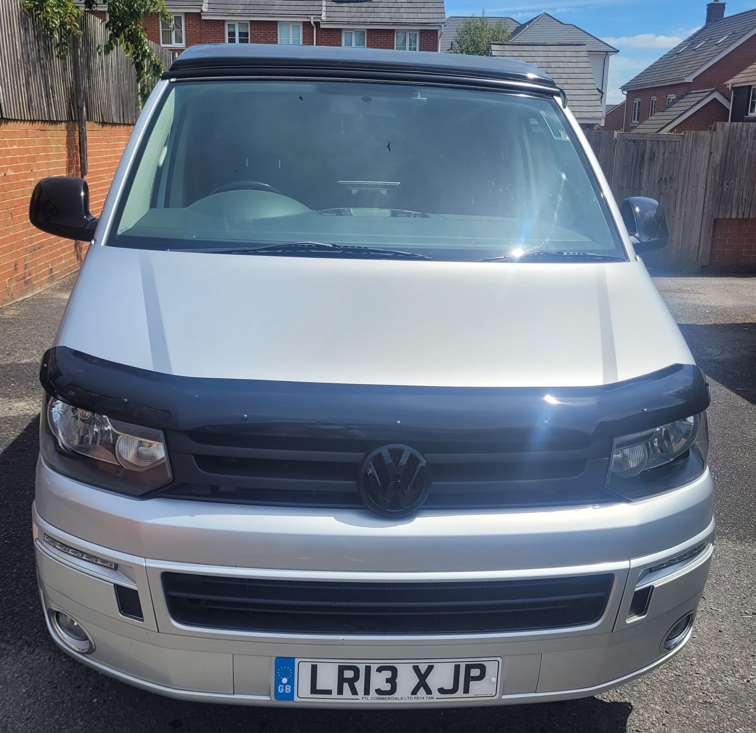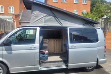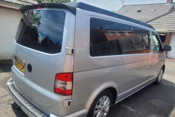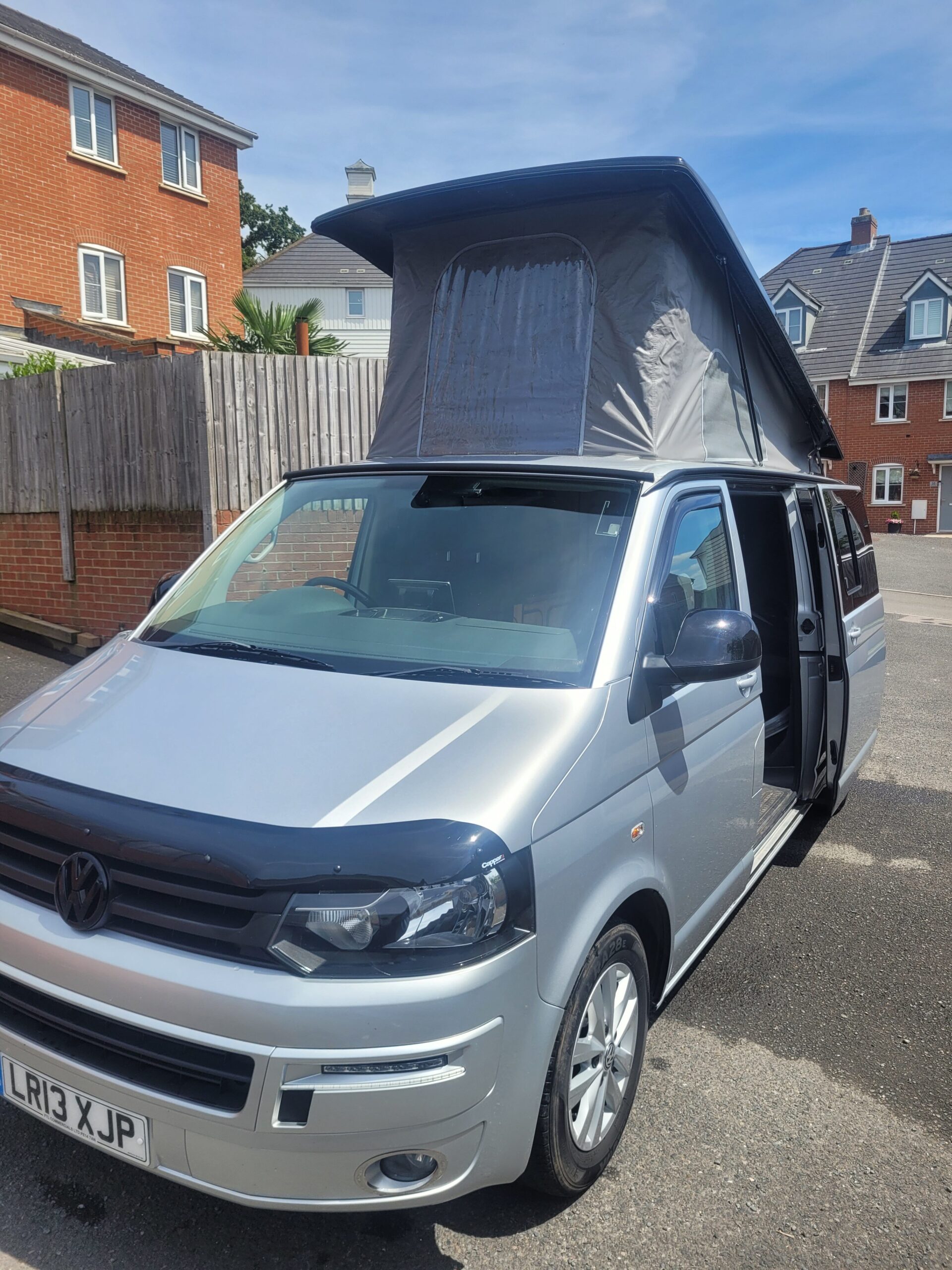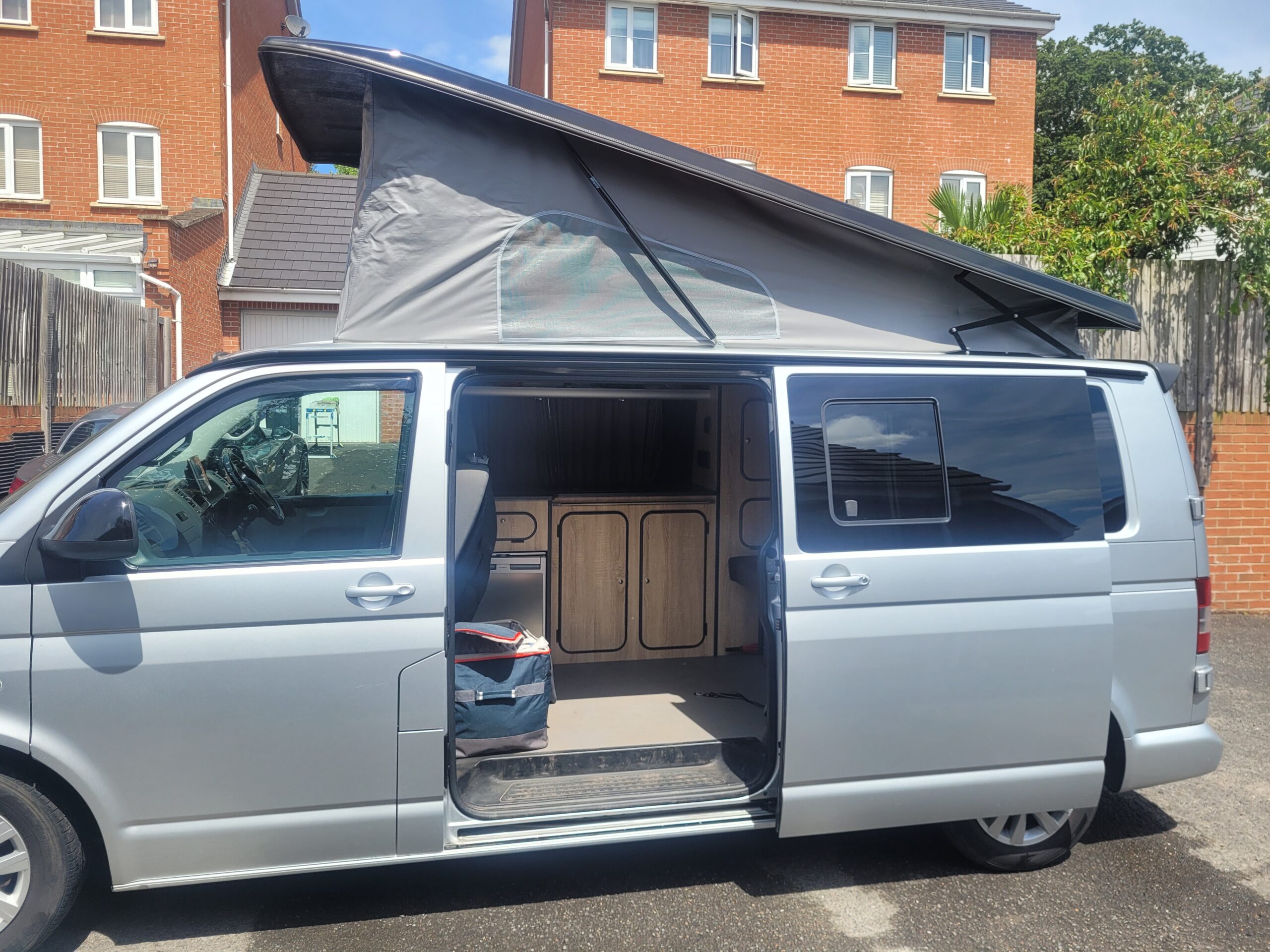 VW T5.1 Campervan, T30 Highline 140 TDI Long Wheelbase Registered 13.04.2013. Air Conditioning, day running lights, electric windows, central locking, upgraded headlights and much more – see below for full spec. Low mileage at 66,000 miles, Full Service History, platinum silver, grey interior, excellent condition inside and out. Full Campervan conversion undertaken in 2020 when I bought the vehicle. New OEM Alloy wheels and tyres fitted in 2020, New Water Pump, Cam Belt and Alternator fitted 2023, 3,000 miles ago. It is an excellent van and has been cherished, large history file, it is a great drive, powerful and smooth, the Long Wheel base means you have enough room at the back for luggage. I am only selling because my family has grown and I am now purchasing a caravan – I will miss it! It’s fully serviced, MOT’d and ready for it’s next adventure. Extended van spec: Alpine Halo 9 inch Multimedia system with full satnav and rear reversing camera, Pioneer rear speakers, Wifi router, Victron 180 w Solar panel with MPPT controller, Leisure Battery and split charge system with cable hook up – you can go off grid for days with the solar set up. Thinkware dashcam, Reimo multi rail fitted, 4 birth large Inflatable Kampa Driveaway Awning and attachment kit- less than 2 years old, Westfalia detachable tow bar and electrics Bilstein Komfort coilovers fitted all round and lowered. Camper conversion spec: Waeco coolmatic Dometic Crx Fridge, Dometic Sink and 2 burner hob, foldable table, Austops full length ‘pop top’ with double mattress Hammond Full width Rock and Roll bed. Swivel captain seat. Next MOT due 12/10/2024, Full service history, Silver, 3 owners, £29,900, No VAT. Happy to email/post additional photos/video. This is a really lovely van sad to see it go..