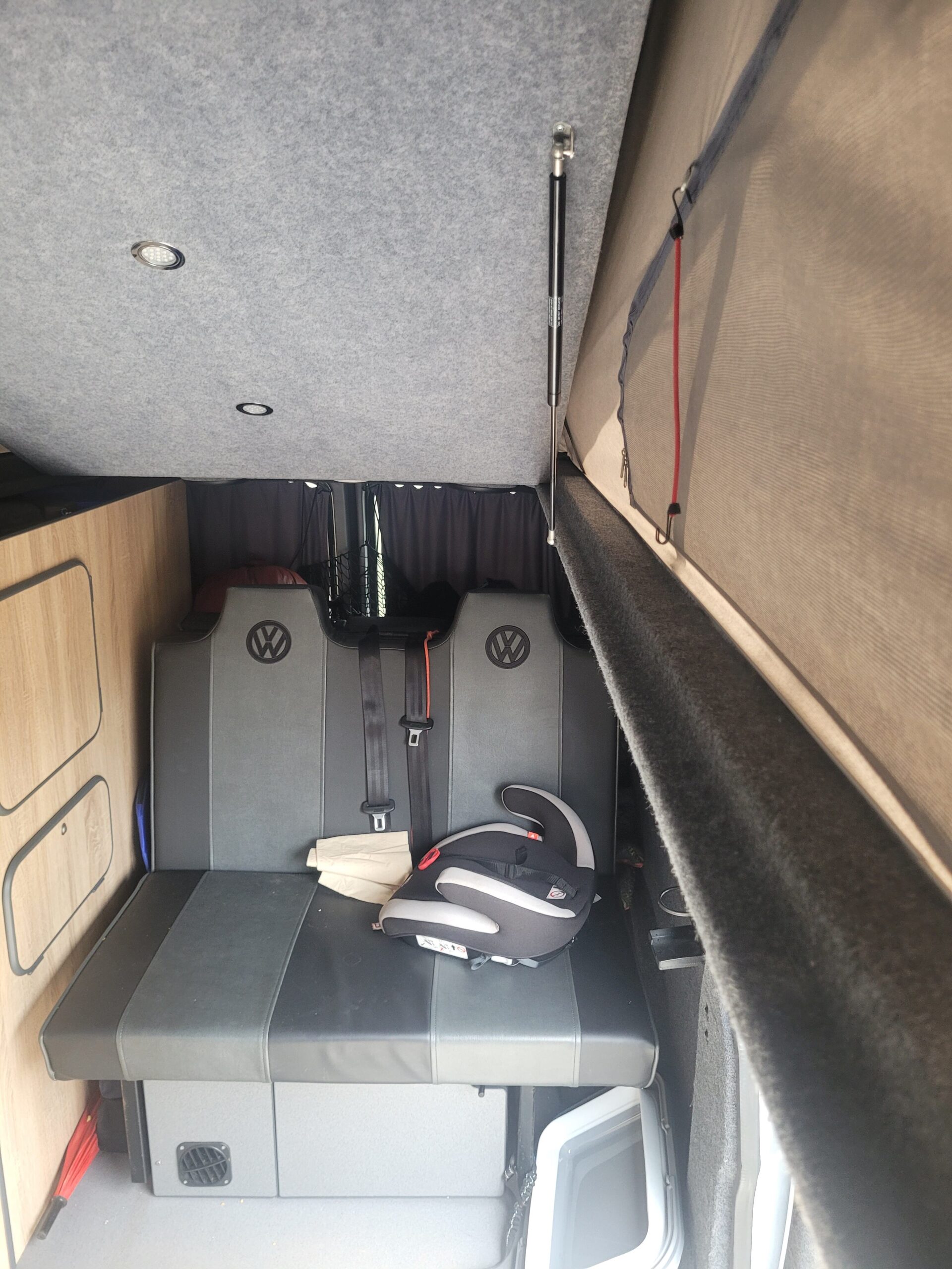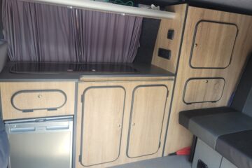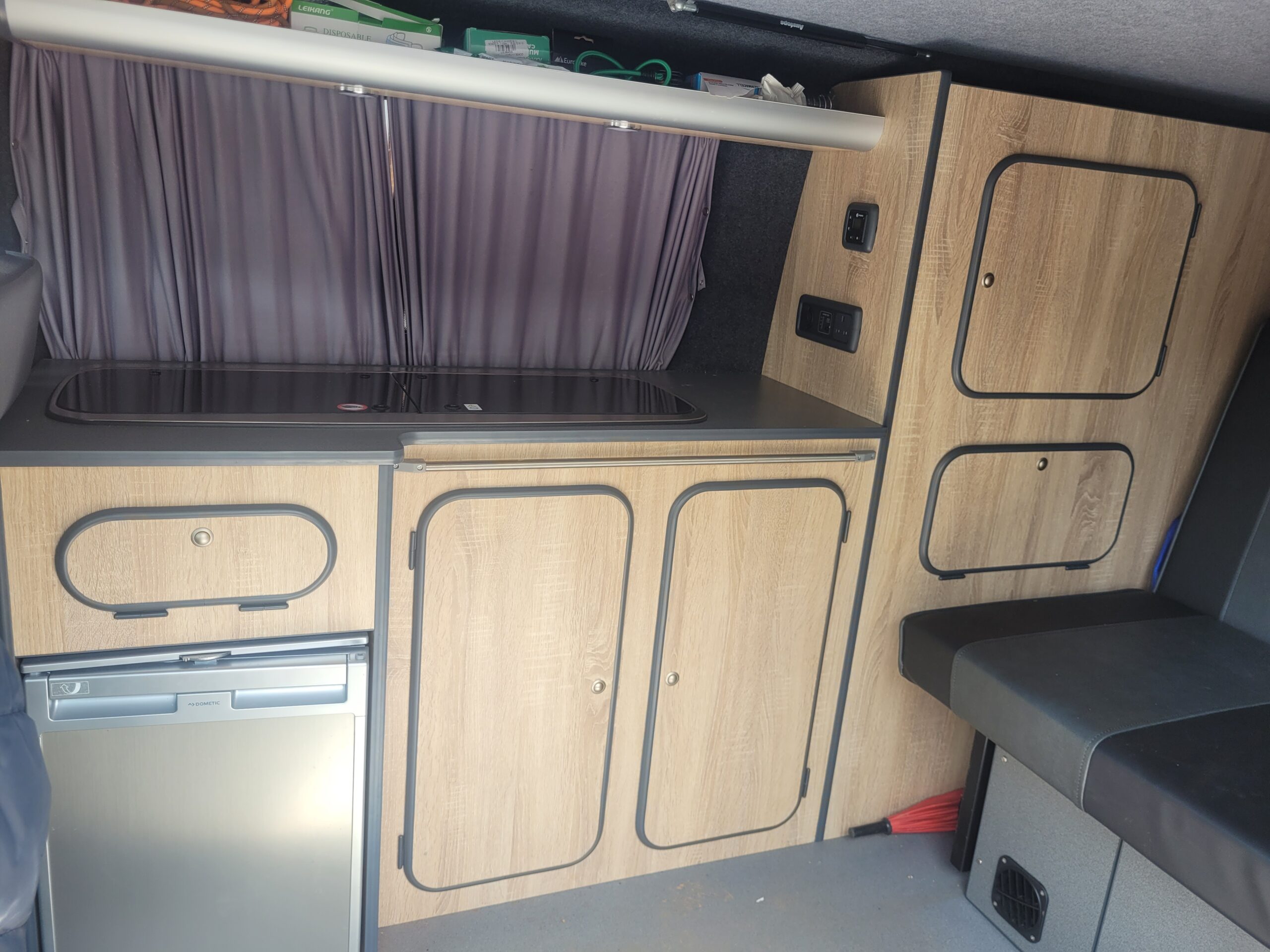 Camper conversion spec: Waeco coolmatic Dometic Crx Fridge, Dometic Sink and 2 burner hob, foldable table, Austops full length ‘pop top’ with double mattress Hammond Full width Rock and Roll bed. Swivel captain seat.