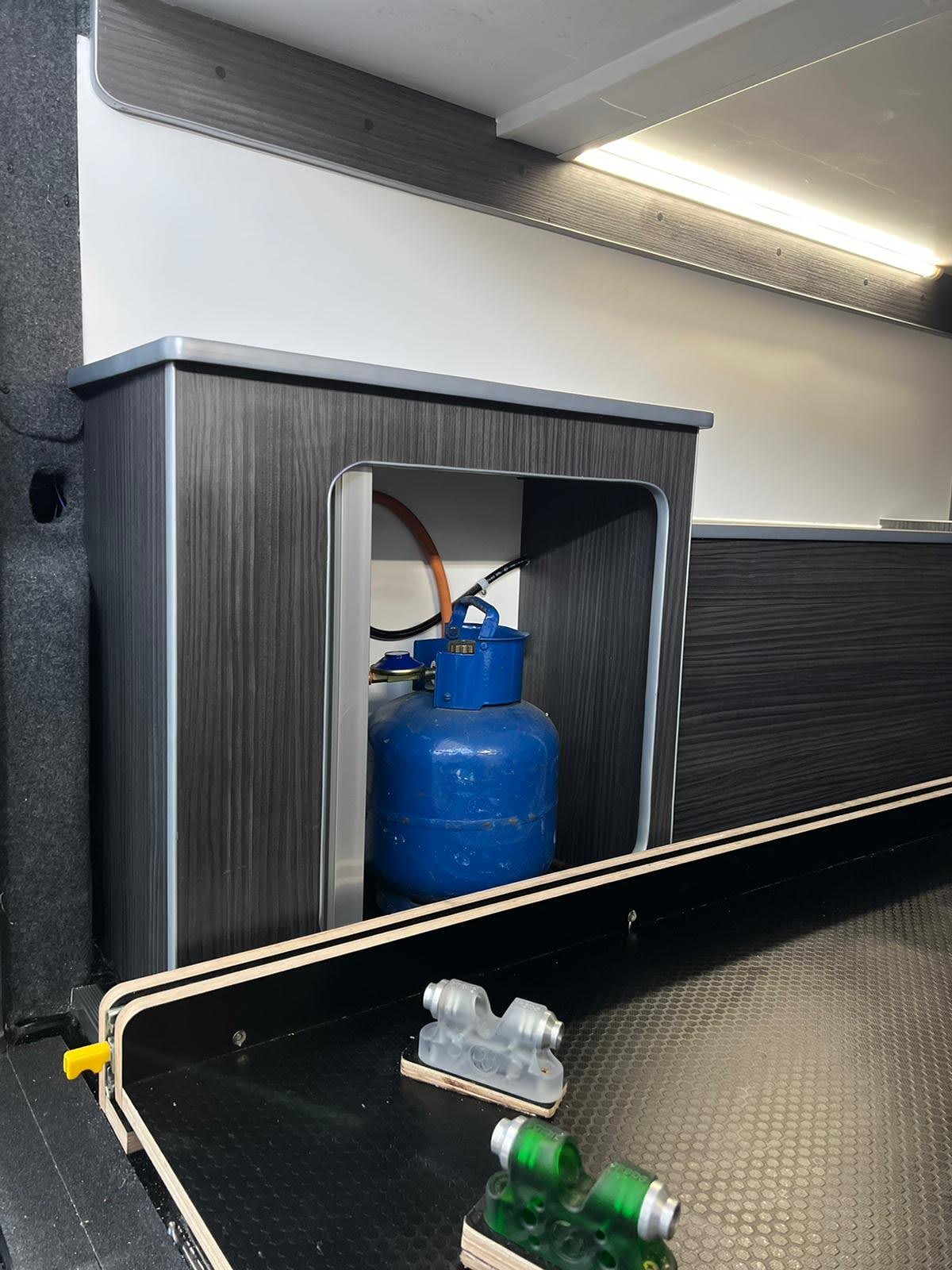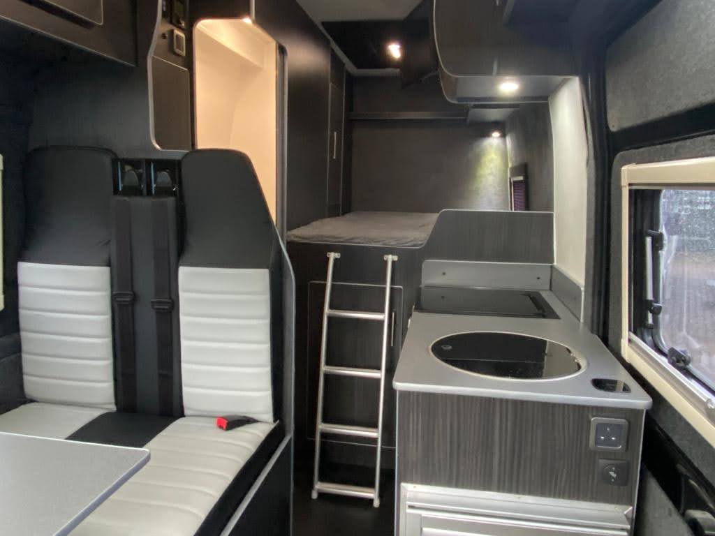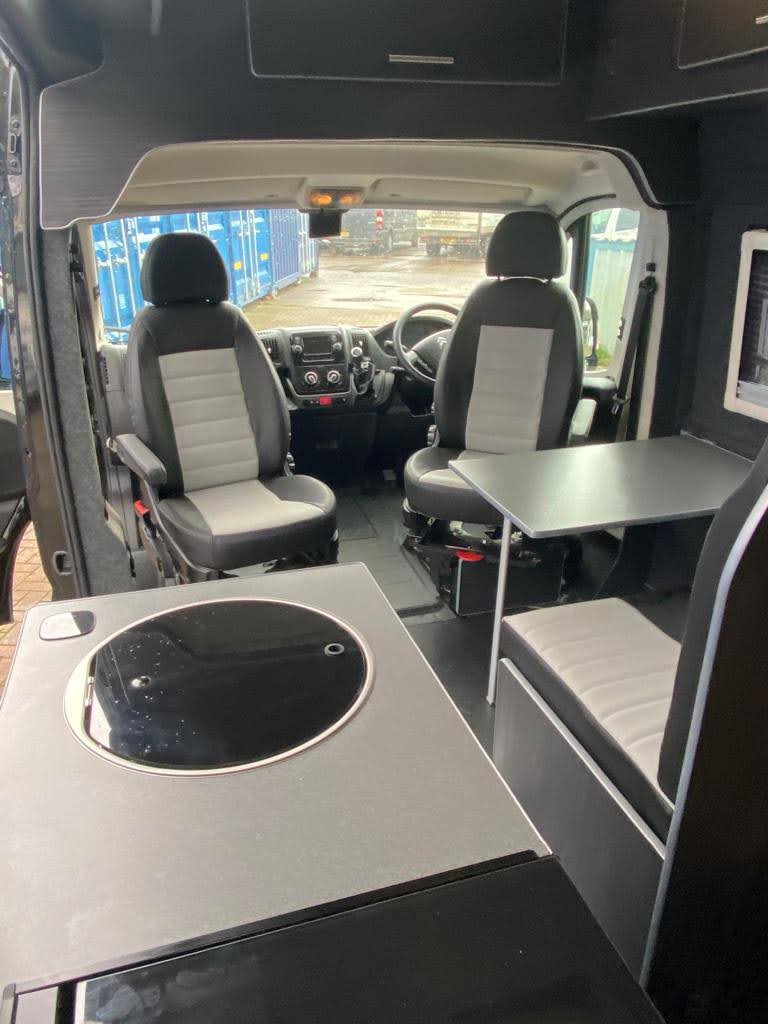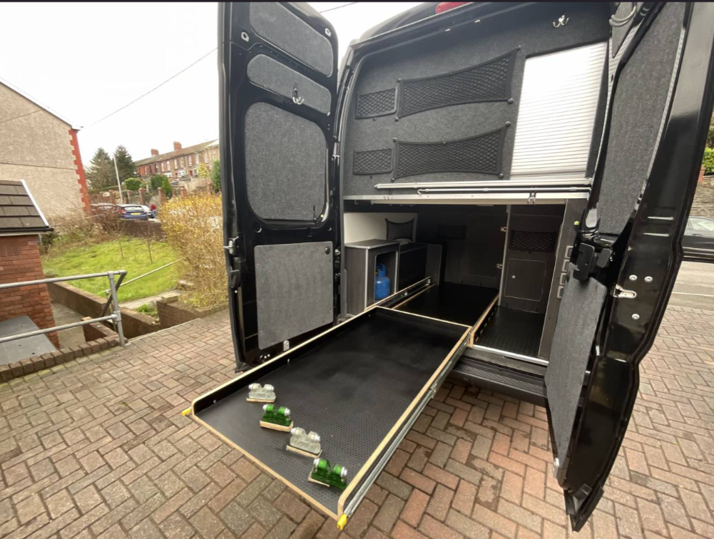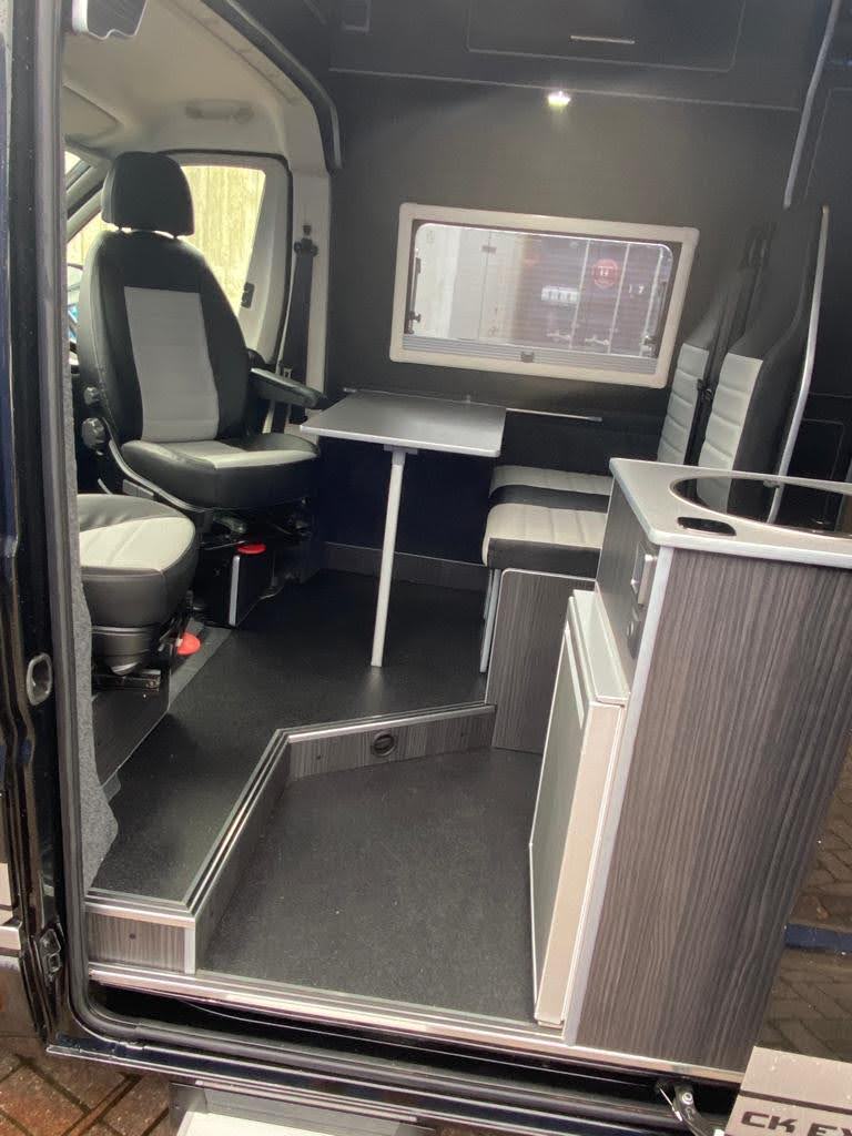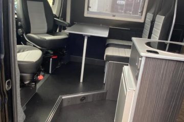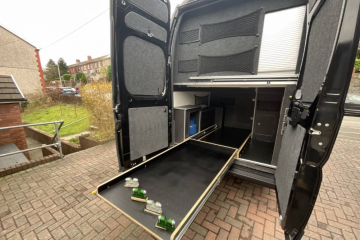 Converted from new, this campervan has been designed for all year round adventures thanks to the Truma combi 4e heating and hot water system (runs off gas and electric). It has an internal 4 bike sliding tray (max load of 150kgs). With power supply for charging e-bikes, which can be used off grid via 2# 130ah leisure batteries, a 200W solar panel and a 2kW inverter. Outside there is a shower point, BBQ point, electric hook up, Max Air roof vent with remote, Huawii wifi system (sim card required), TV antenna, a Fiamma 4 metre wind out awning with external light, 100L freshwater tank and 80L wastewater tank.