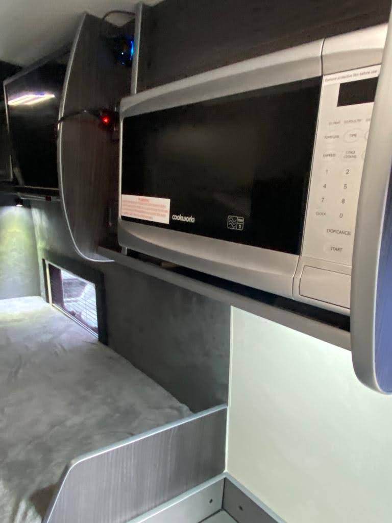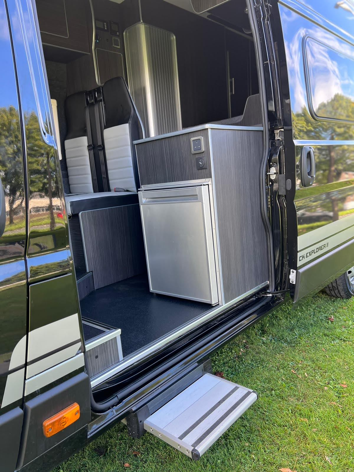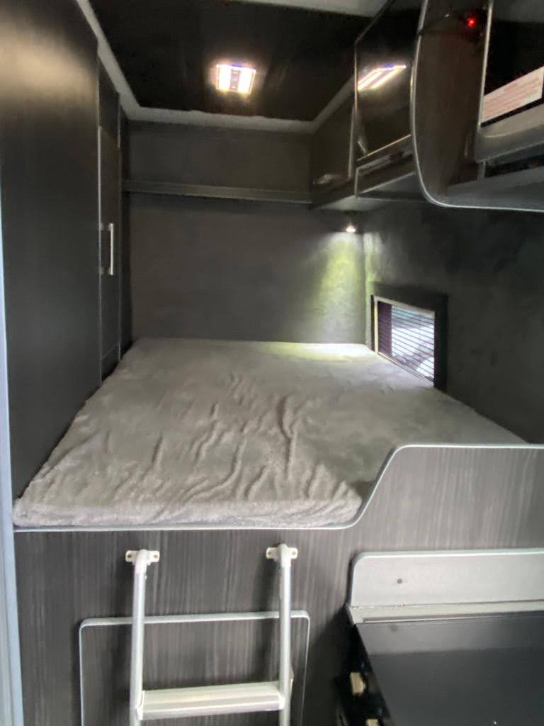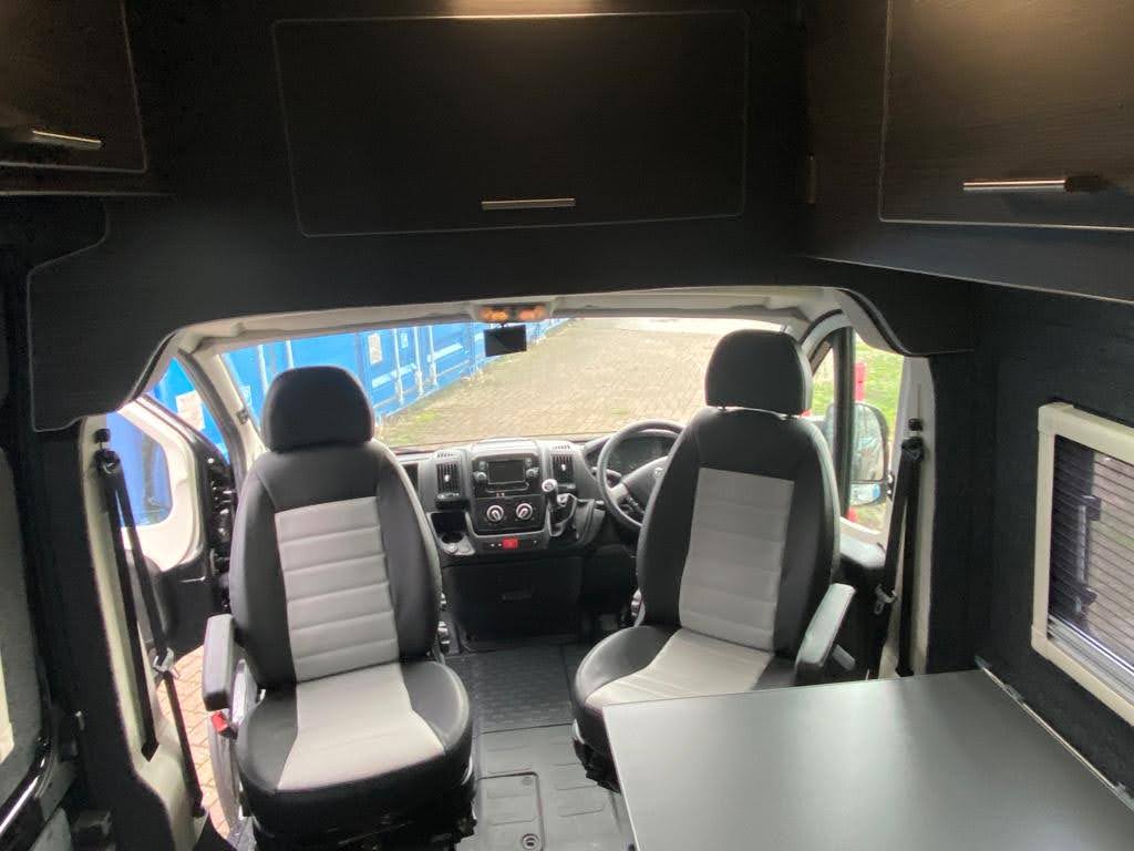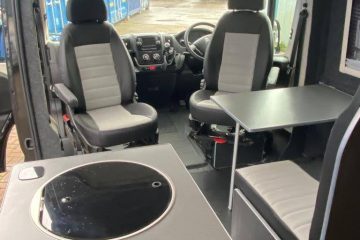 Converted from new, this campervan has been designed for all year round adventures thanks to the Truma combi 4e heating and hot water system (runs off gas and electric). It has an internal 4 bike sliding tray (max load of 150kgs). With power supply for charging e-bikes, which can be used off grid via 2# 130ah leisure batteries, a 200W solar panel and a 2kW inverter. Outside there is a shower point, BBQ point, electric hook up, Max Air roof vent with remote, Huawii wifi system (sim card required), TV antenna, a Fiamma 4 metre wind out awning with external light, 100L freshwater tank and 80L wastewater tank.