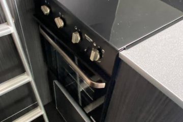 The cab has Remis blinds for the windscreen and door windows and captain seats. There is a mid kitchen and dinette, washroom, fixed double bed (over the garage) to the rear, and large storage cupboards throughout. The kitchen has a Thetford Triplex gas oven/grill with triple burner hob, circular stainless steel sink with hot and cold mixer tap, 80L compressor fridge with freezer compartment, cookworks microwave and plenty of storage. The dinette consists of two further forward facing belted seats. The washroom has a dometic toilet, corner sink and shower over molded shower tray, closed off via a tambour sliding door. The garage has additional storage, including a heated cupboard.