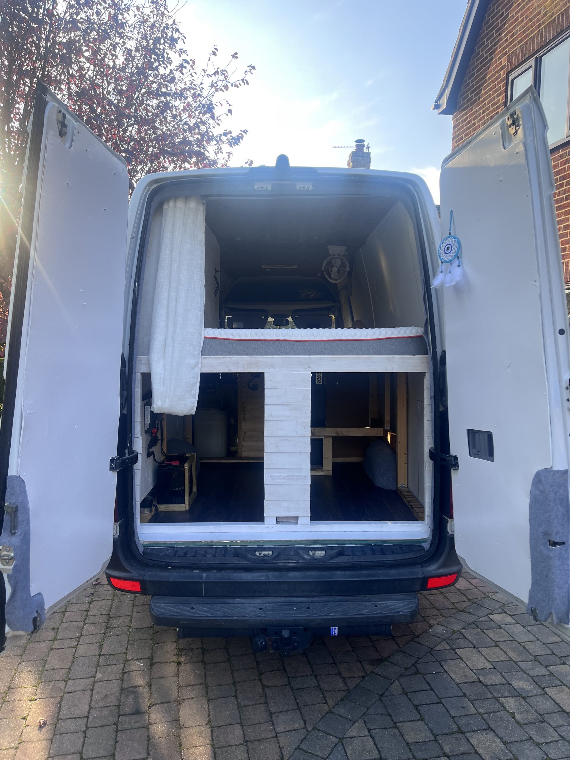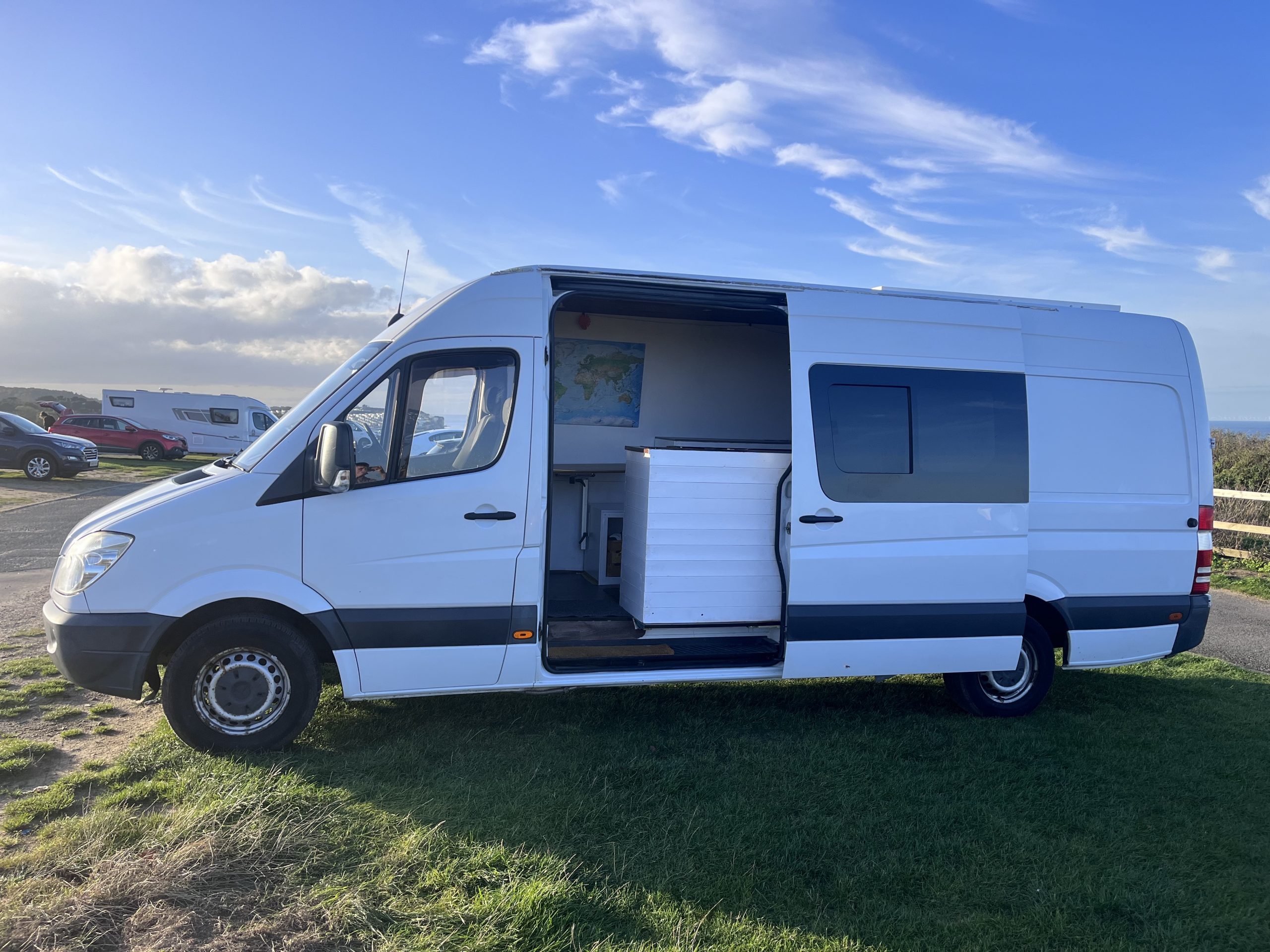 We have completed our travels around Europe and are looking to sell our beloved off-grid camper van named Benson. Benson is a 2013 Sprinter 313 CDI 2.1L that is fully equipped to live in full time, it is a long wheelbase with a fixed length way double bed so you can stretch out and not feel cramped when living in it. This van also has a very spacious under-bed area which can be used to store bikes, camping gear, surf boards, or any larger items you need on the road.