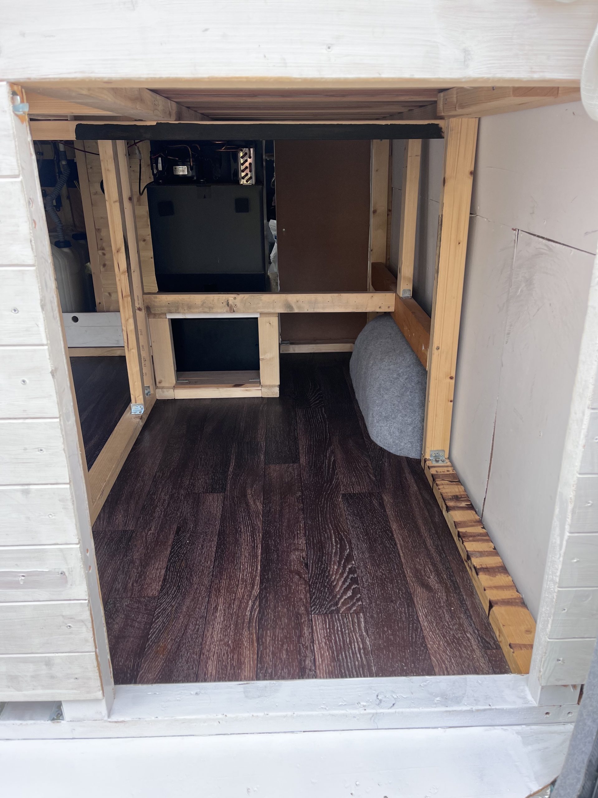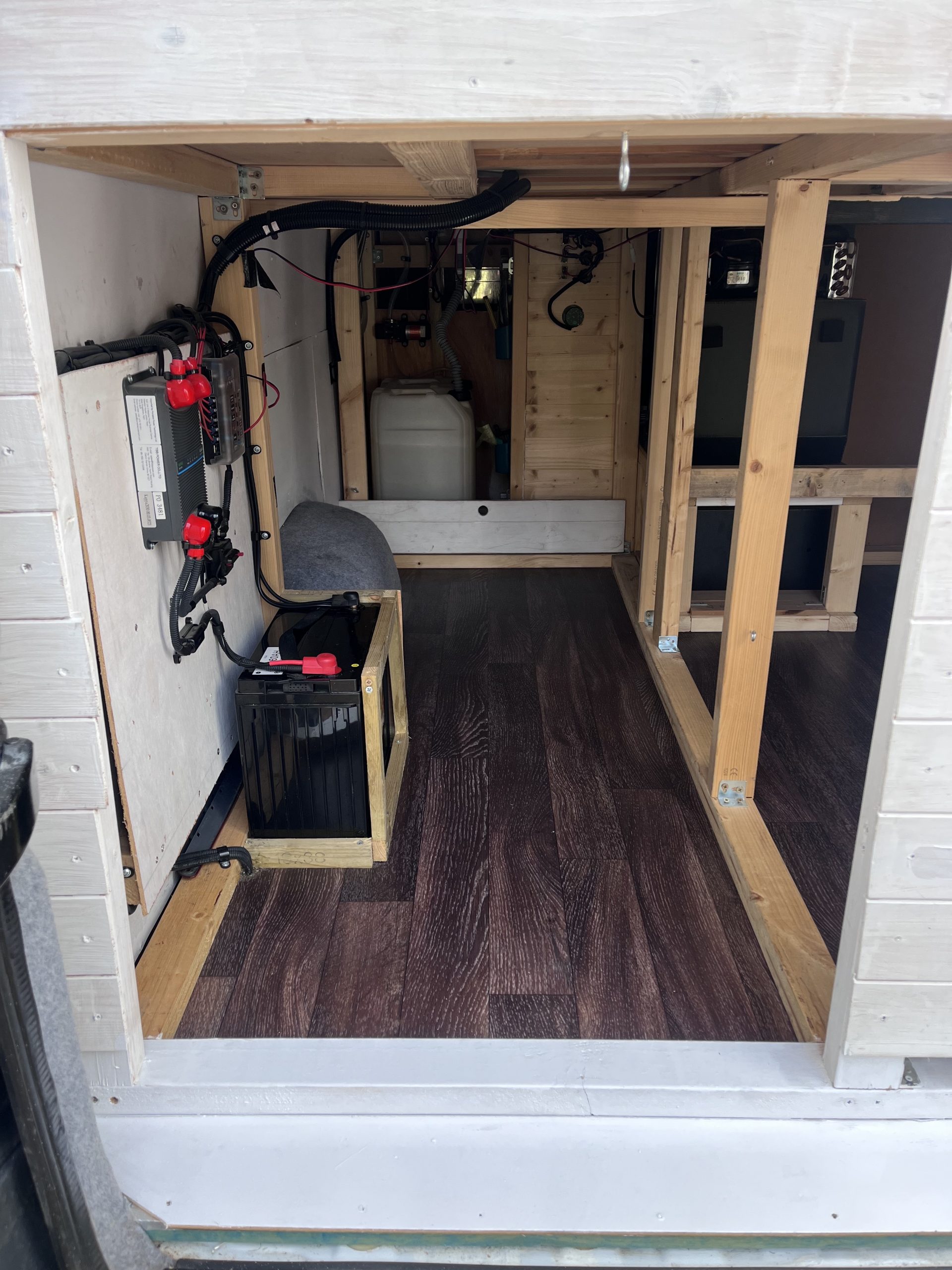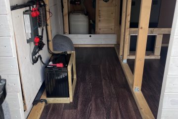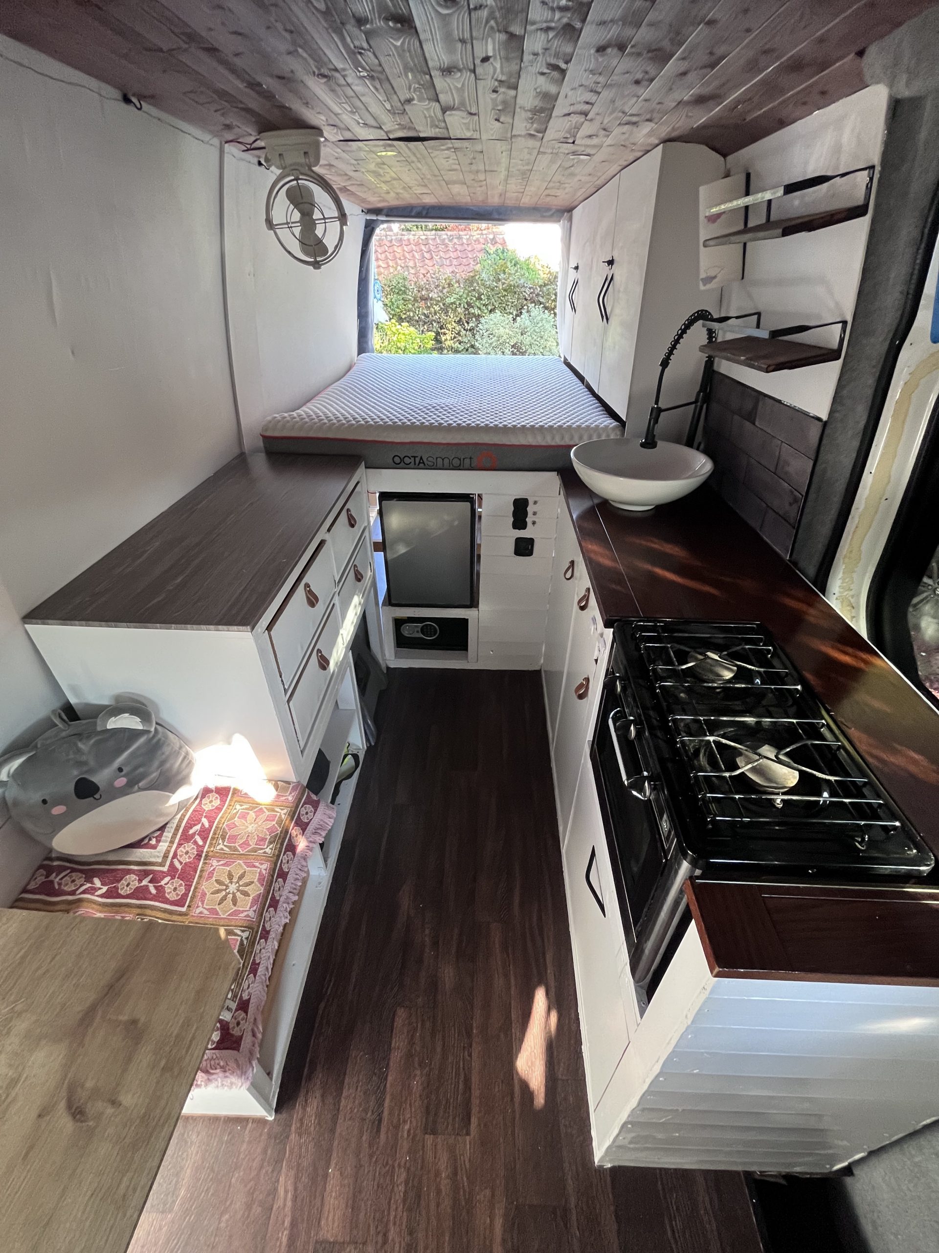We converted the camper to be off grid at the start of the year with a new fridge, solar panels and an electrical system professionally installed by an auto electrician. Extra storage was also added as the van was previously used as a weekender before us.