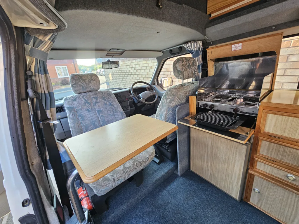 Doris has the proven Vw petrol engine and a 5 speed gearbox .She has been serviced every year. It’s been a great campervan and will be really sad to see her go