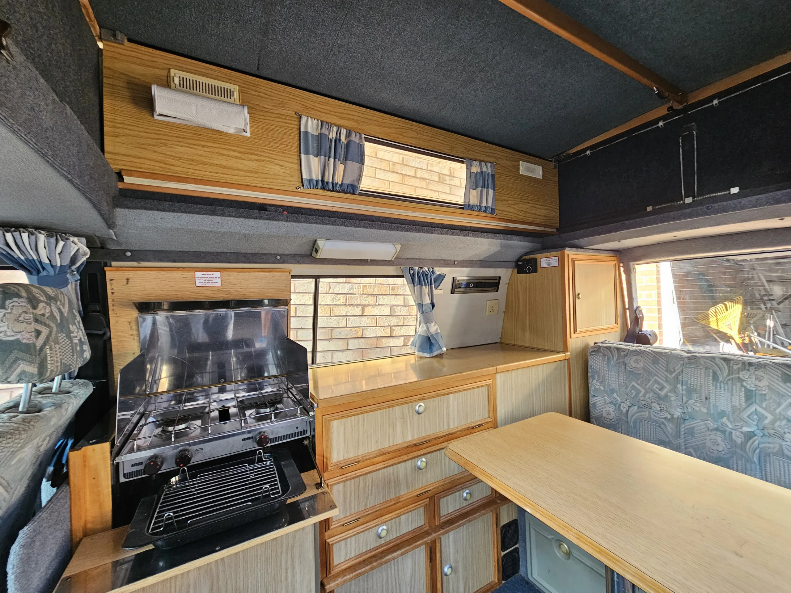 A lovely quality conversion by Autosleepers. with classic pop top .As mentioned previously it has cooker .240 volt electrics. grill and hob .leisure battery pull out bed .bike rack.There is also a bed in the pop top suitable for children