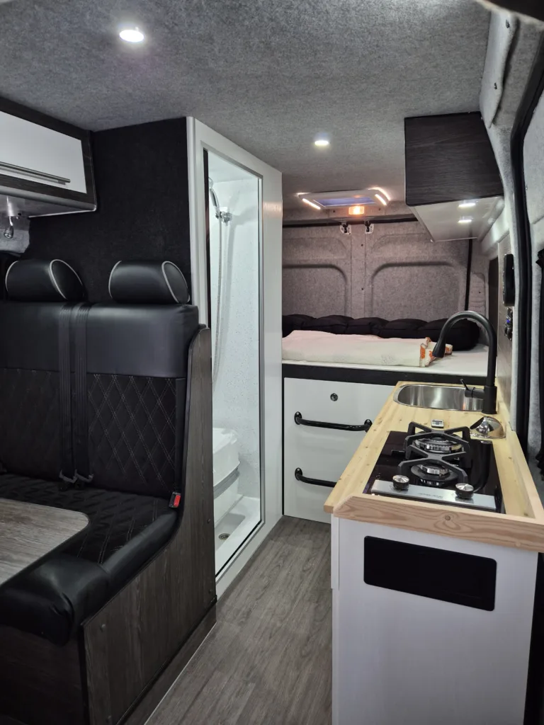 This 2018 68 plate Peugeot Boxer campervan is a sleek and stylish conversion, perfect for those looking to embark on camping adventures. With a spacious LWB wheel base and manual transmission, this camper van offers a comfortable sleeping capacity of 2 people with its fixed double bed. Fitted with safety features such as a driver airbag and back seat safety belts, peace of mind is ensured while on the road. The campervan comes complete with a range of features and equipment including a 40amp mppt for additional solar panels if needed a 215w pv panel mppt has additional output for an inverter, lpg hob , hand washbasin, 50ltr 12v fridge that can run down too -20, 12v dimmable reading light with usb, 215w solar system and mains hook up, shower, truma gas and mains water heater (all gas installation is professionally fitted with floor vents and bottle containd in fixed seal metal box and certified )2 burner hob, c channel for awning , maxxair fan with temperature control and remote control and warm air heating , making it a fully equipped and convenient choice for travel. Includes apple carplay and android player