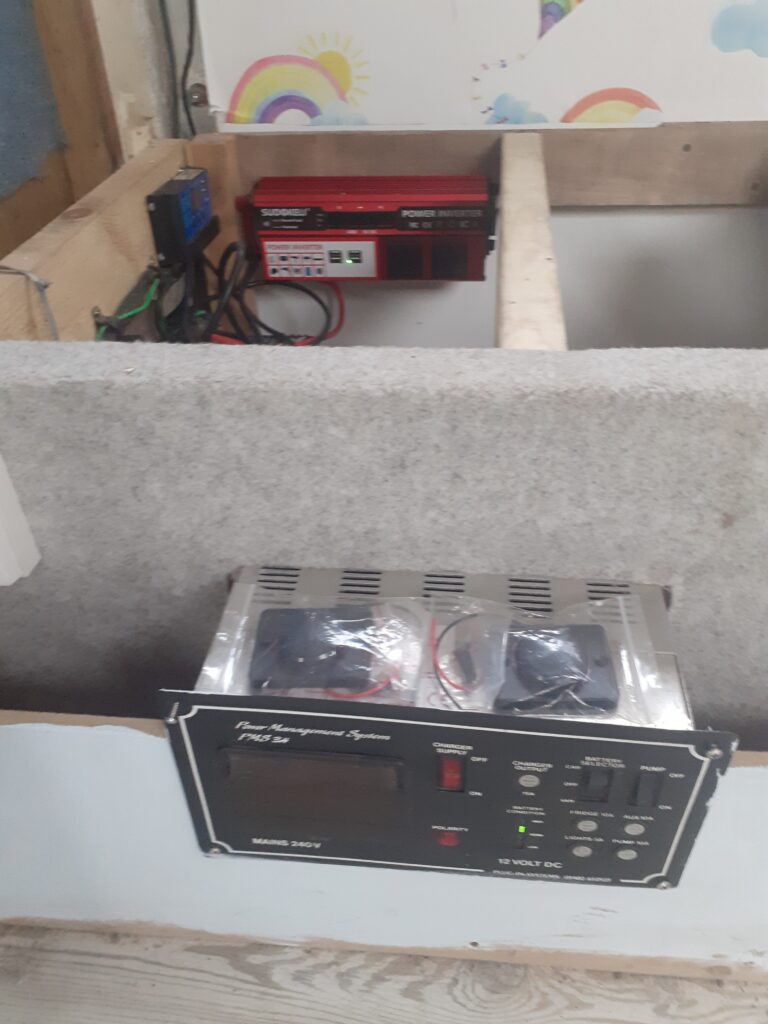 (Work starts soon – on storage in the front, fire resistant board around the wood burner, Insulation of walls)