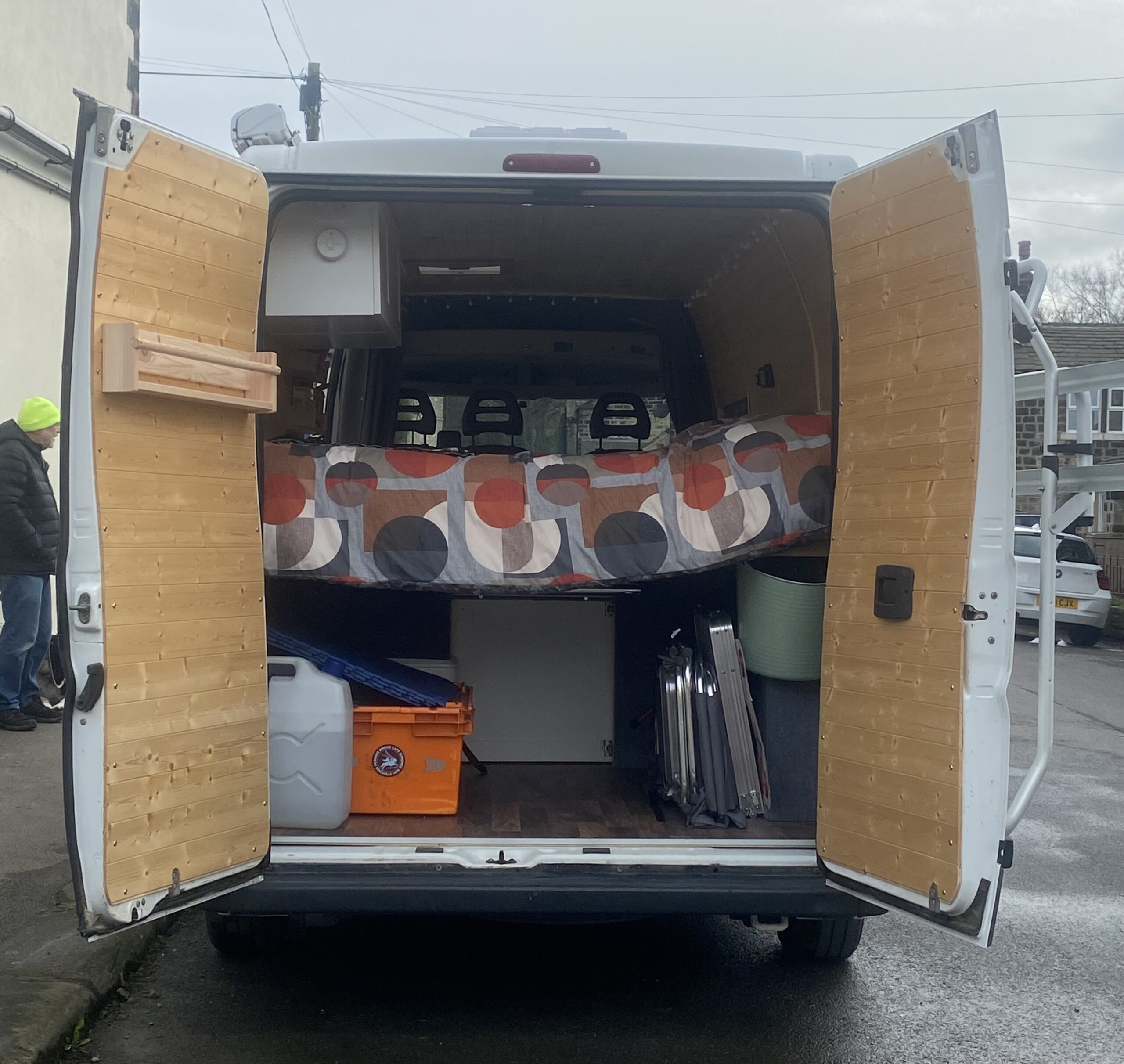 The van comes with a large Thetford chemical toilet, pumped water and grey water collection tank.