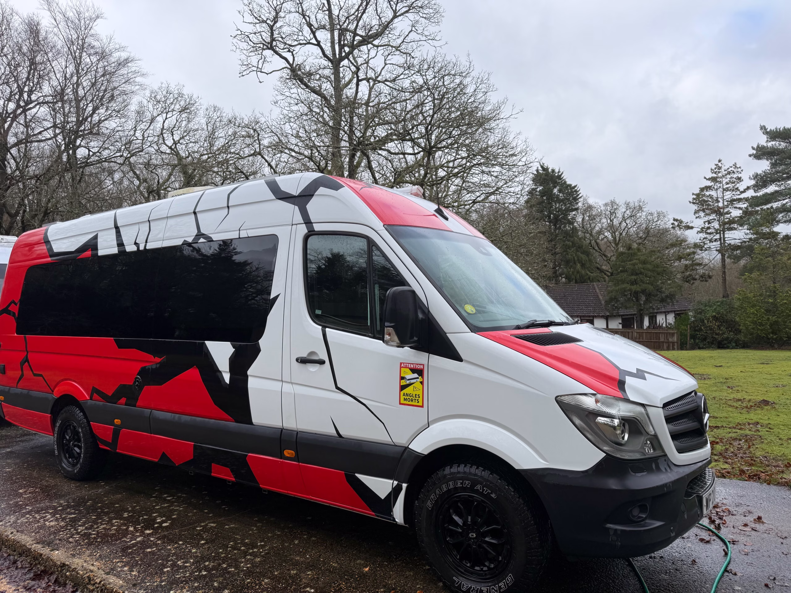 A unique body wrapped extra long and extra high sprinter with full service history.