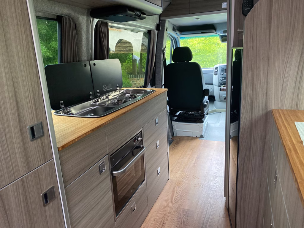 A stunning fully loaded campervan convention with 4.2 gross weight upgrade and capable to be off grid.