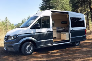 A beautifully designed Volkswagen Crafter campervan offering a calm Scandinavian-inspired interior, practical off-grid capability and thoughtful storage for adventure travel.