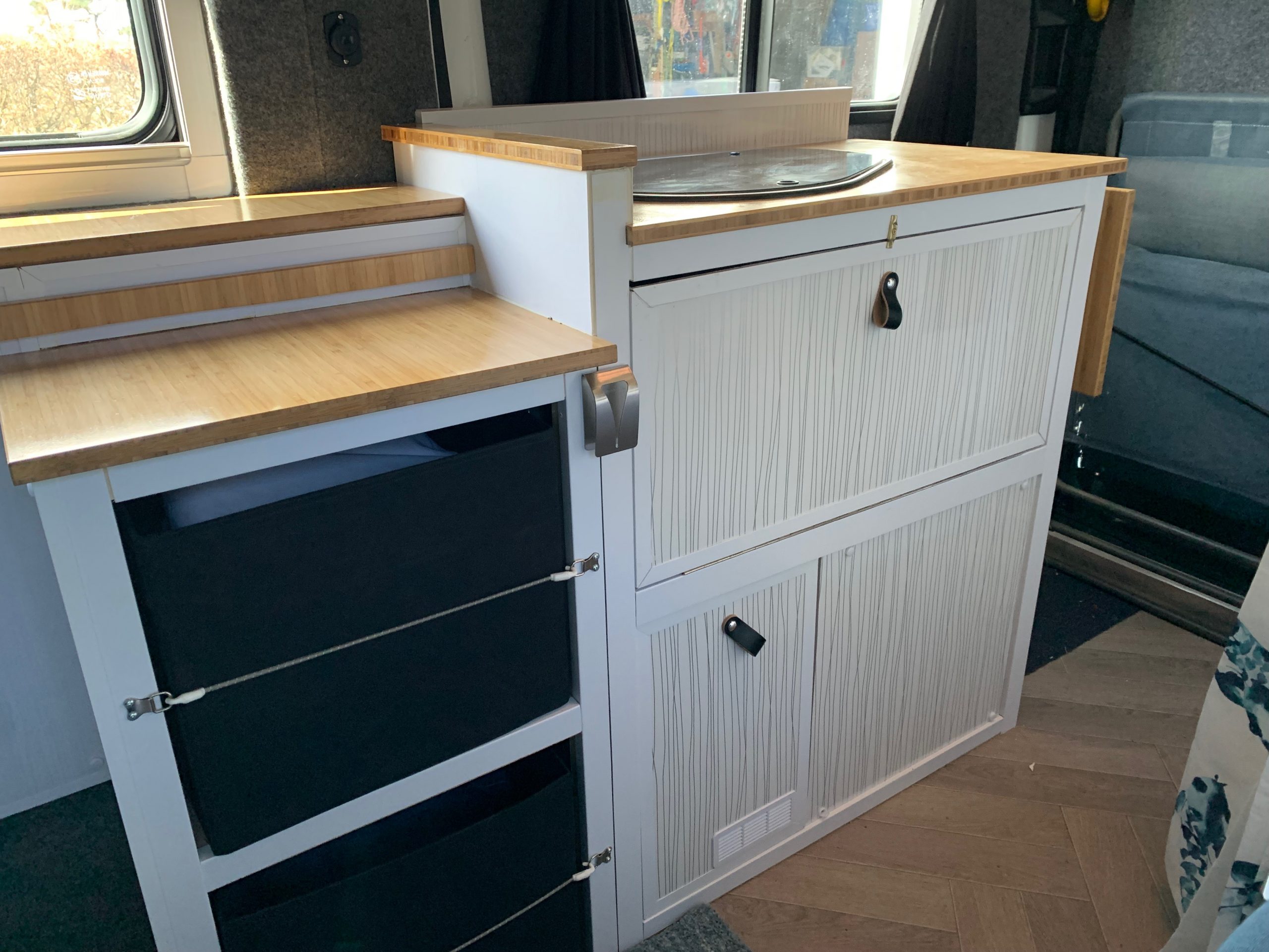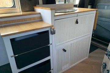 We built this van, our fourth, to travel for three months around Europe in 2022. We went to France, Italy, Austria and Germany in Astrid and it really worked well from 2 degrees in Scotland to 36 in Italy, we even managed to fit all our kayaking gear in the boot area. Since that trip we have used it in France and around the UK.
