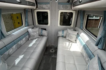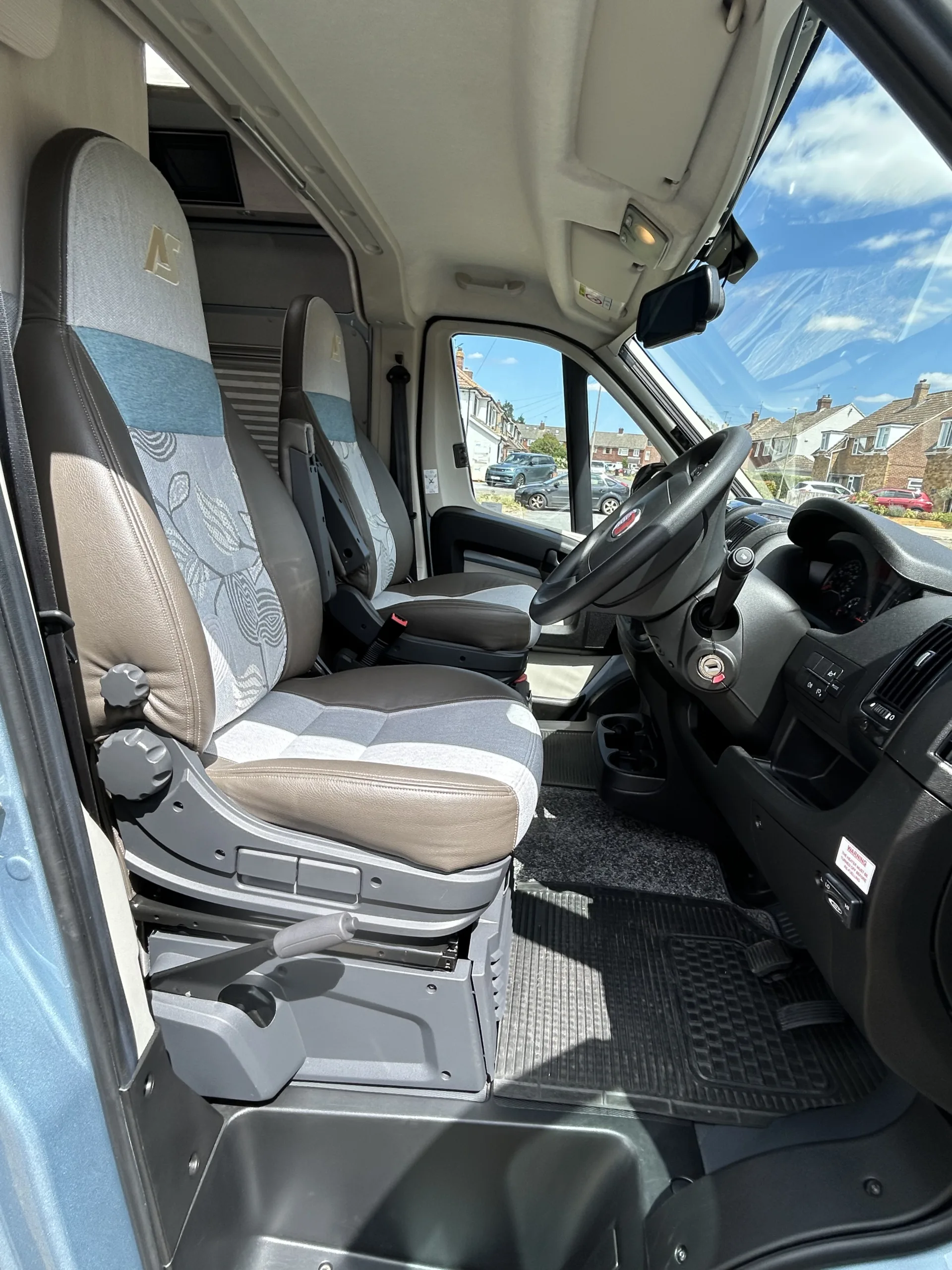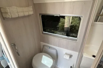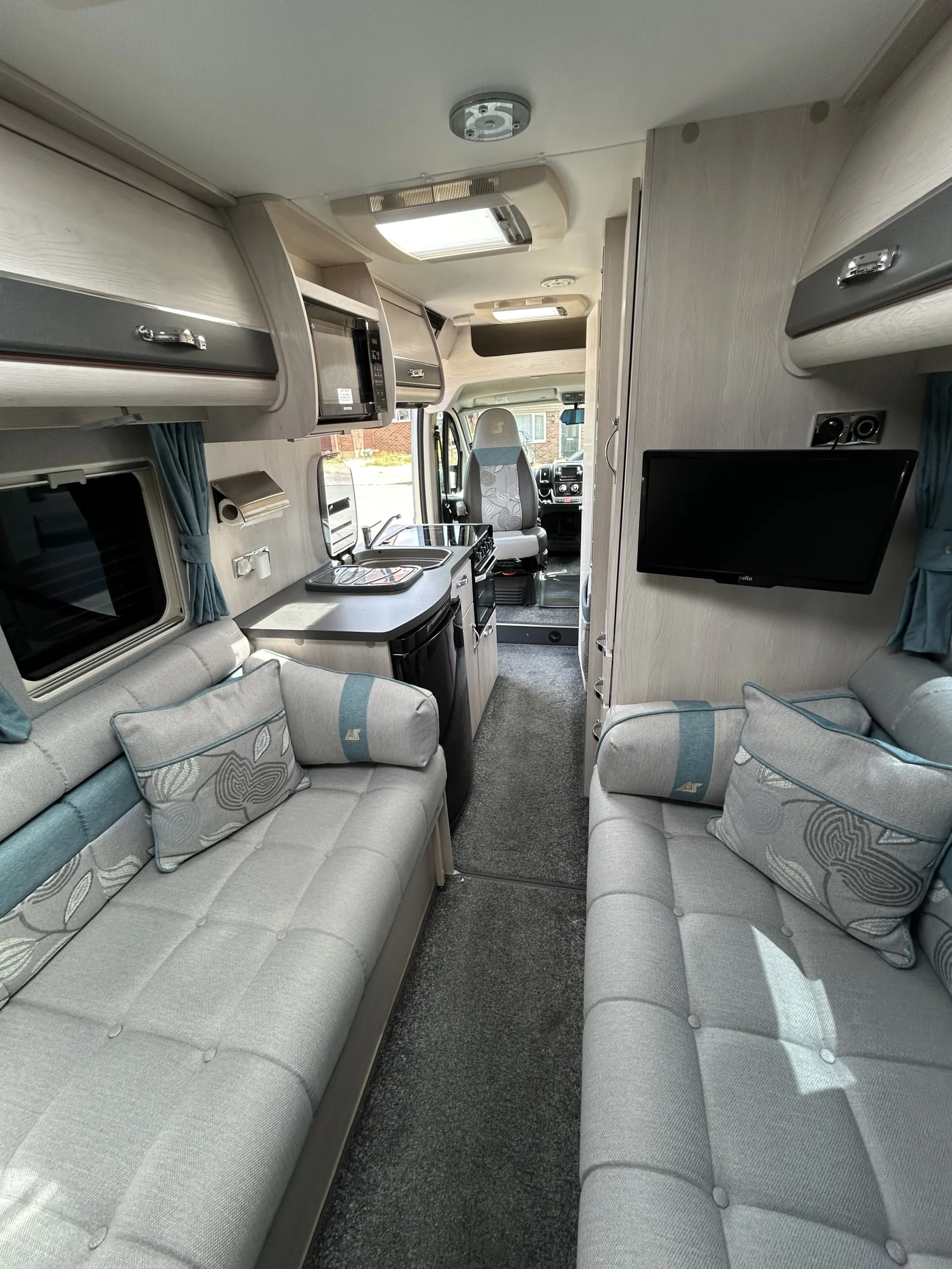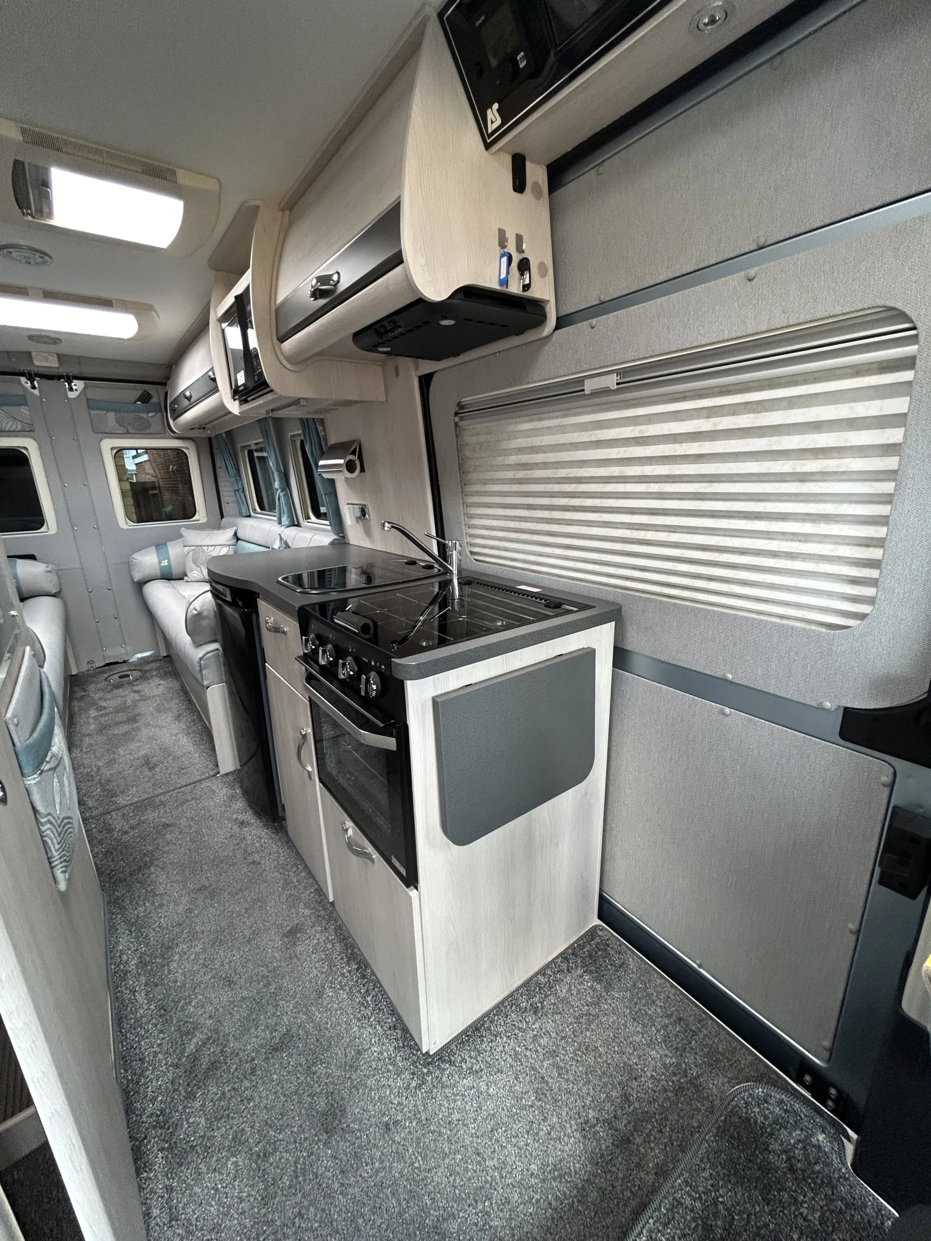 An immaculate 2.3L 2 berth campervan. Mileage 9941. Automatic gearbox. Winter and premium packs. Includes separate shower, toilet, microwave, oven, 3 ring hob, TV, awning, towbar, heating system, fridge and freezer. Hot water, heating and fridge can be run from gas or electric. An under slung LPG gas tank. Serviced – 12/0725. Habitation service – 18/07/25. Rear lounge converts to two single beds or one king size bed.