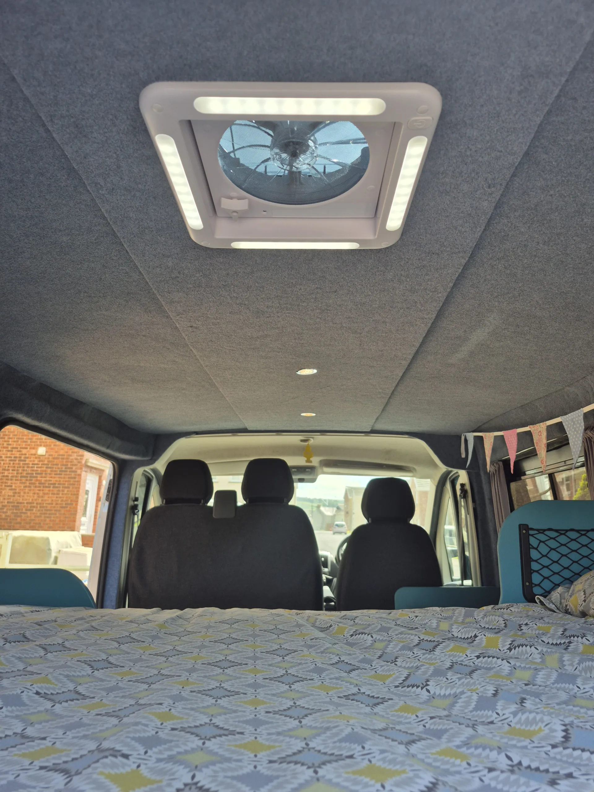 Fully insulated and sound proofed, carpet lined, fixed double bed with large garage area underneath, gas hob and sink with 35litre removable fridge cool box, large bench seat with storage, double swivel seat to make living area with removable table. 12v electrics and mains hook up, spot lights and fan with lights. Alloy wheels, side bars colour coded front bumpers, remapped to 160bhp, great van, looks really cool with all the modifications.