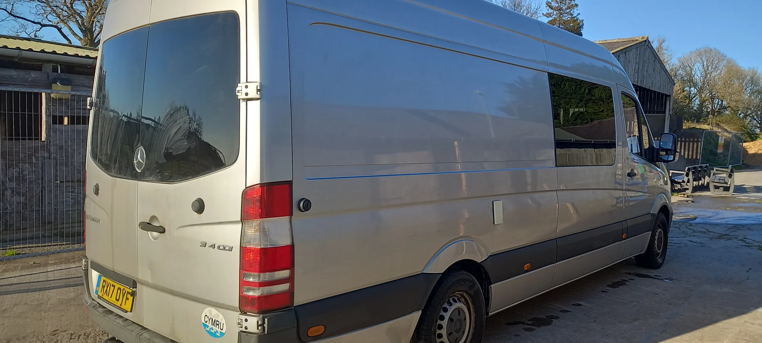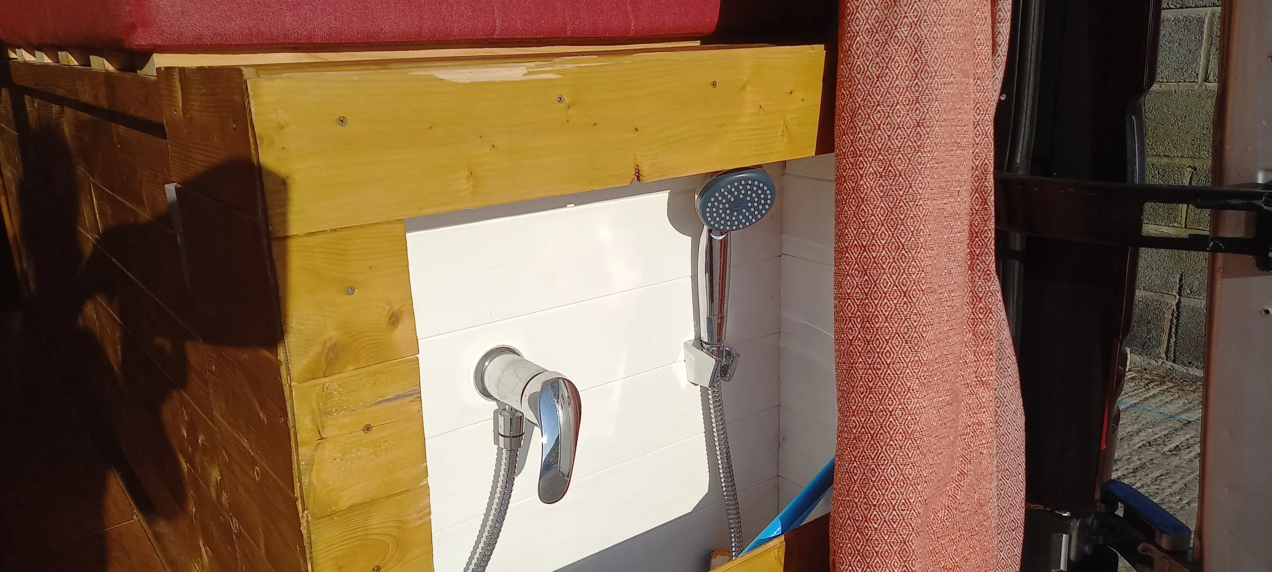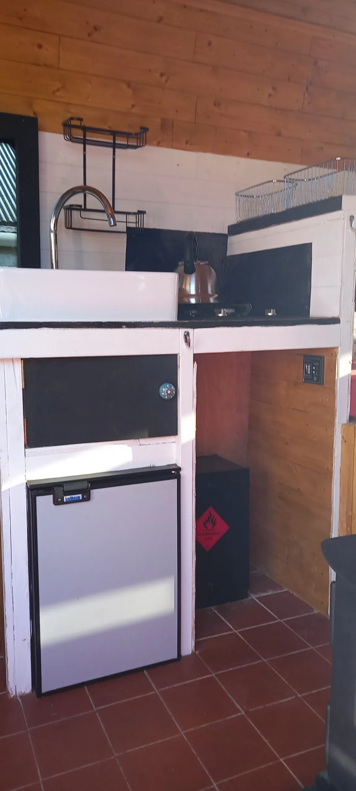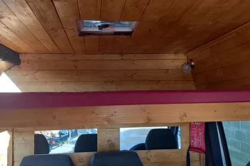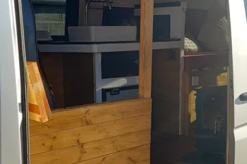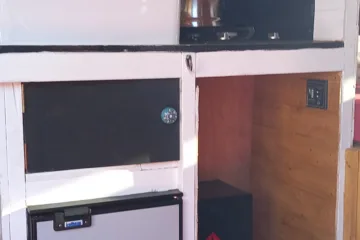 Fully off grid Mercedes’ Sprinter LWB with shower, battery electric storage and hook up, electric angled lighting, 2 ring gas burner hob, fridge freezer, and electric hot water system which ensures you will always have hot showers, with a wood burner for a cosy interior when needed!