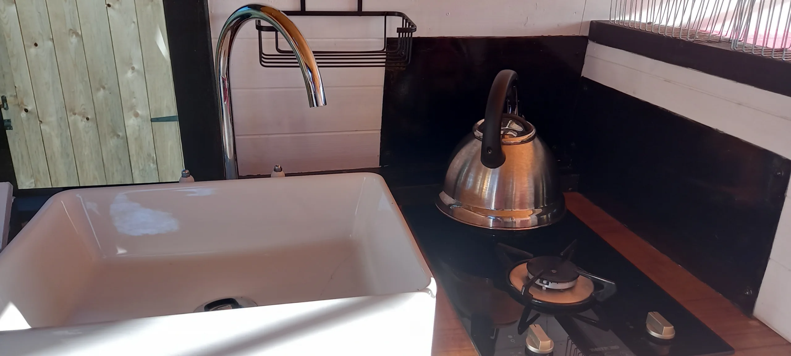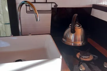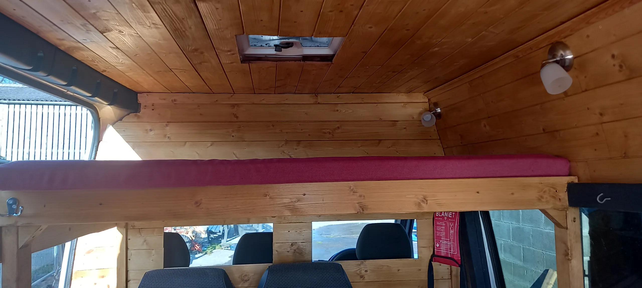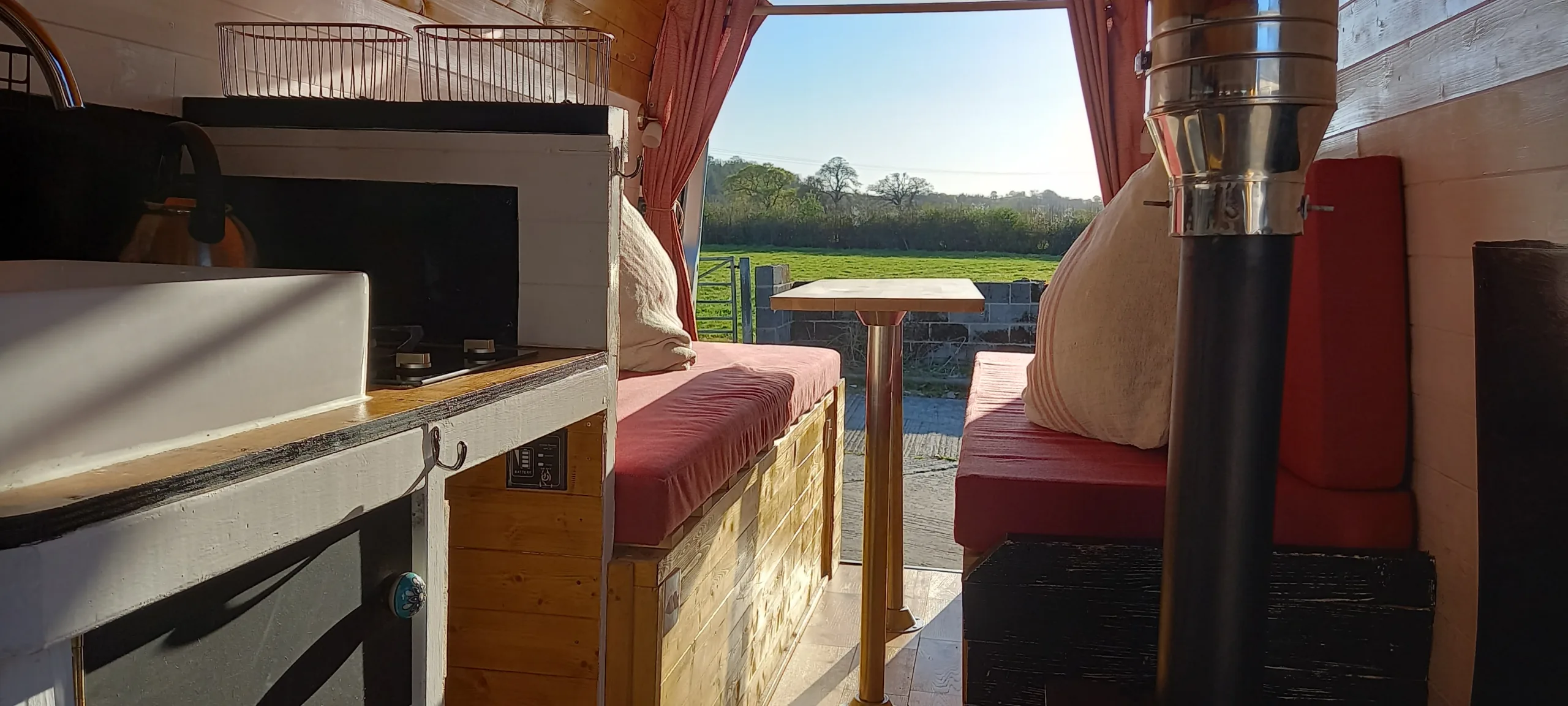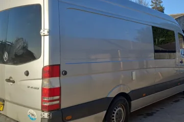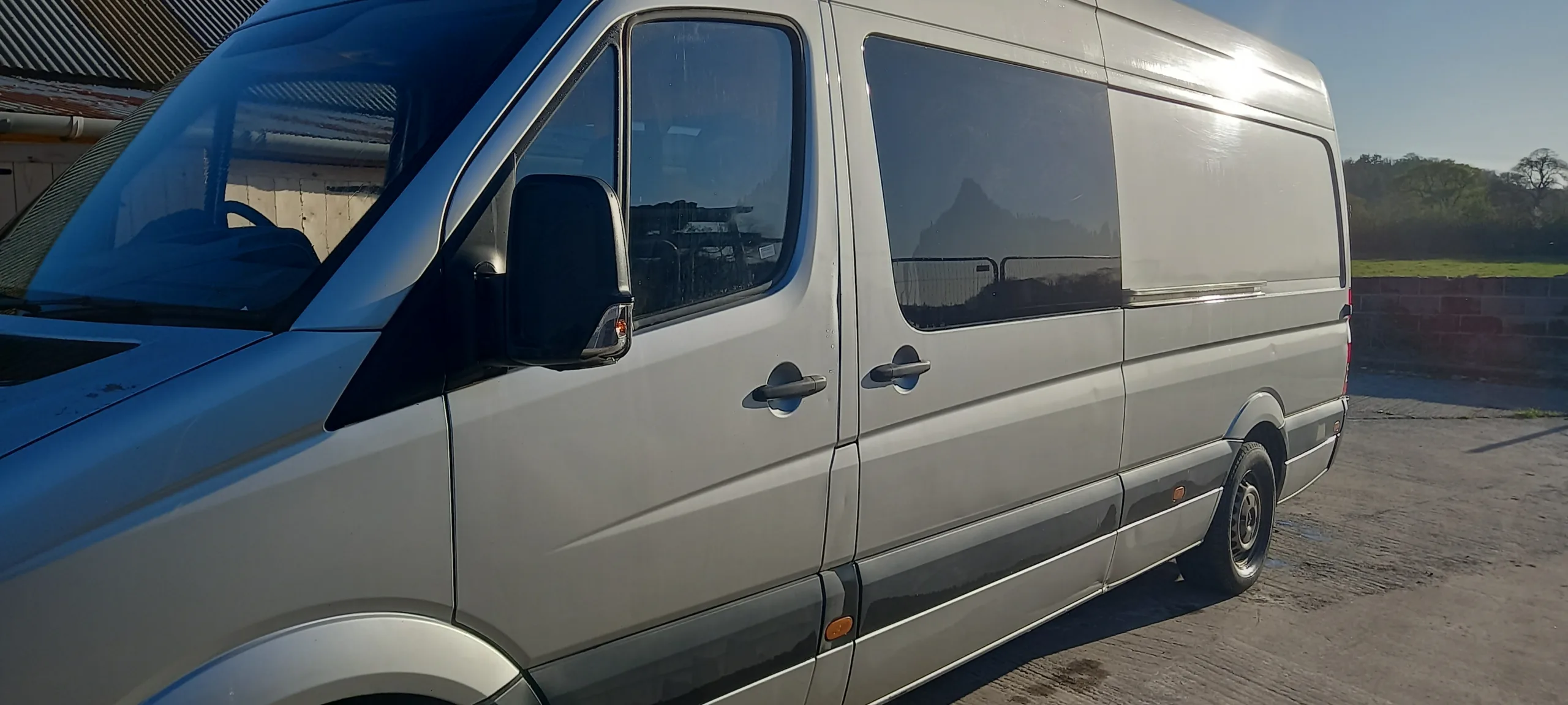 Fully off grid Mercedes’ Sprinter LWB with shower, battery electric storage and hook up, electric angled lighting, 2 ring gas burner hob, fridge freezer, and electric hot water system which ensures you will always have hot showers, with a wood burner for a cosy interior when needed!