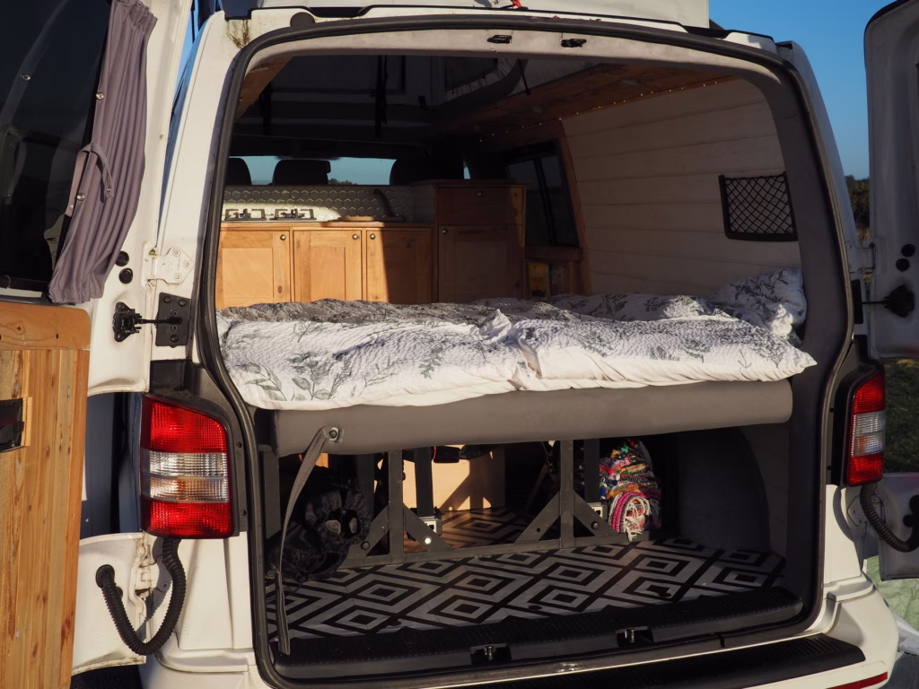 Unlike many VW conversions, this van has a rare width-ways layout. It’s been thoughtfully built to give you more room to sleep, relax and live, whether you’re heading off for weekends away or longer family adventures.