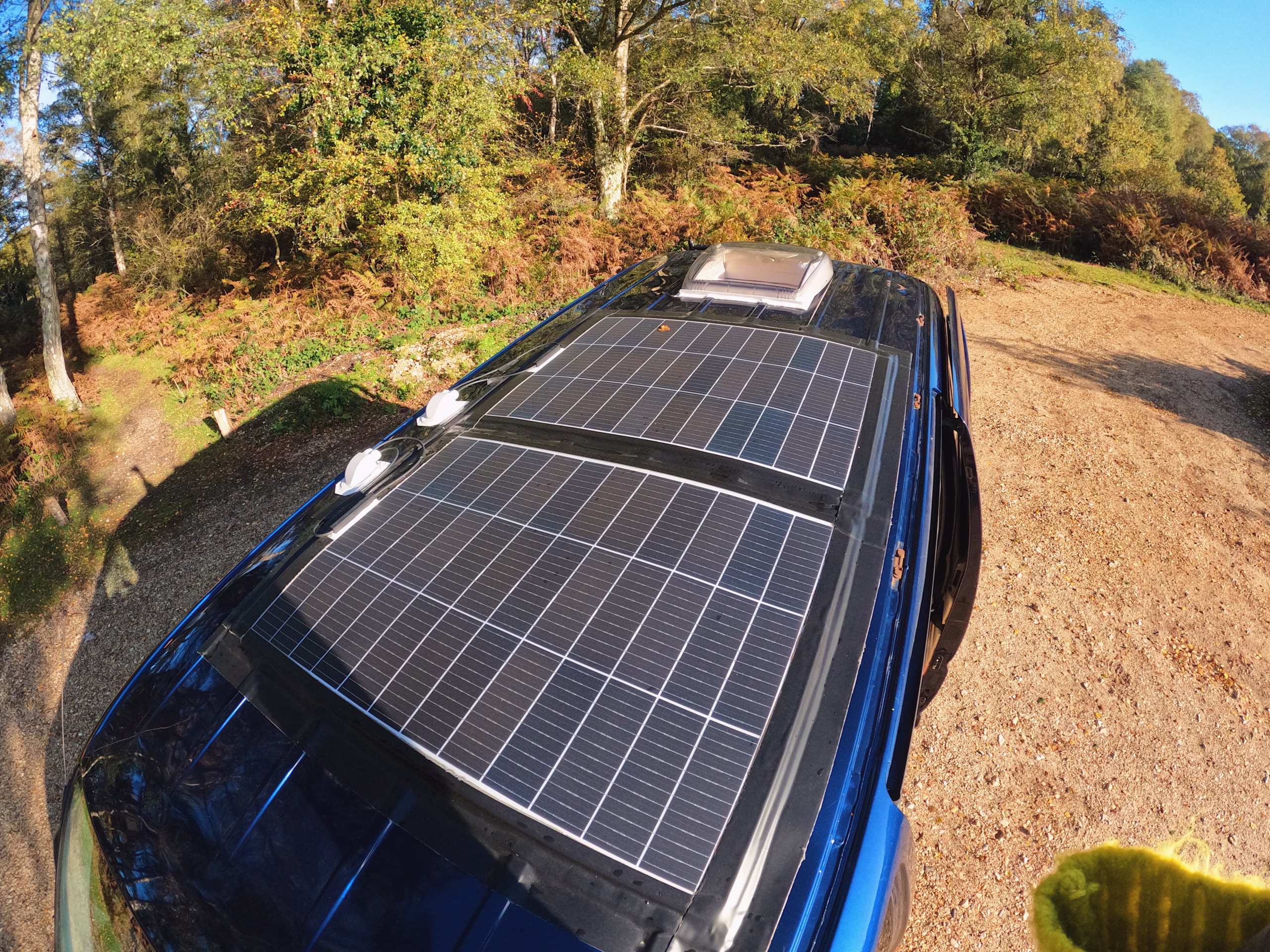 All the 12V electrics in the camper are powered by 2, 130watt flexible monocrystalline solar panels located on the outside roof. The 30amp MPPT solar charge controller converts the solar energy into storable energy. There is a 105 amp hour AGM leisure battery (which is separate from the starter battery’s under the bonnet) which stores this useable energy and powers all the 12V electrics and cooler box in the campervan. This campervan is completely off-grid, requiring no electrical hook ups, which is ideal for stealth camping. The incoming and outgoing power is very easily monitored via the wall mounted MT50 LED display monitor.