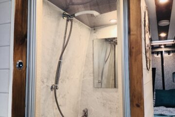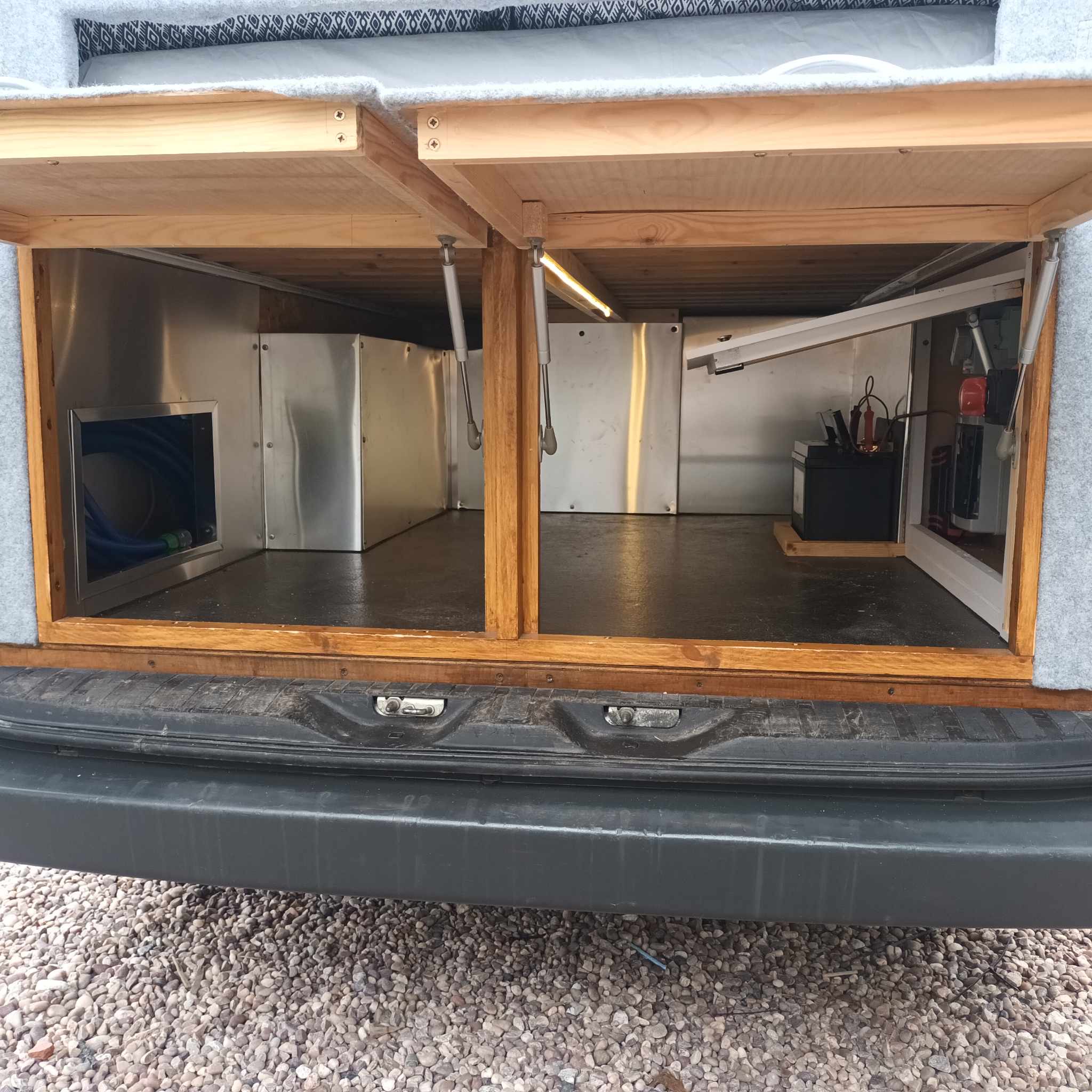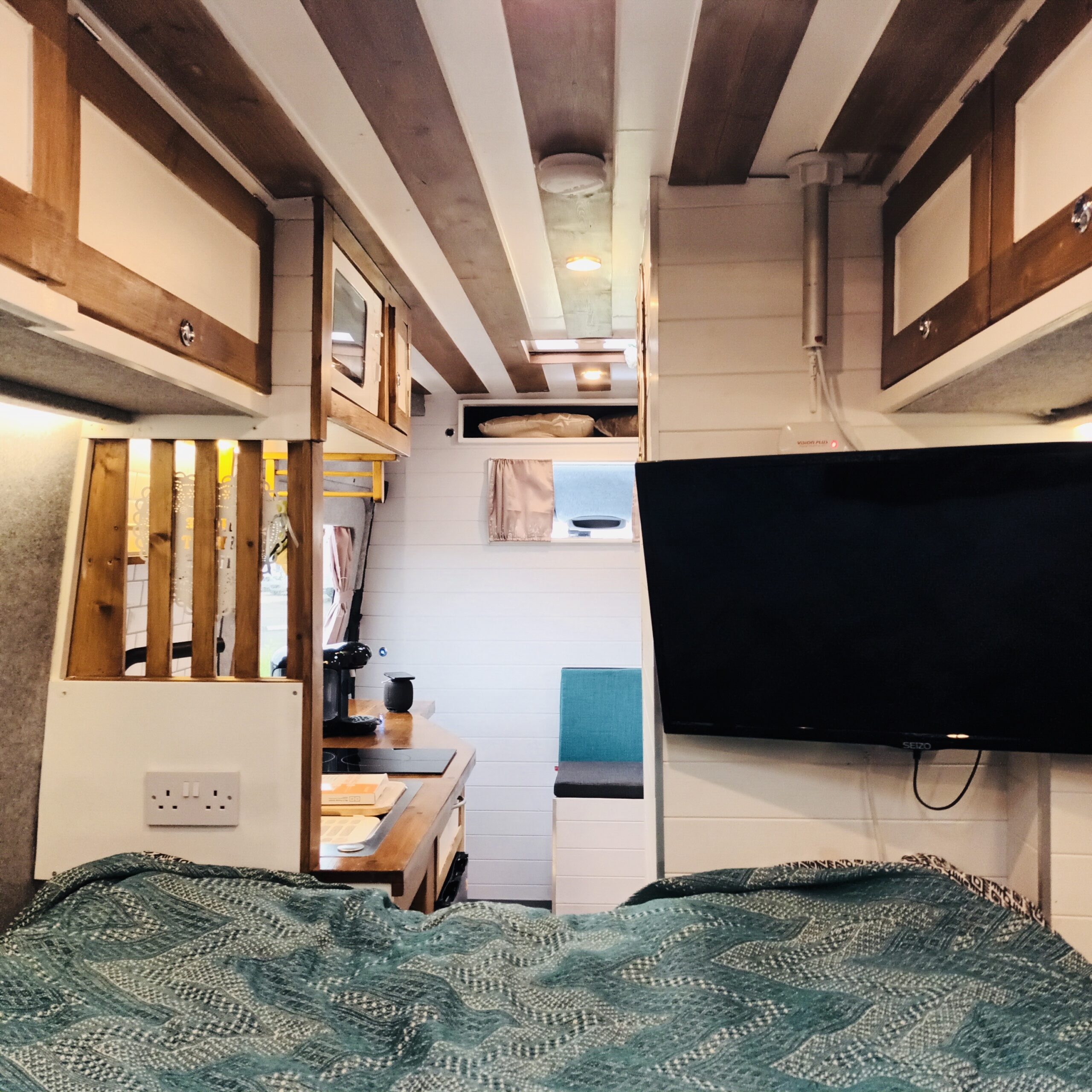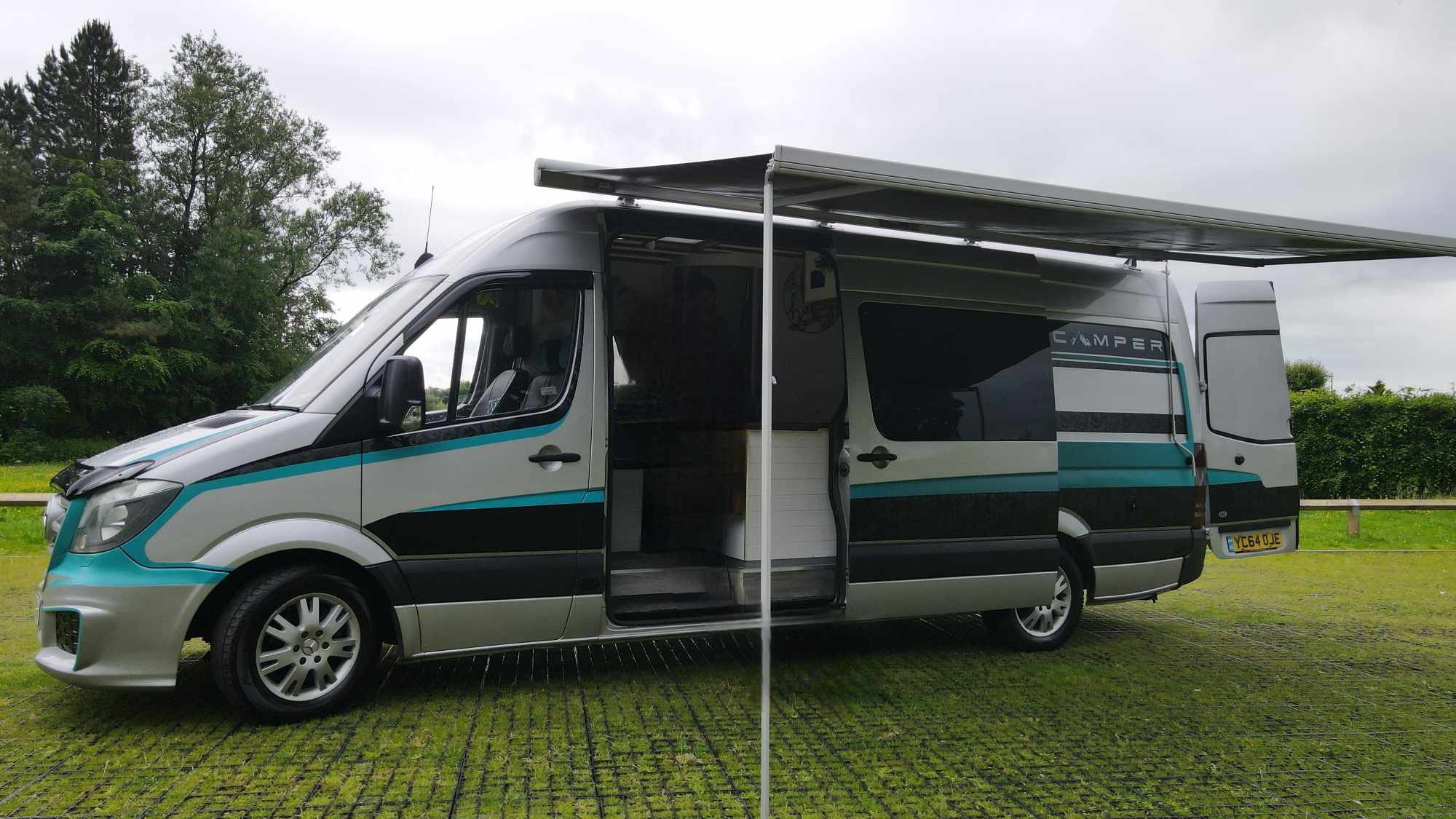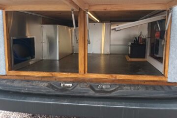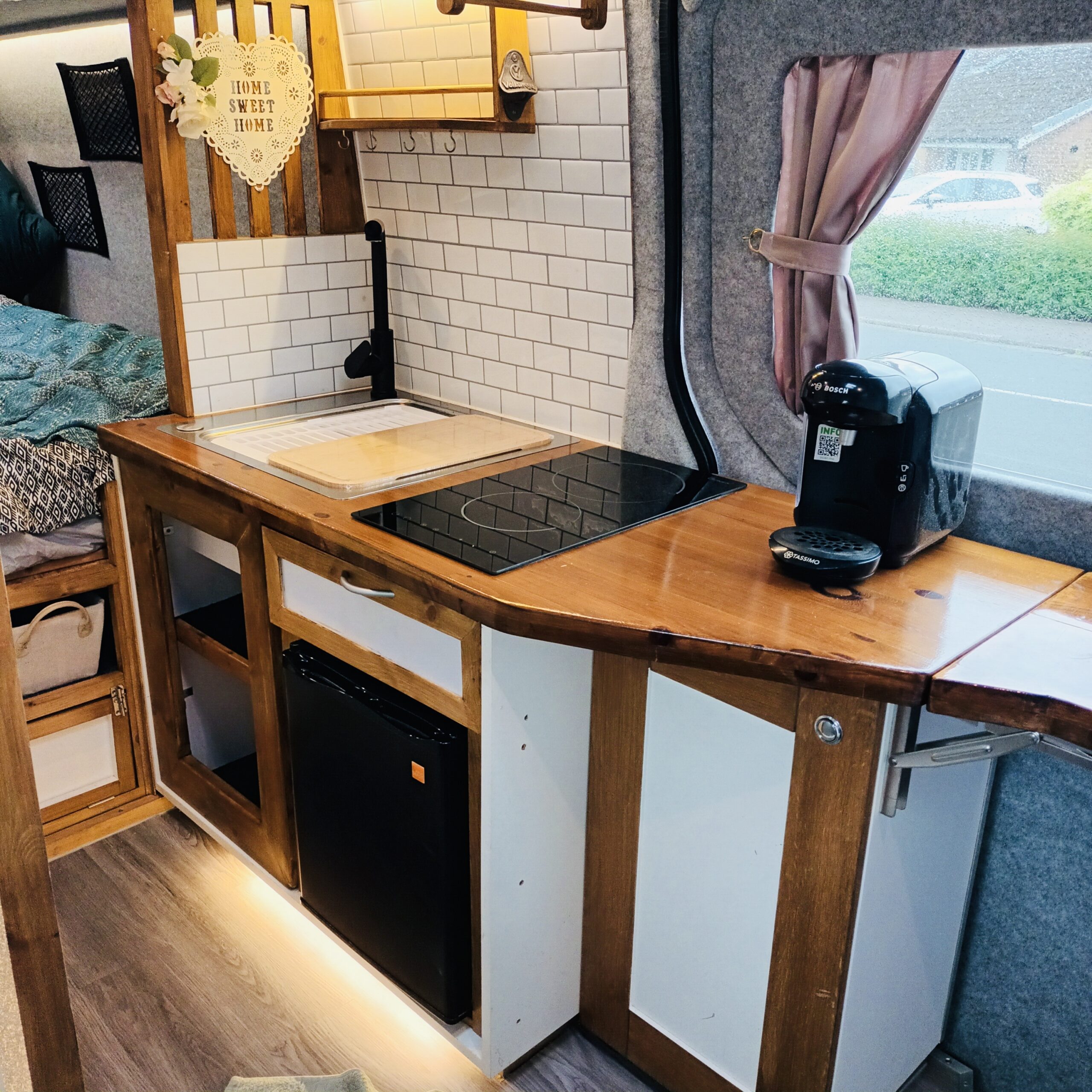 Although it can be used off grid it was built for campsite use as my wife preferred that sort of holiday so everything inside is electric, it as a full size shower and toilet room, very large bed as I’m 6’1, fridge, electric hob, 75L fresh water under slung tank and a 45L waste under slung tank, 4.2 meter fiamma awning, water heater, fridge, microwave, large sink with fitted drainer and chopping board, 32” smart tv,