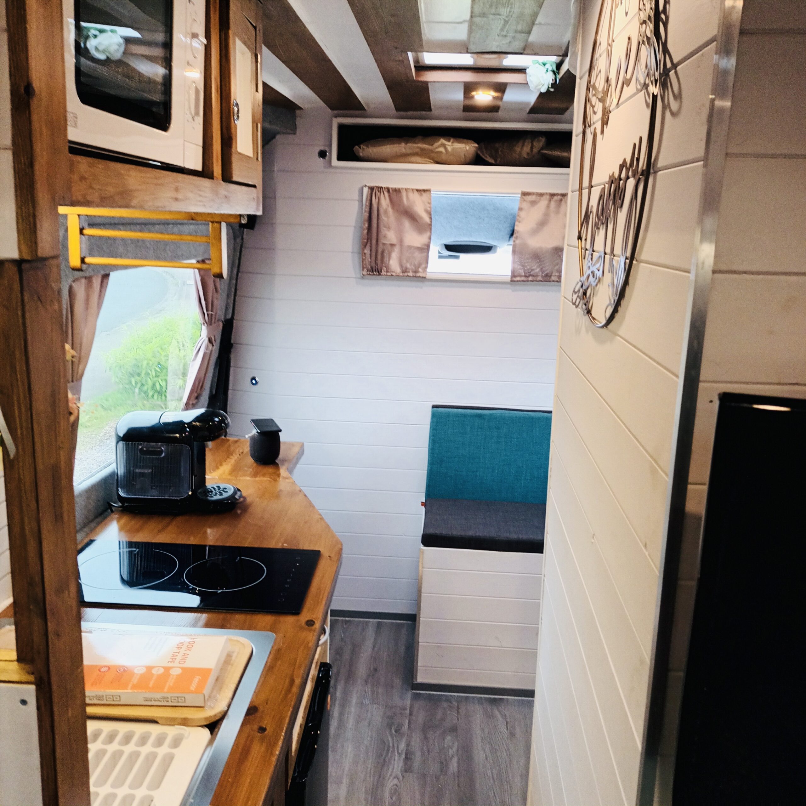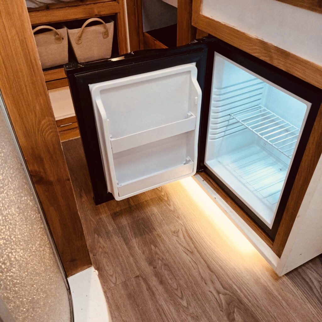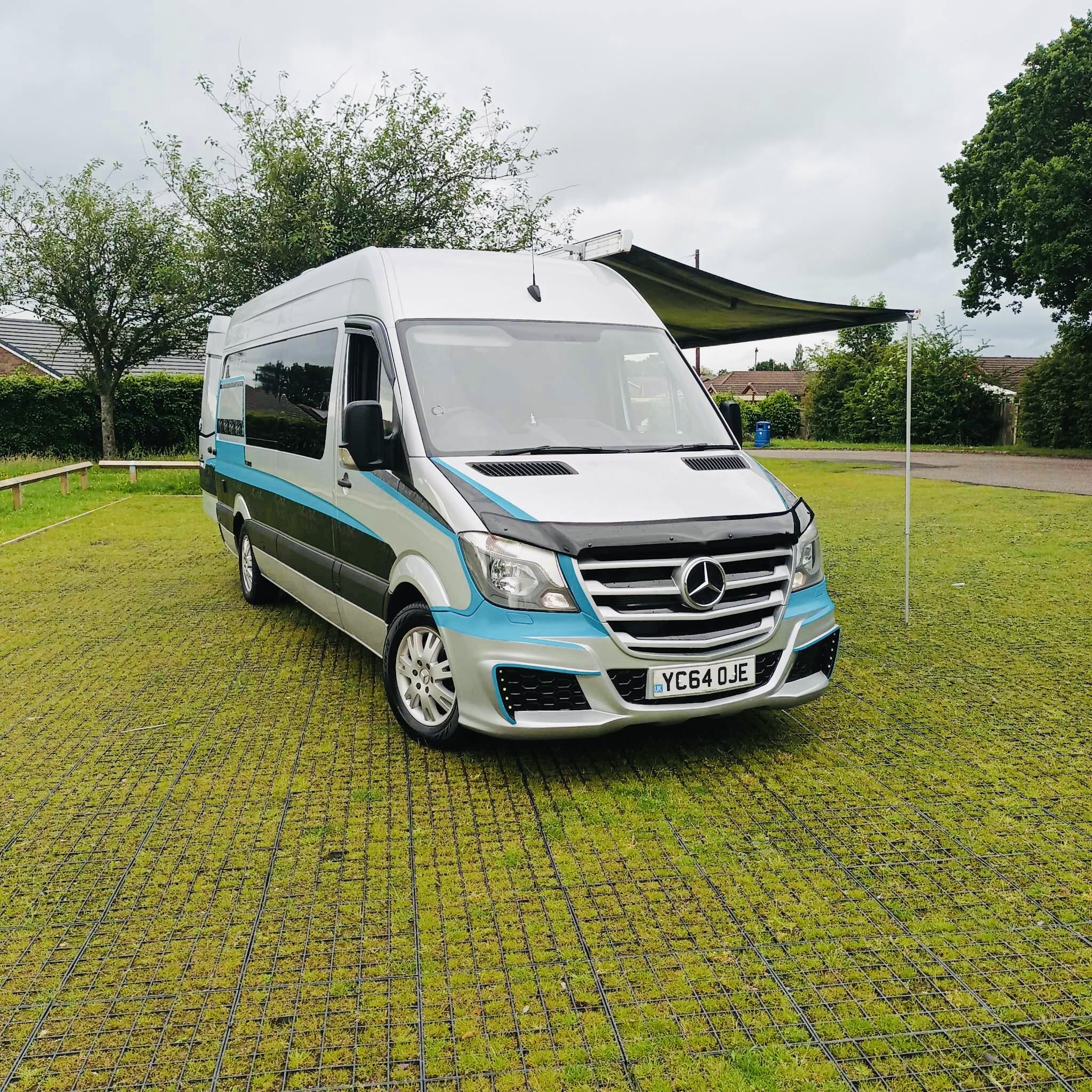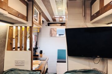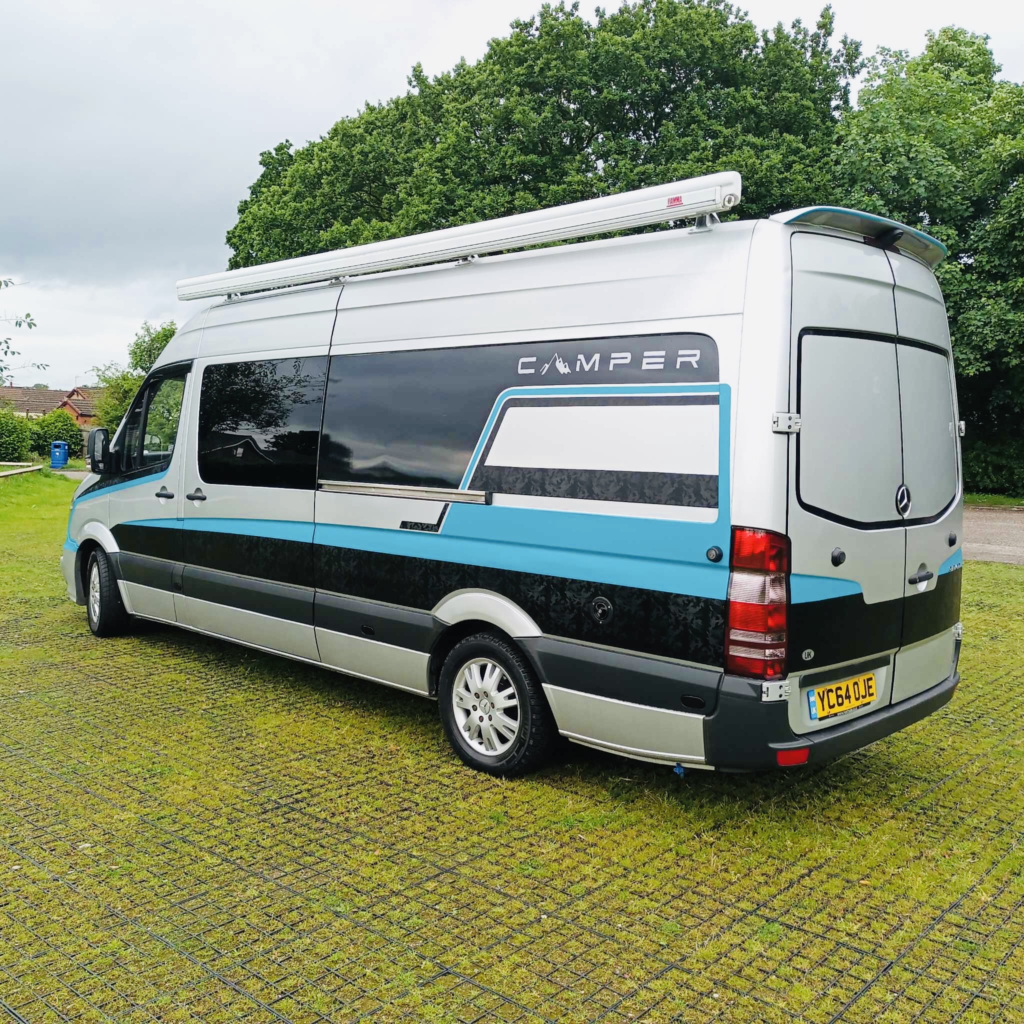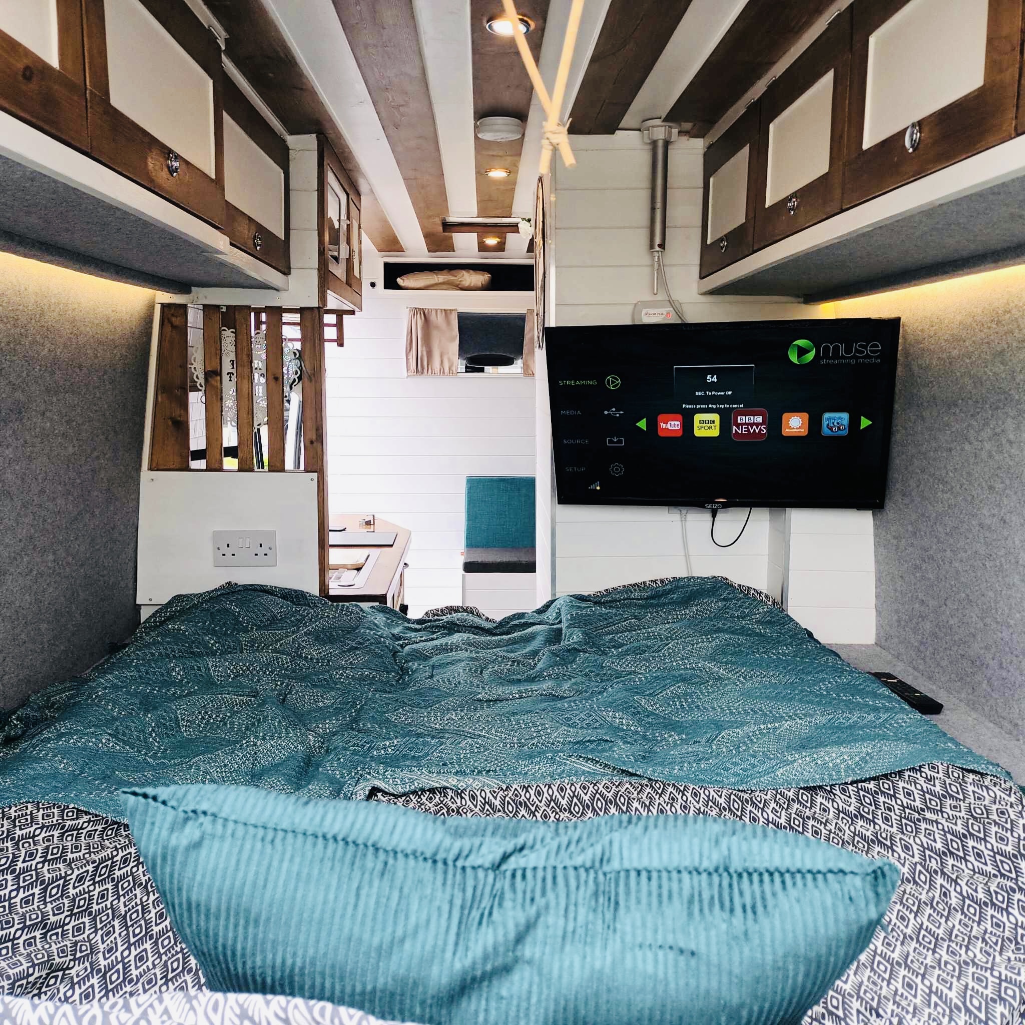 Although it can be used off grid it was built for campsite use as my wife preferred that sort of holiday so everything inside is electric, it as a full size shower and toilet room, very large bed as I’m 6’1, fridge, electric hob, 75L fresh water under slung tank and a 45L waste under slung tank, 4.2 meter fiamma awning, water heater, fridge, microwave, large sink with fitted drainer and chopping board, 32” smart tv,