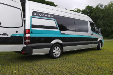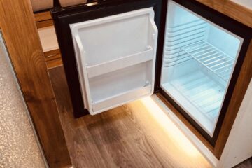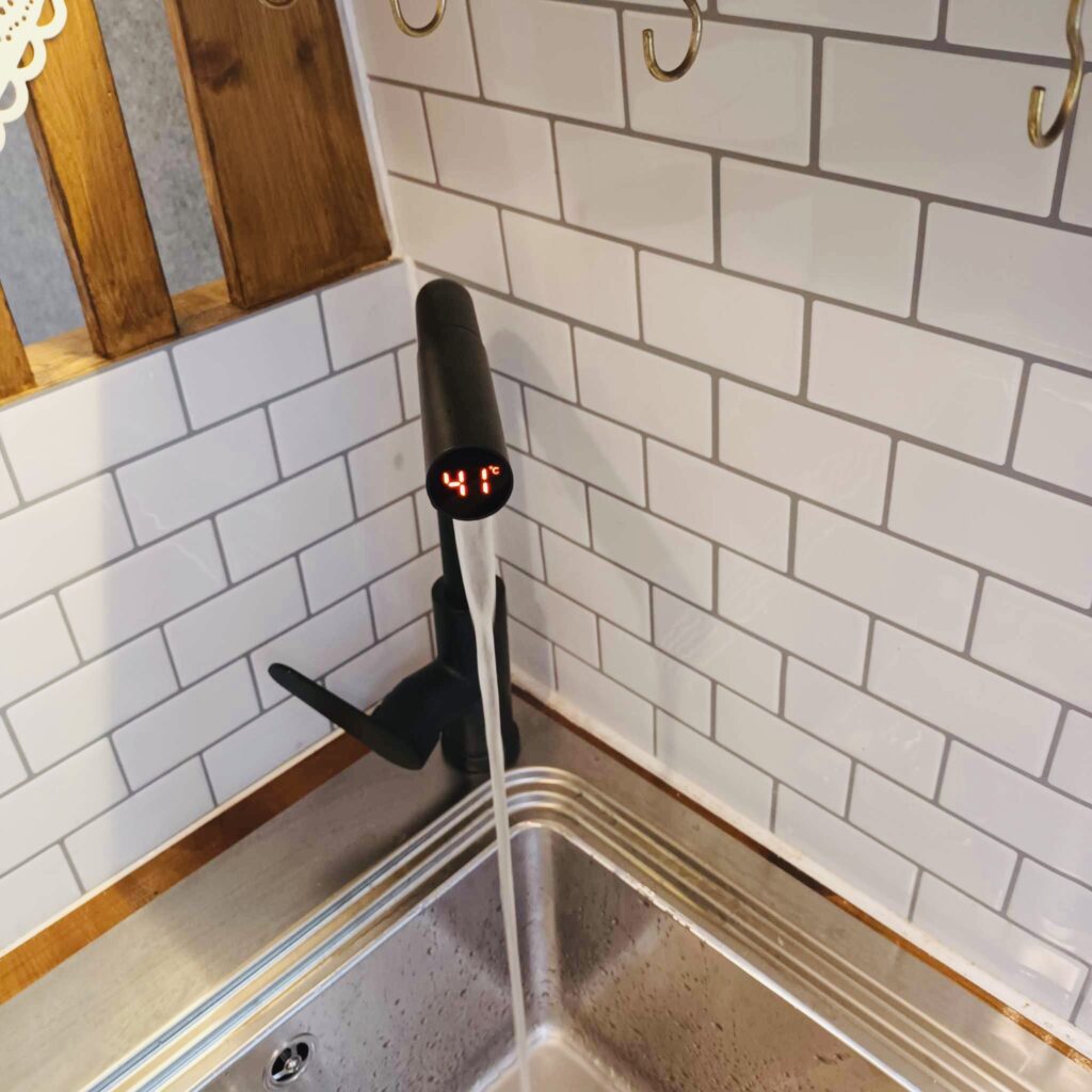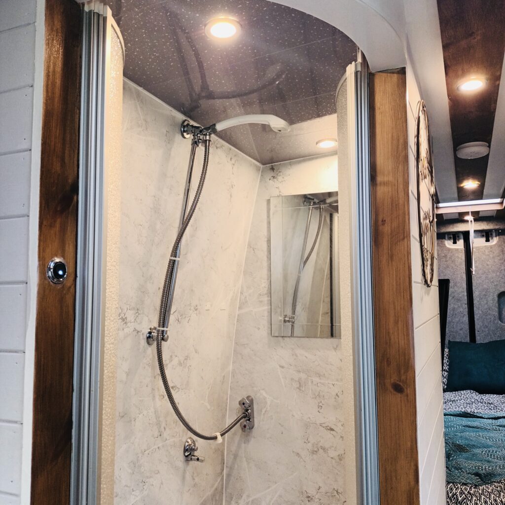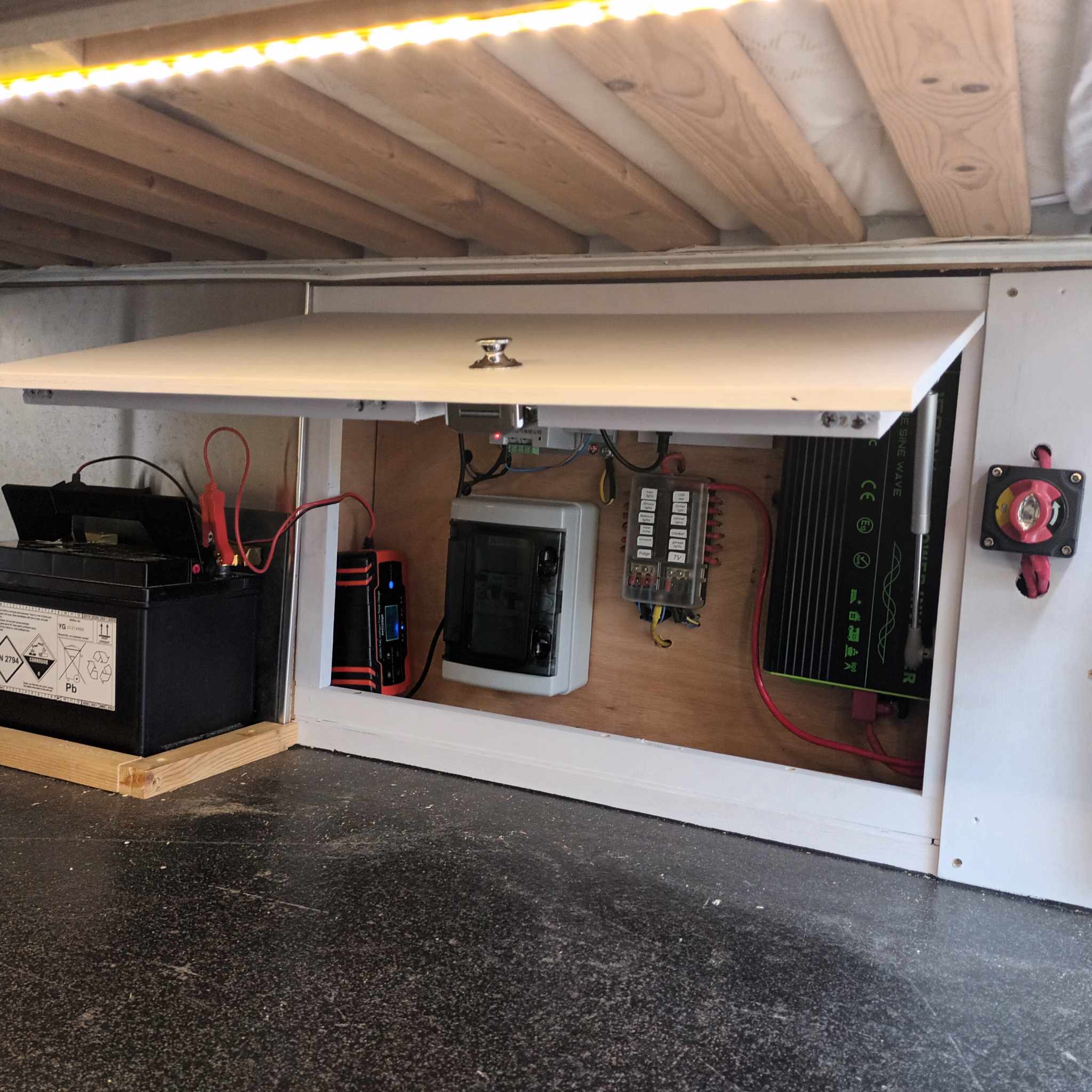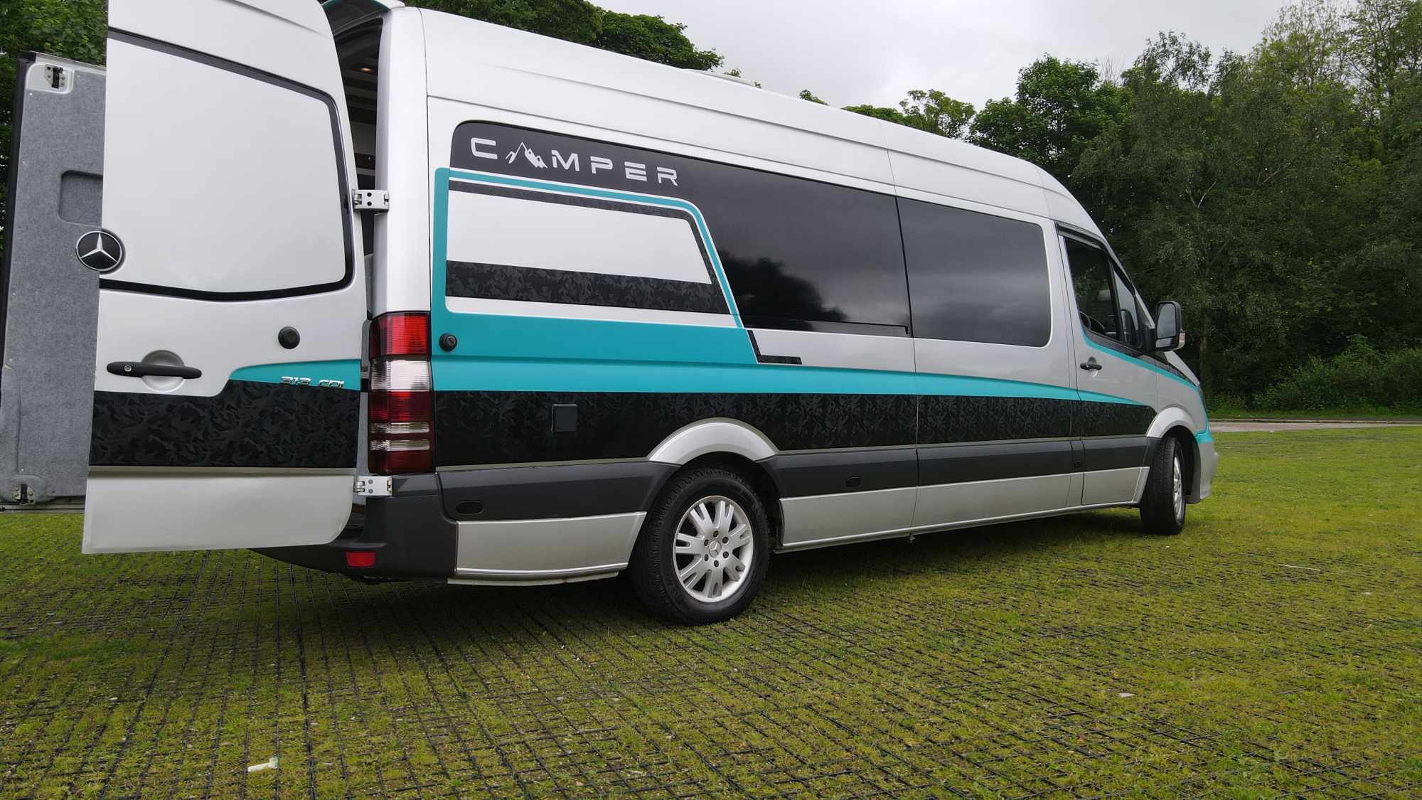 Although it can be used off grid it was built for campsite use as my wife preferred that sort of holiday so everything inside is electric, it as a full size shower and toilet room, very large bed as I’m 6’1, fridge, electric hob, 75L fresh water under slung tank and a 45L waste under slung tank, 4.2 meter fiamma awning, water heater, fridge, microwave, large sink with fitted drainer and chopping board, 32” smart tv,
