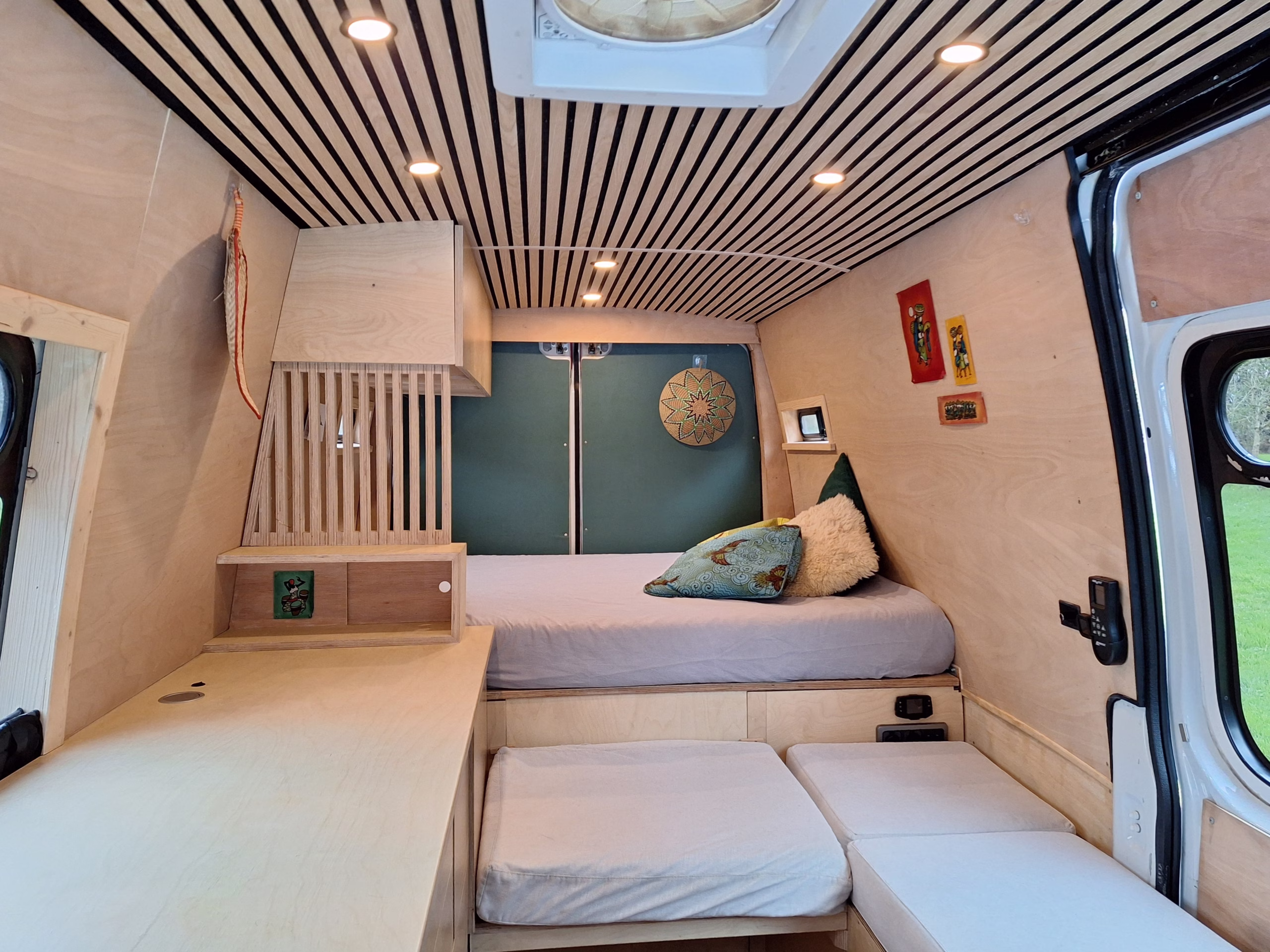 Originally a crew welfare van, she was fully stripped, cleaned and converted β 80% professionally, 20% DIY β with a focus on comfort, reliability and simplicity (which is perfect for off-grid living).