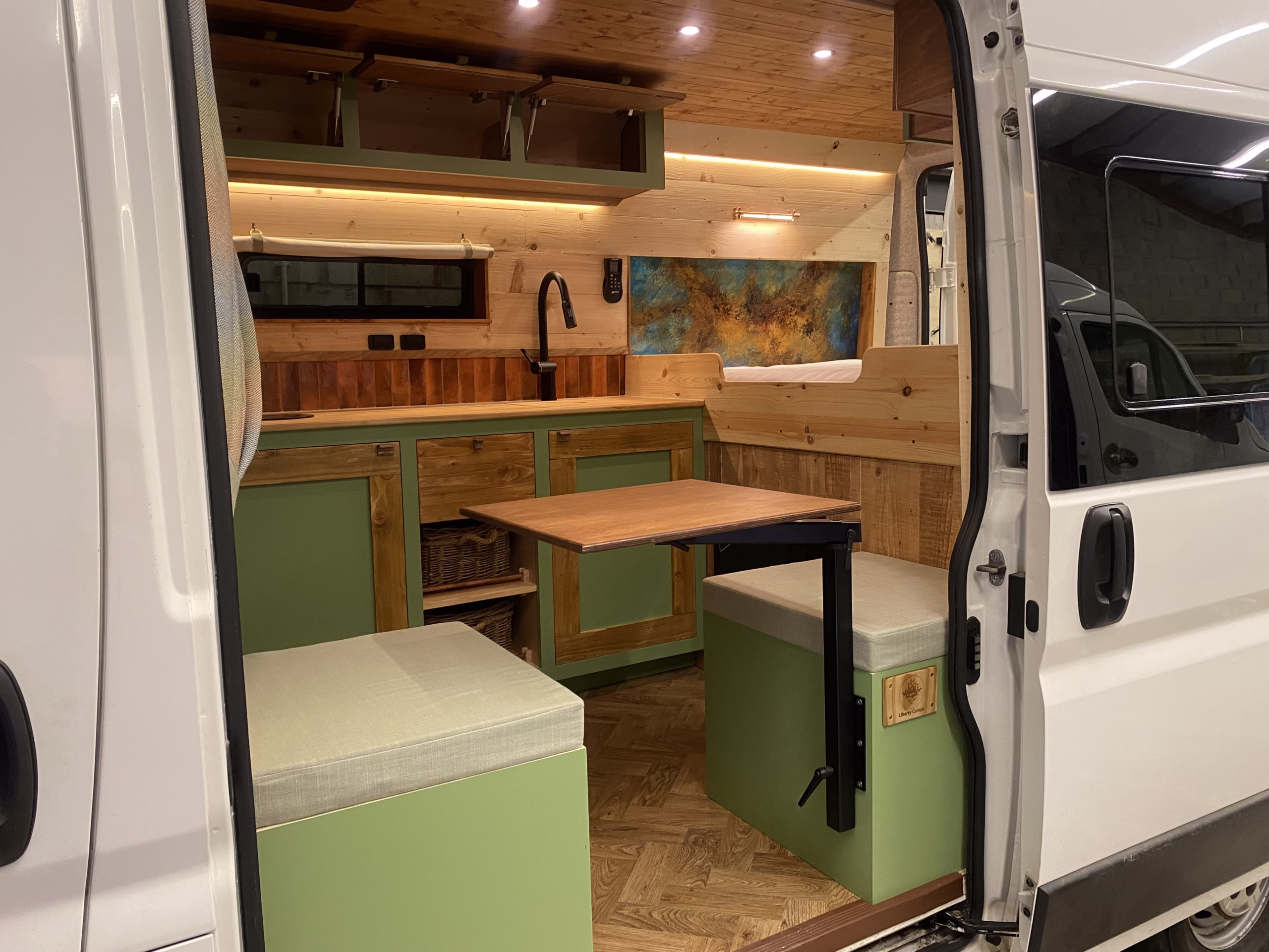 At Liberty Camps, we’re a small family-run business dedicated to building spaces that genuinely feel like home. Bella blends rustic character with modern convenience, good craftsmanship, and thoughtful details that make every morning on the road something special. This listing shows an example of what we can create — but we believe your van should be uniquely yours. We’ll work closely with you to personalise everything: design and layout, to fabrics, colours, tiles, finishes, and optional upgrades such as awnings and additional features. If you’d like further inspo, why not head over to our website to check out some of our other builds.
