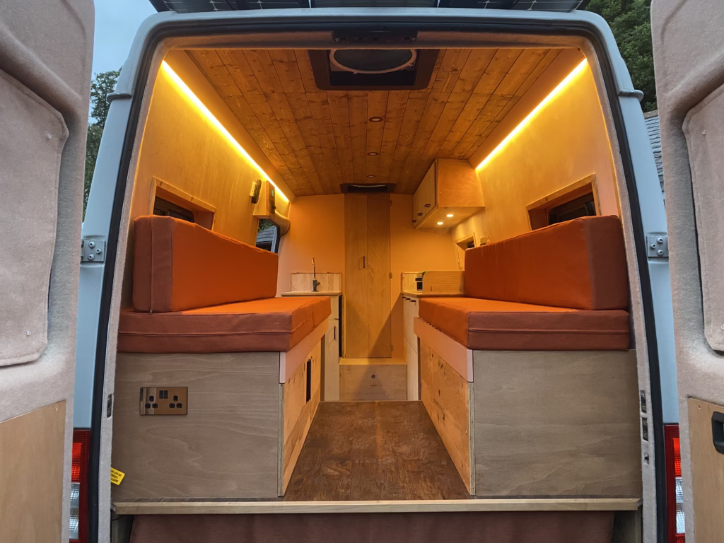 Meet Bella — a beautifully handcrafted cabin-style campervan designed with comfort, charm, and practicality in mind.