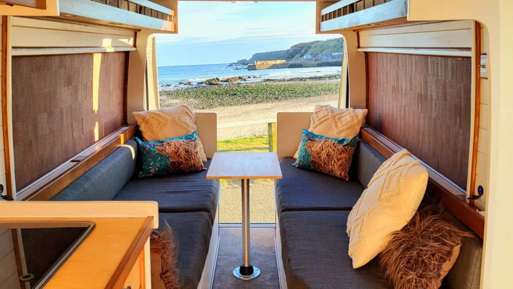 This is a beautiful camper built to a very high standard to be used off or on grid through all seasons. Crafted in the heart of the Highlands with the best materials available, this is going to be a lovely camper for adventures for many years. One of two available in different designs.